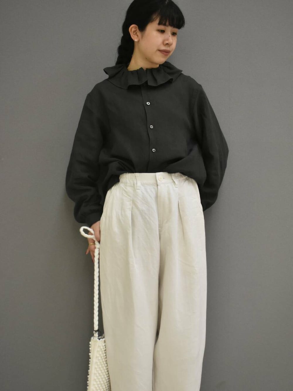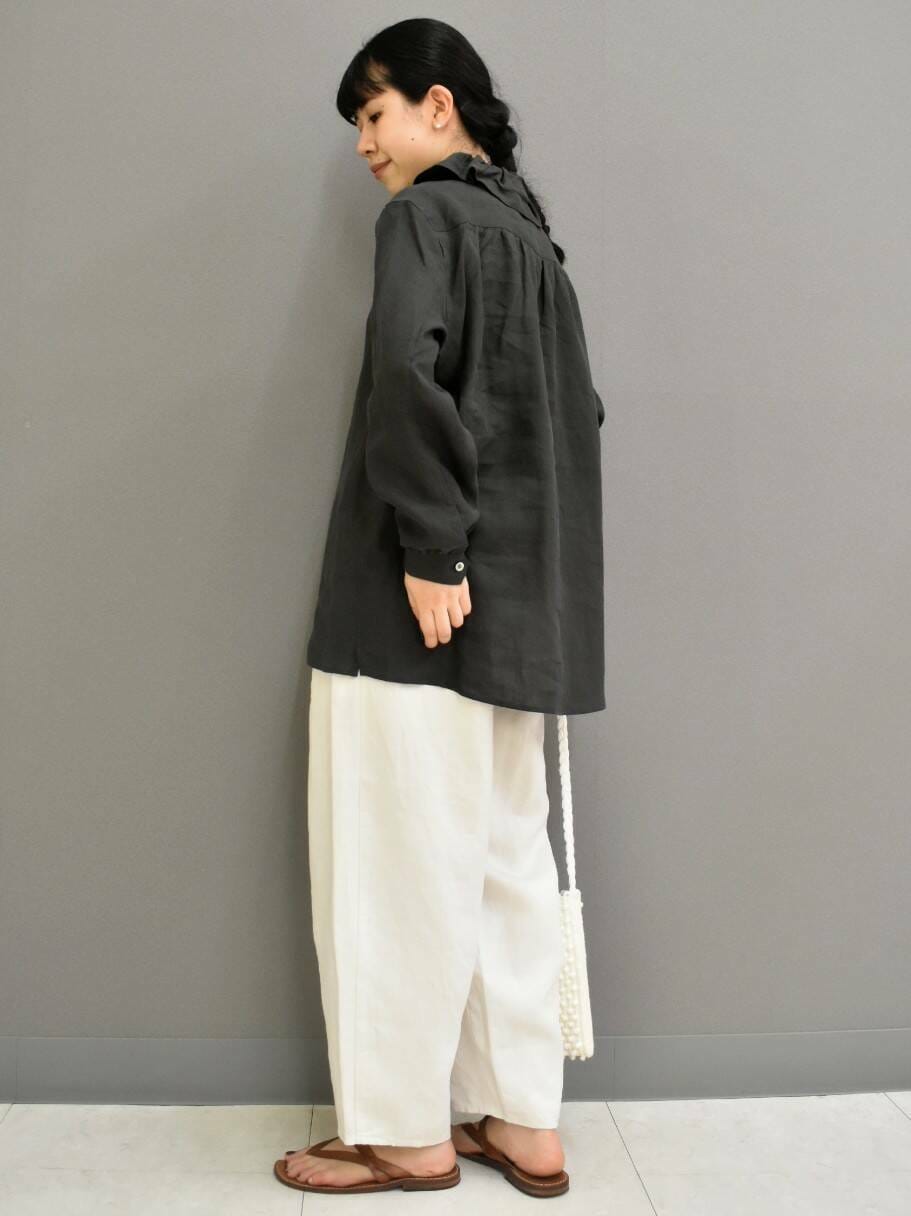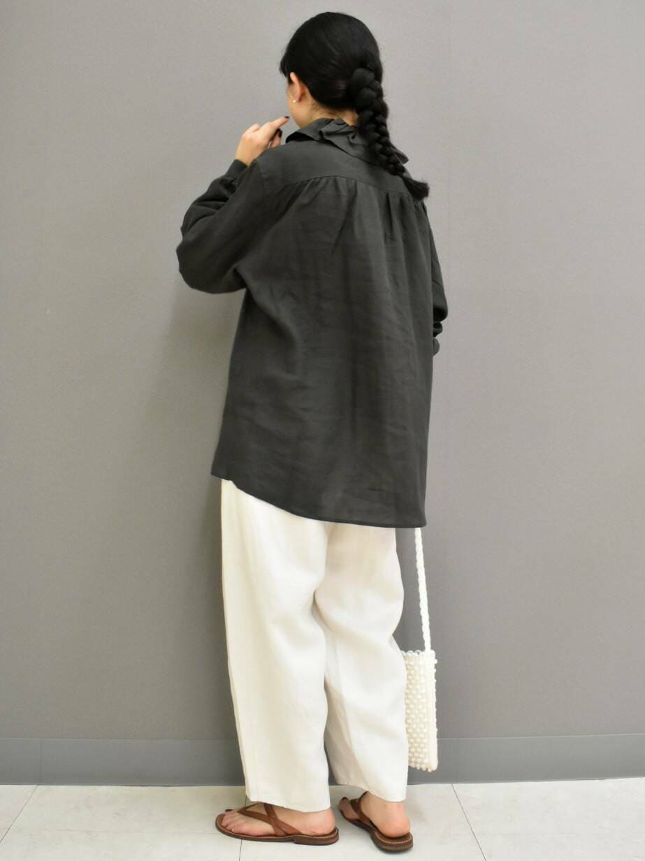 しっかりとした厚めなリネンの風合いとシルエットが様になるvlas blomme定番のパンツです。