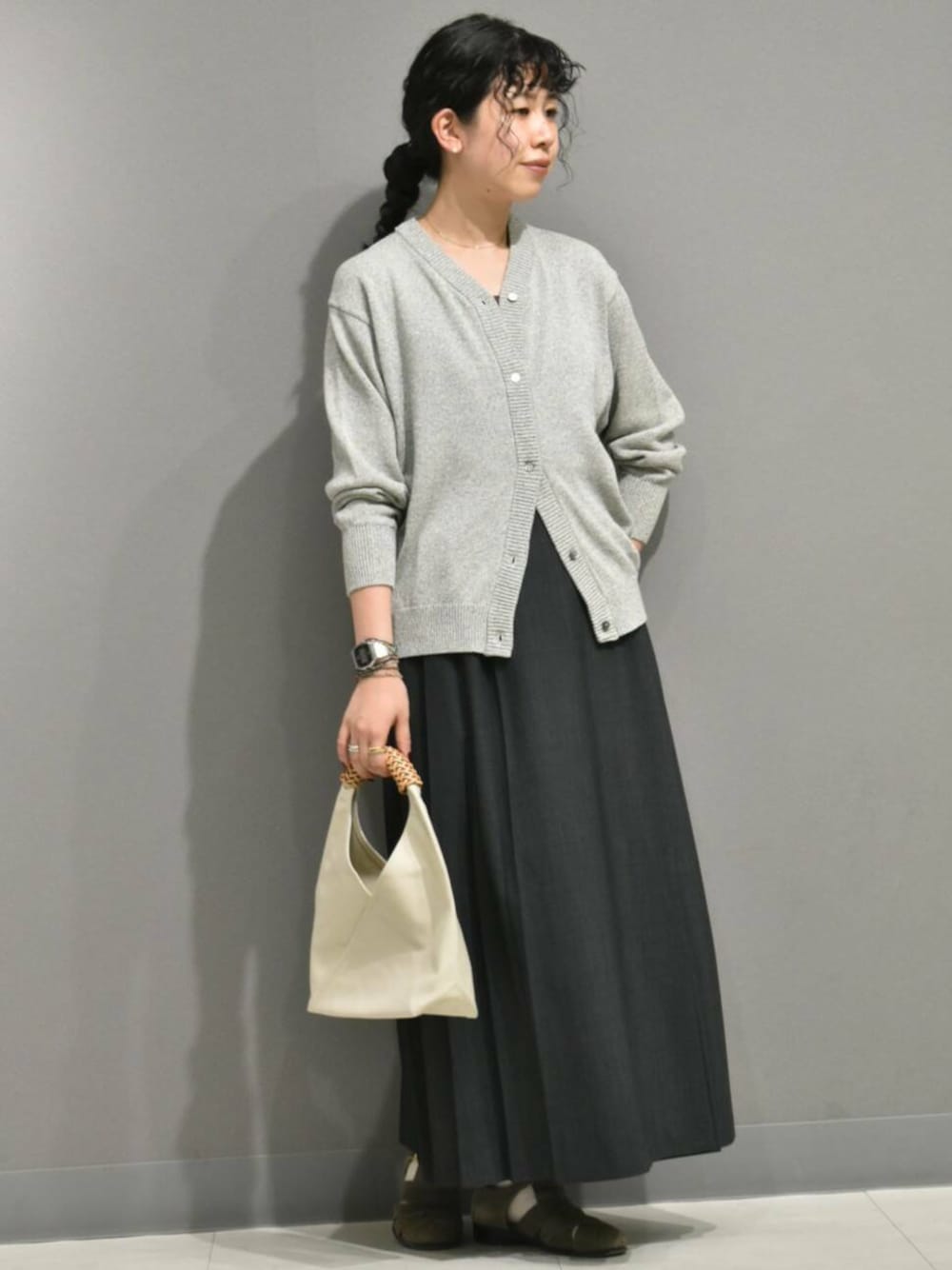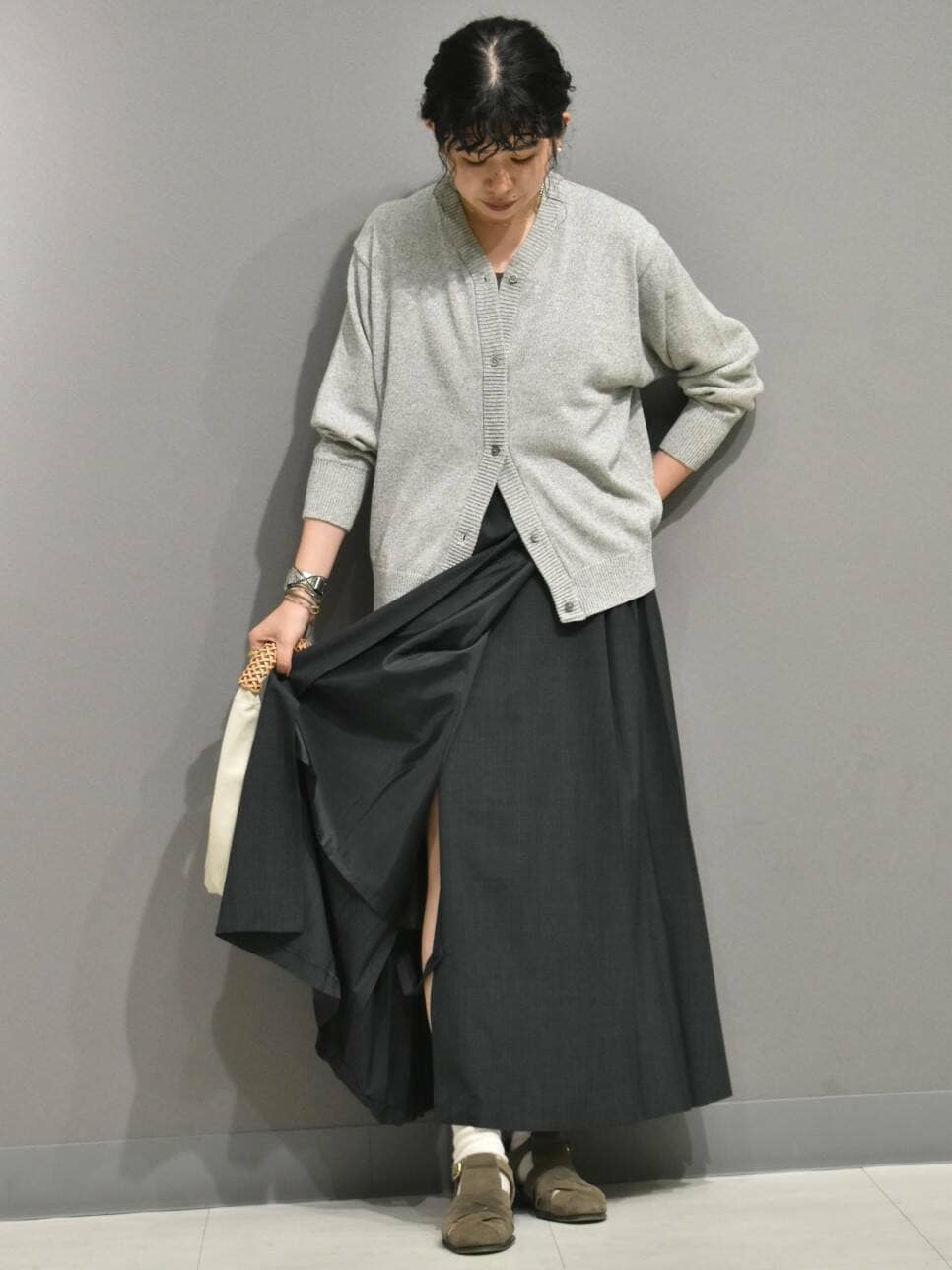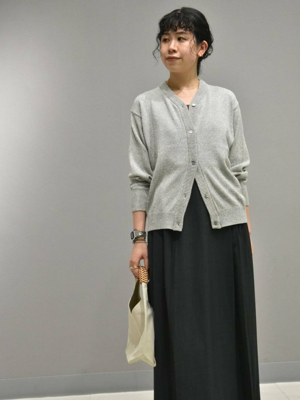 ボタンの留め方でシルエット感が変わるのでボトムスも問わずです◎