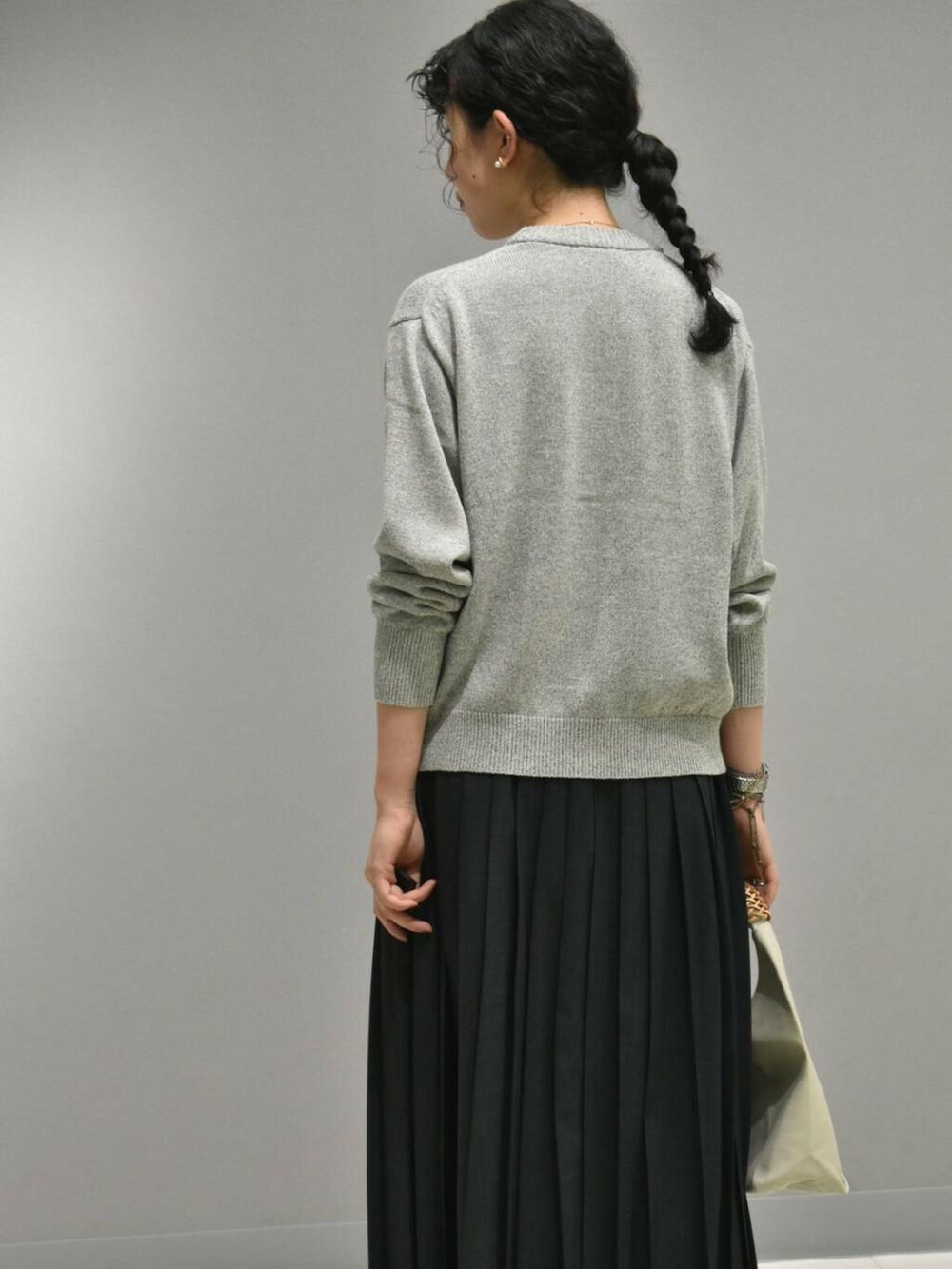 襟元のカーブが女性らしく、どのようなスタイリングでも馴染む優れもの。