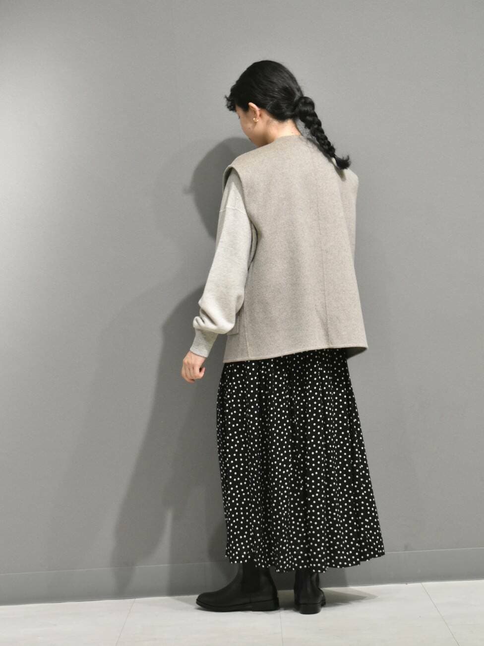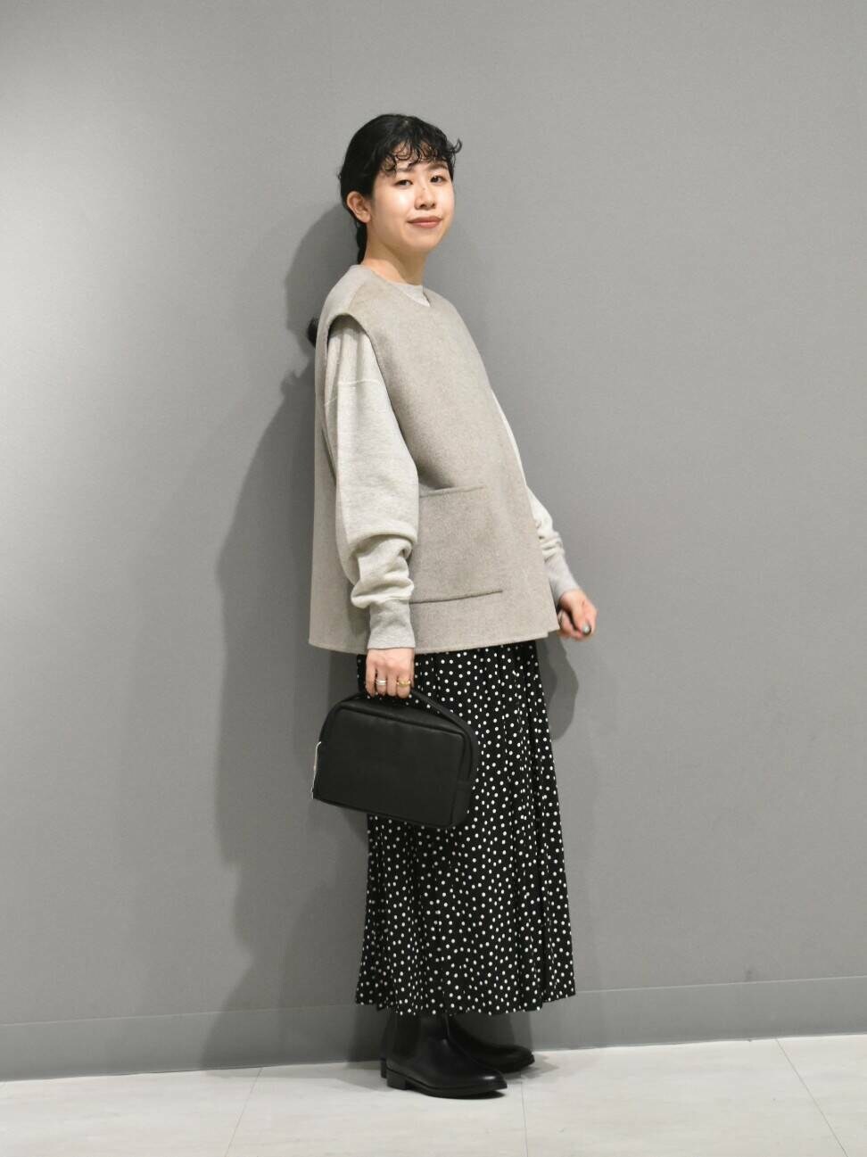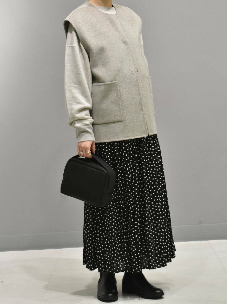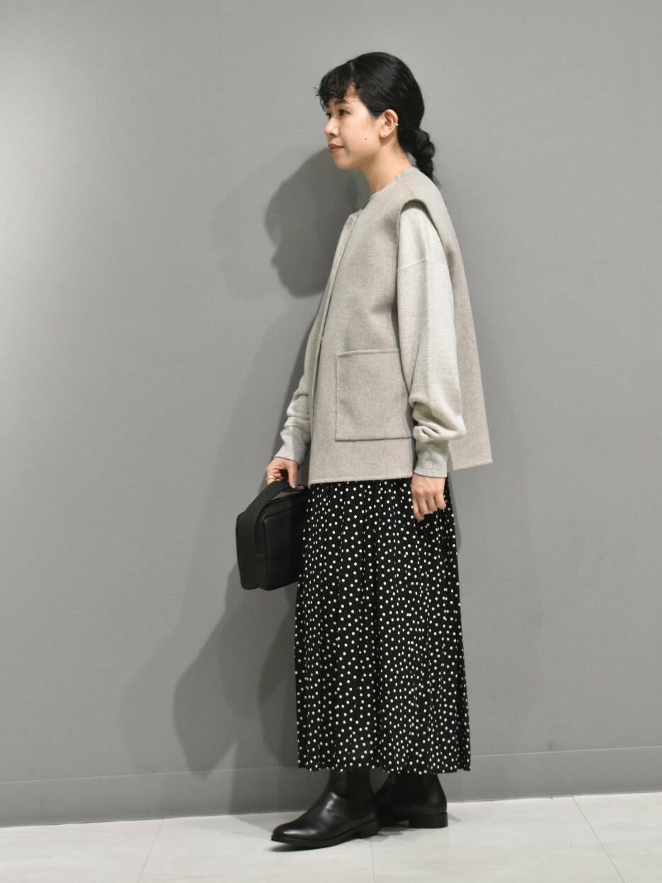 ウール素材のベストはリラックス感がありつつも大人っぽいモードな雰囲気で合わせられます(^^)