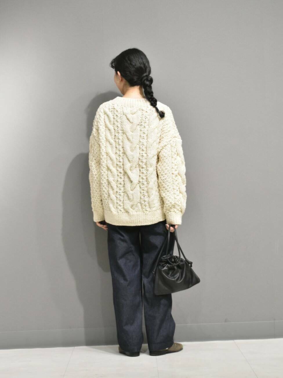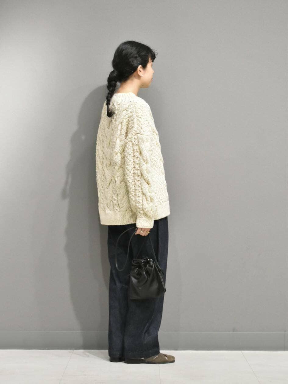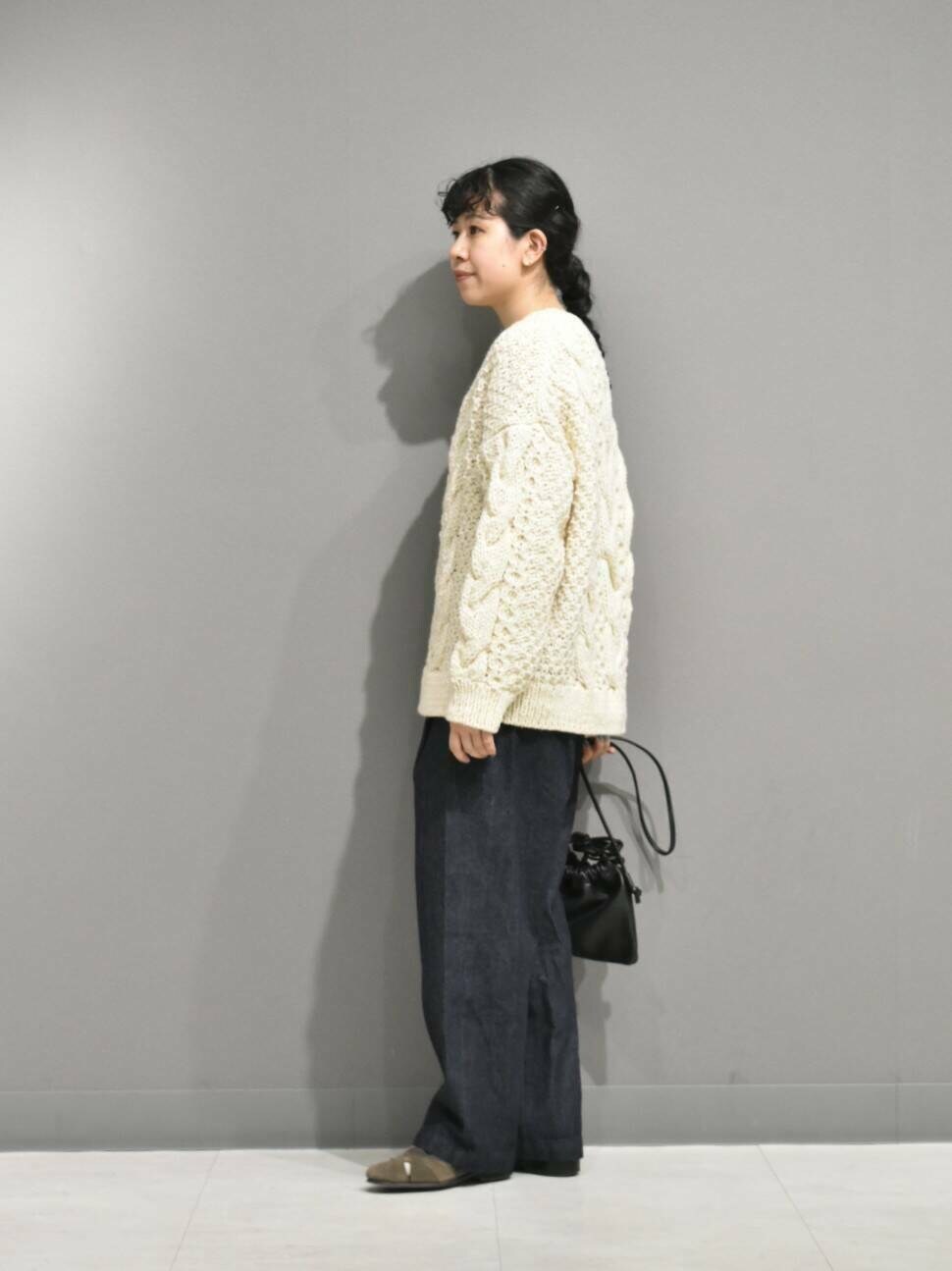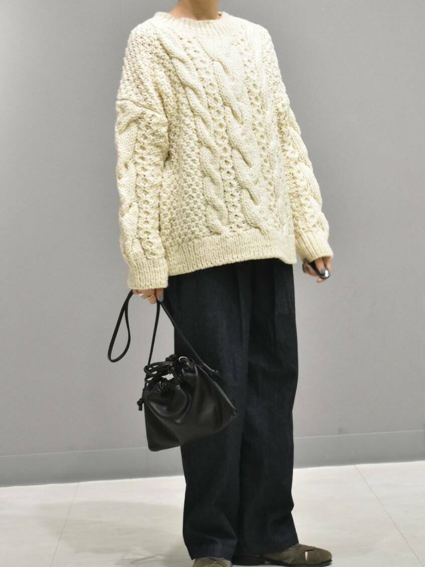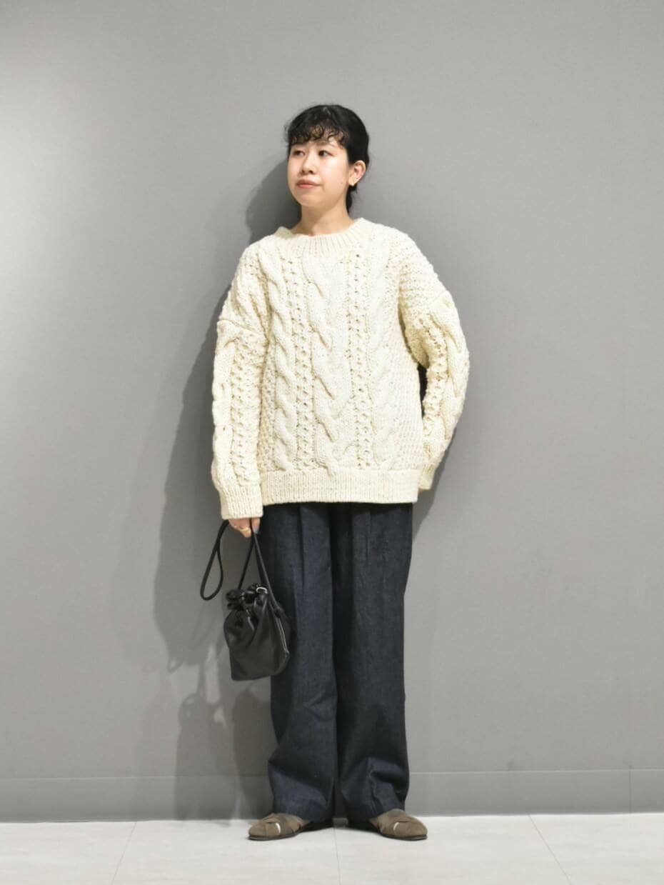 立体感のある手編みのブルーニットは1枚あると秋冬のスタイリングが楽しくなりますね。