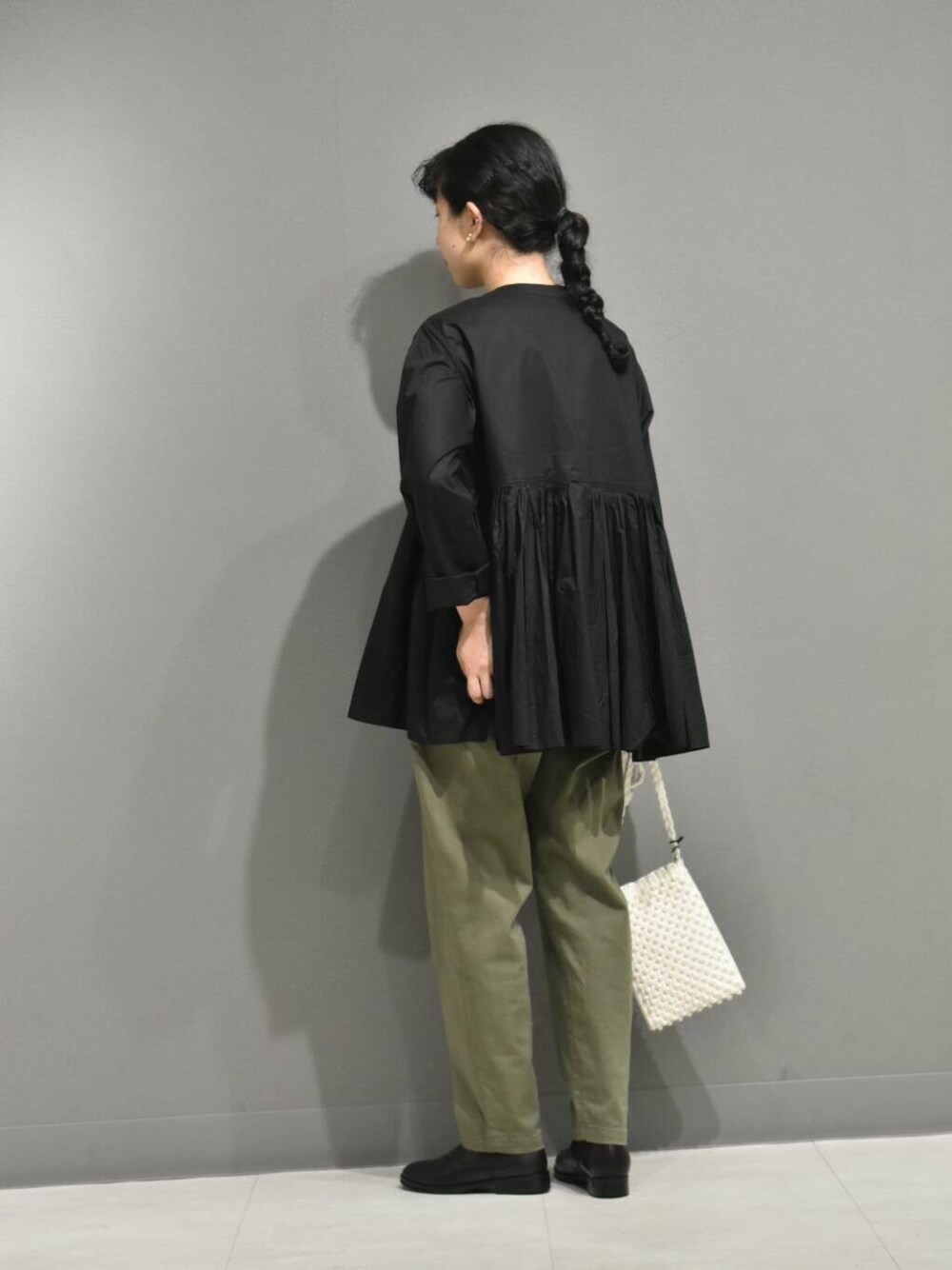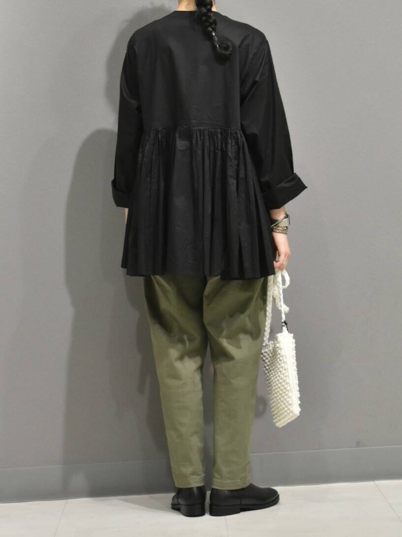 エスニックな印象のある見頃が目を引きますが、ハリ感のある高密度な綿なので綺麗めな印象に。