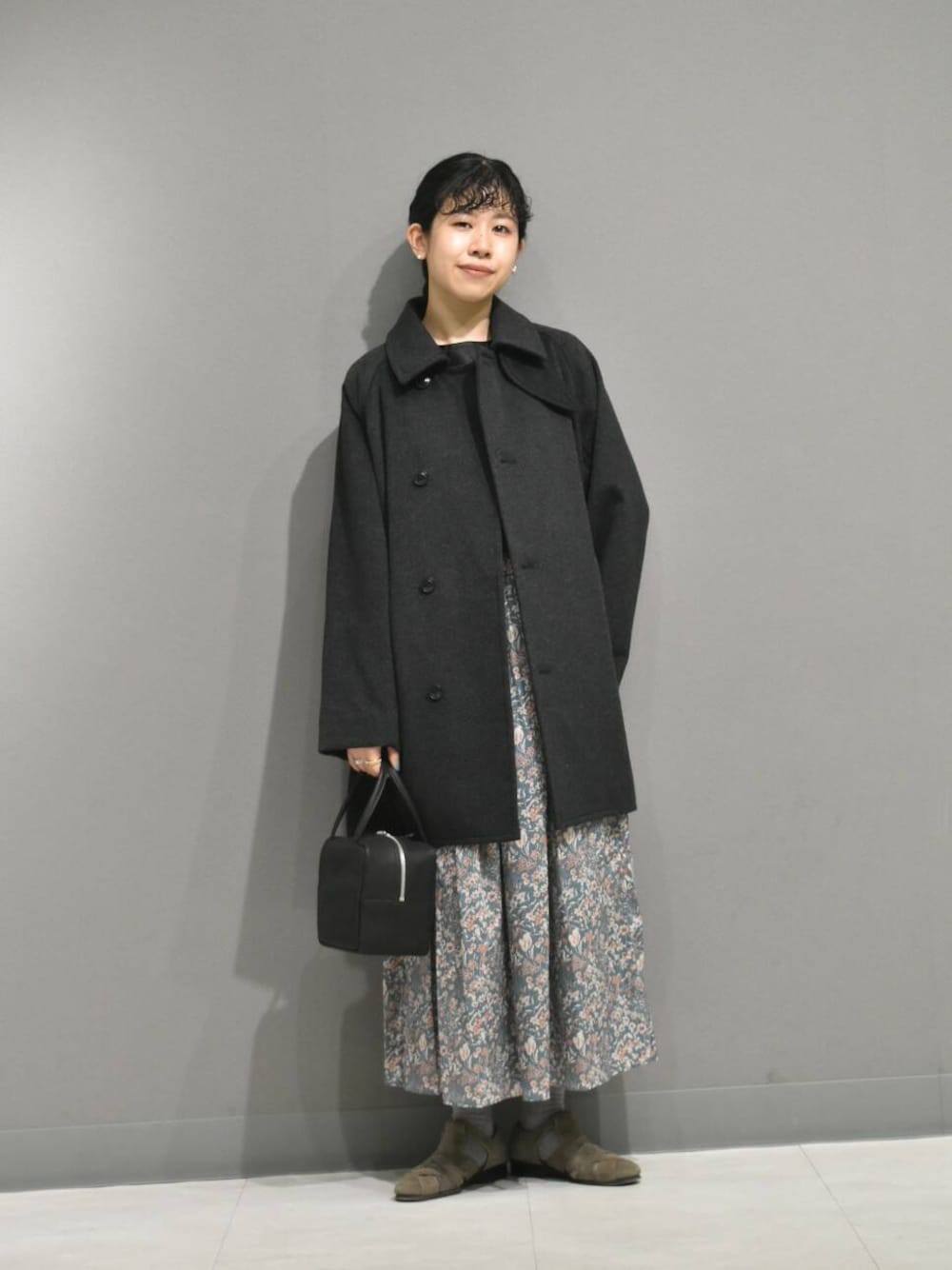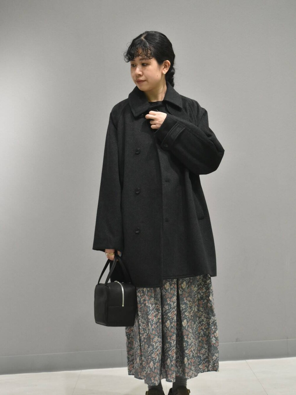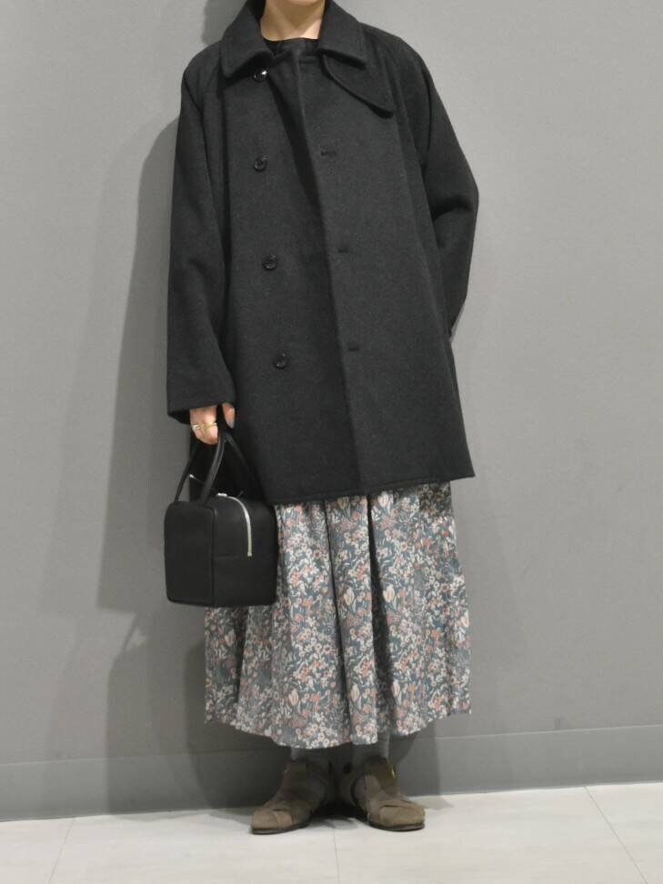 ミドル丈のPコートは普段遣いしやすく、防寒対策も抜群◎