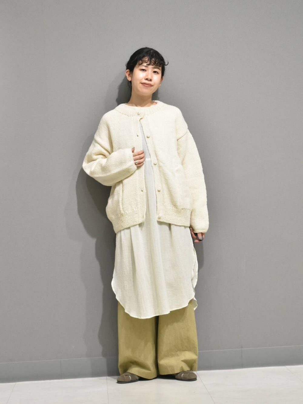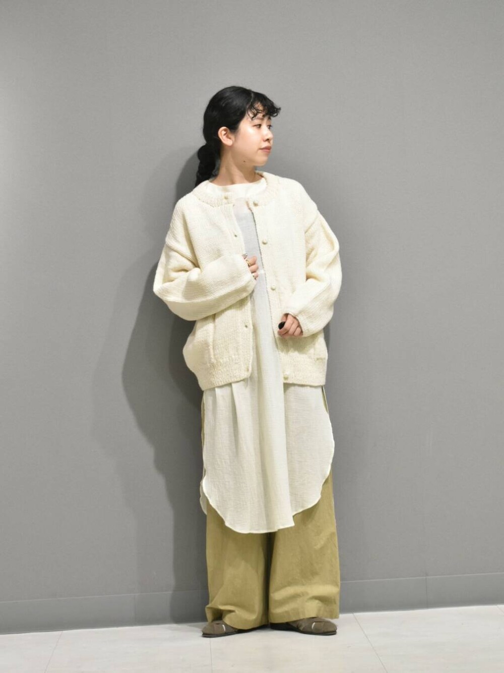 ボタンも含めてワントーンなのでカラーや重ね着をしてもバタつかずコーディネートもしやすいです^ ^