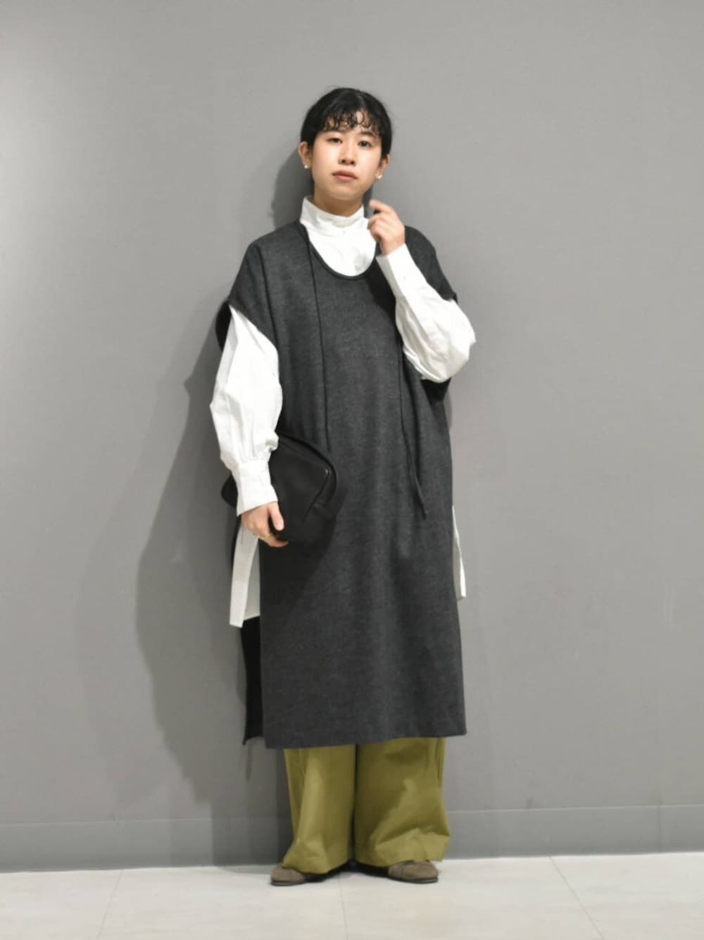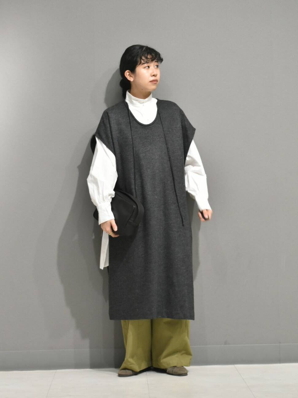 インナーとしてかなりゆるっとしたブラウスを合わせましたが、全くもたつきもなく何にでもコーディネートしやすいです^ ^