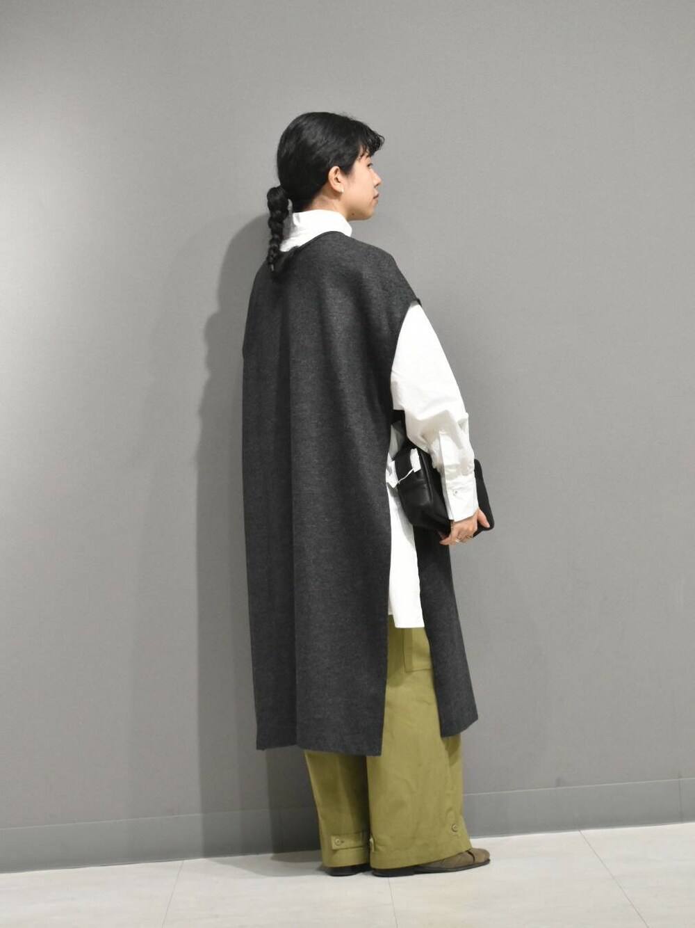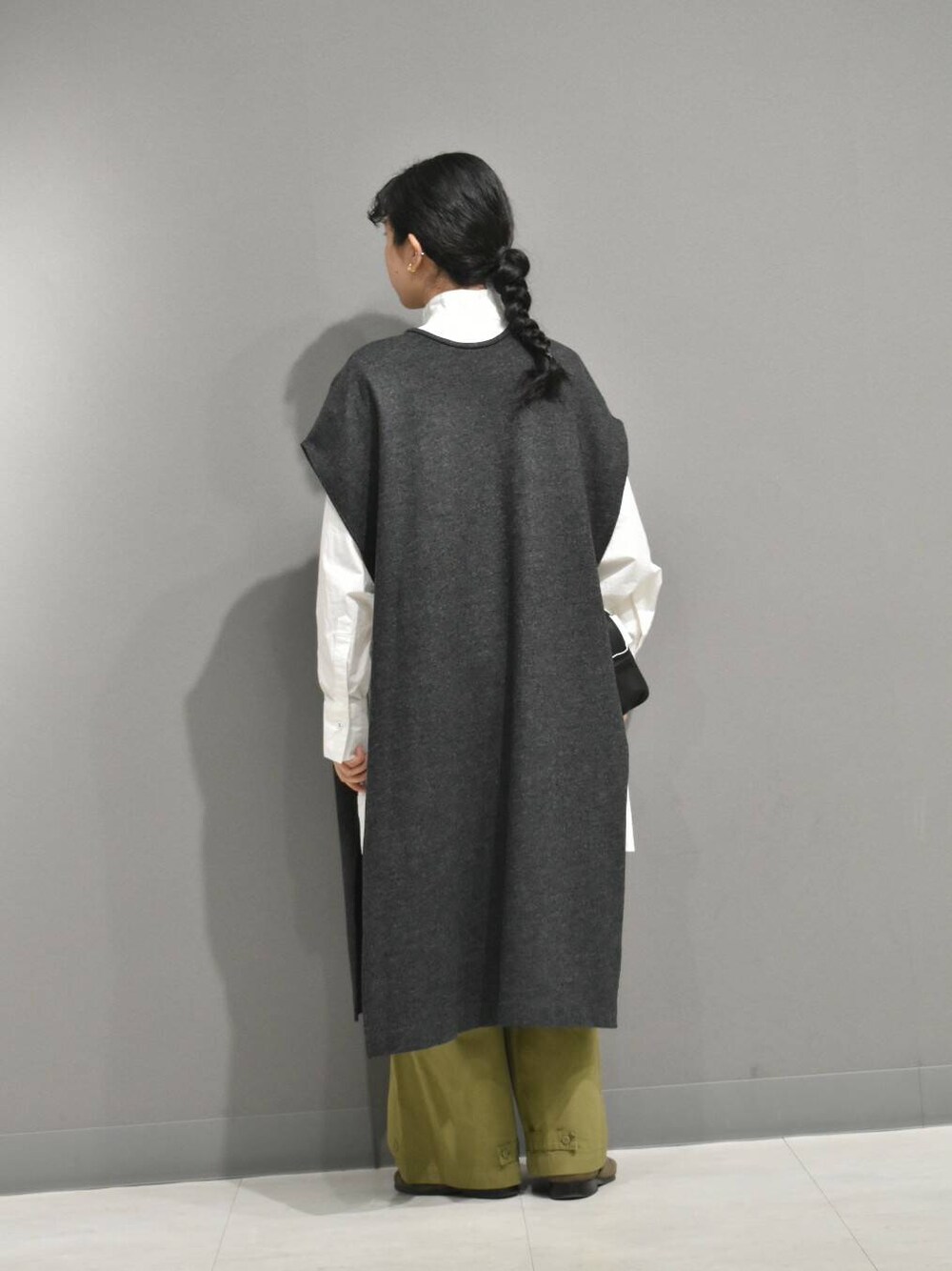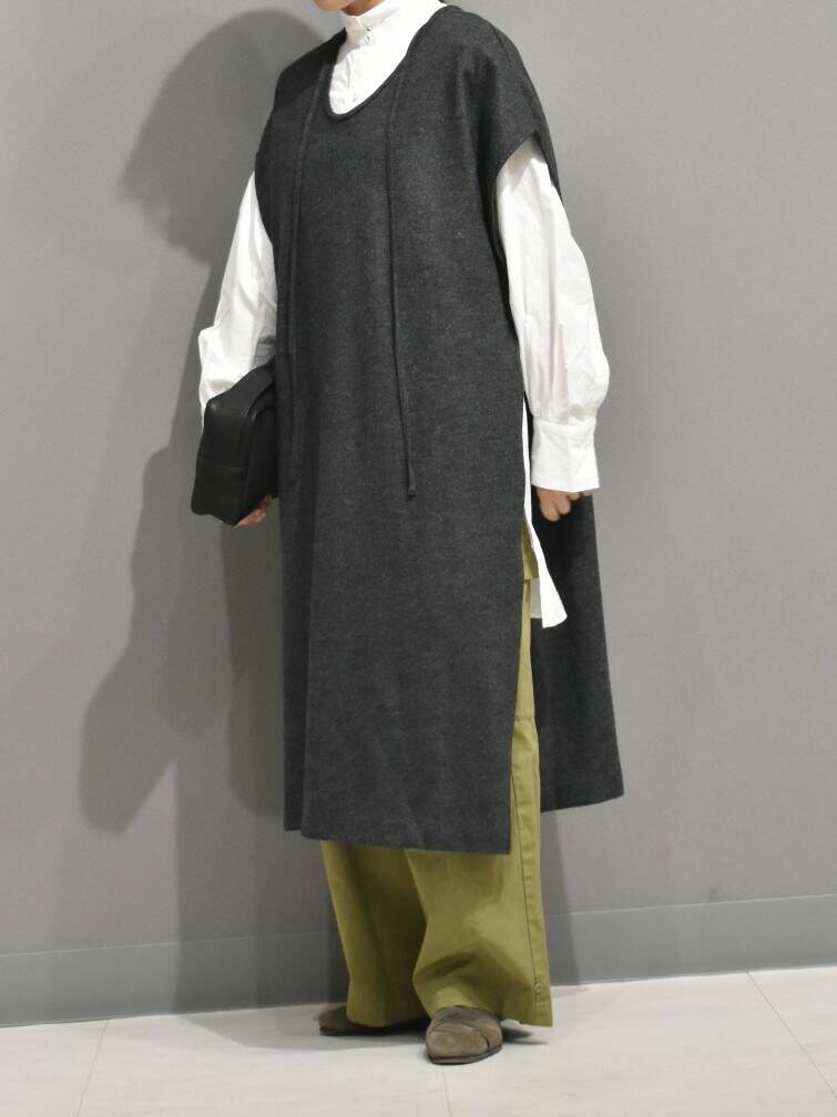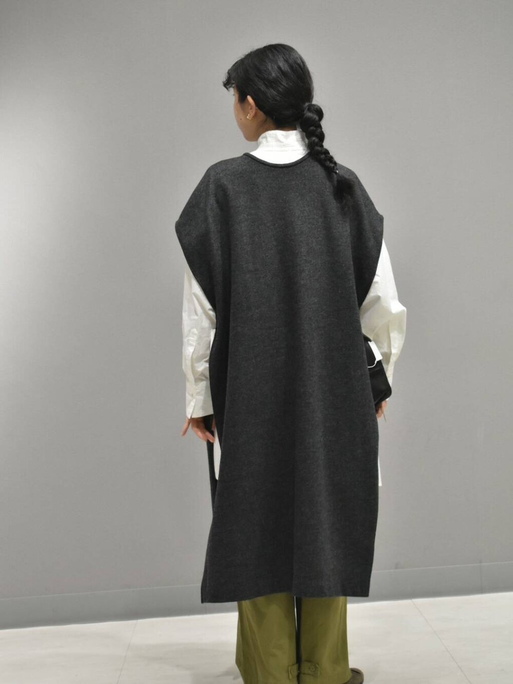 ウール素材のジレは柔らかい肌触りと風合いが上品な印象です。