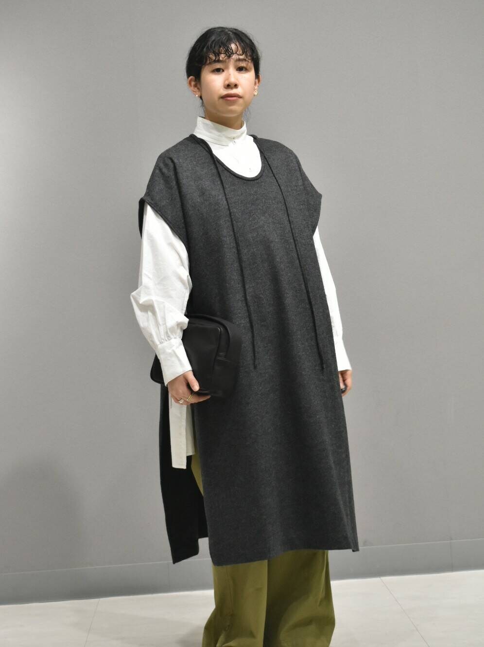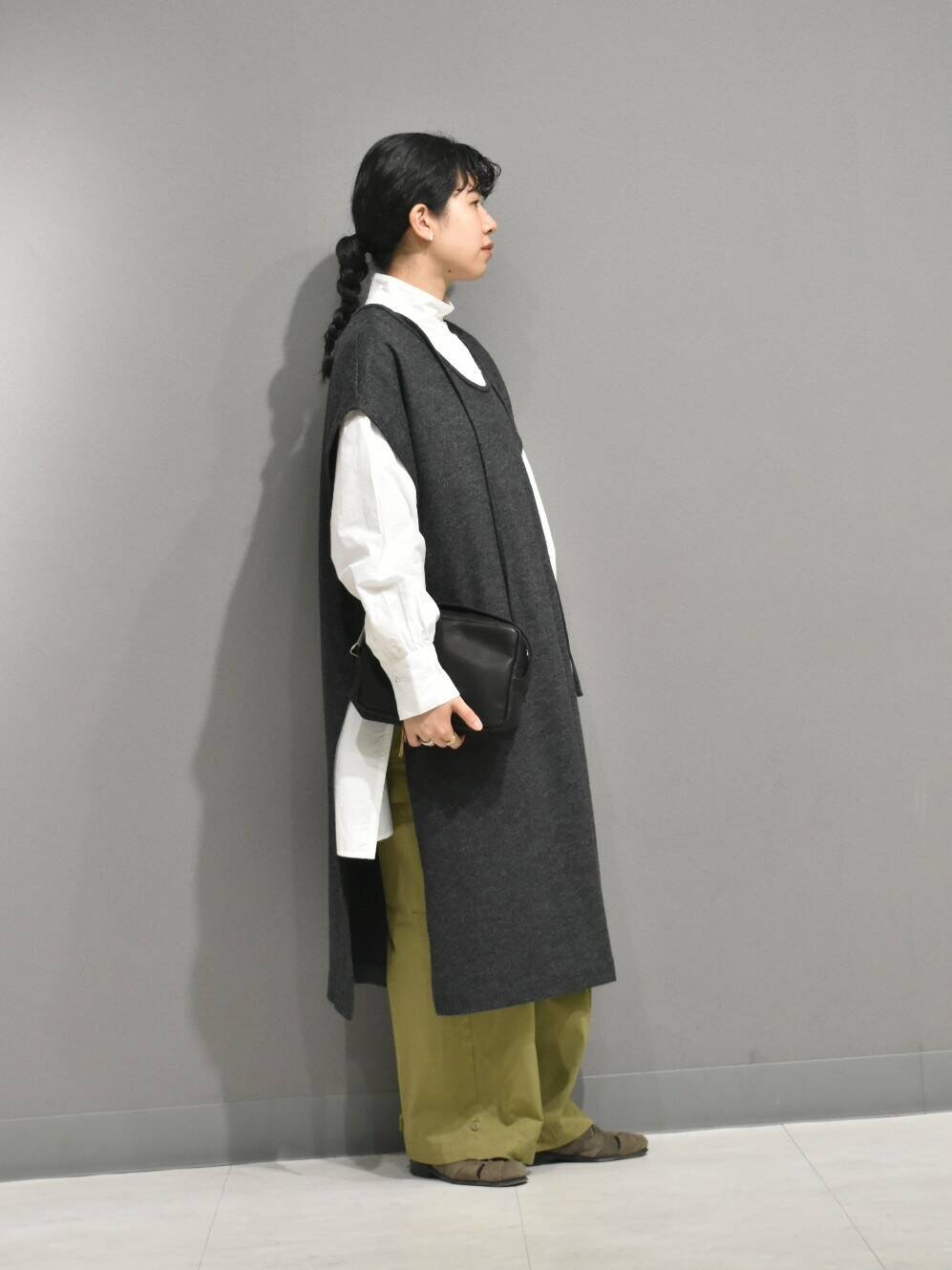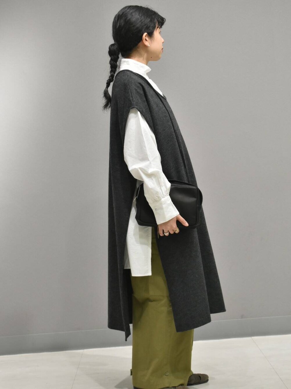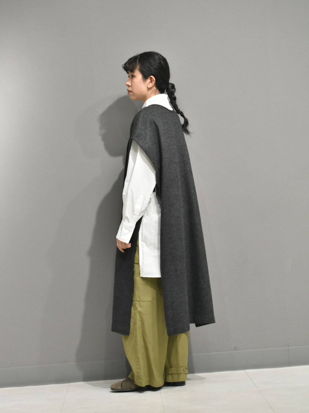 ウール素材のジレは柔らかい肌触りと風合いが上品な印象です。
