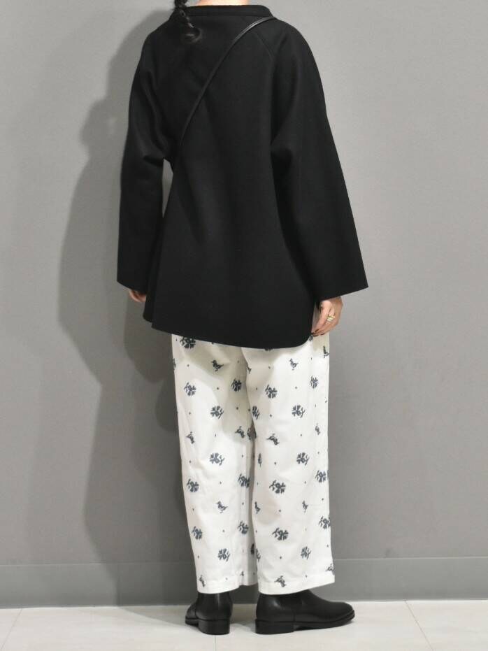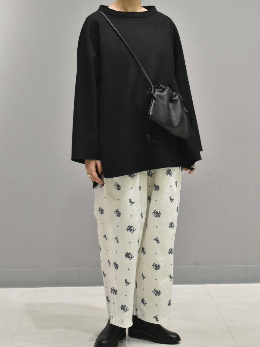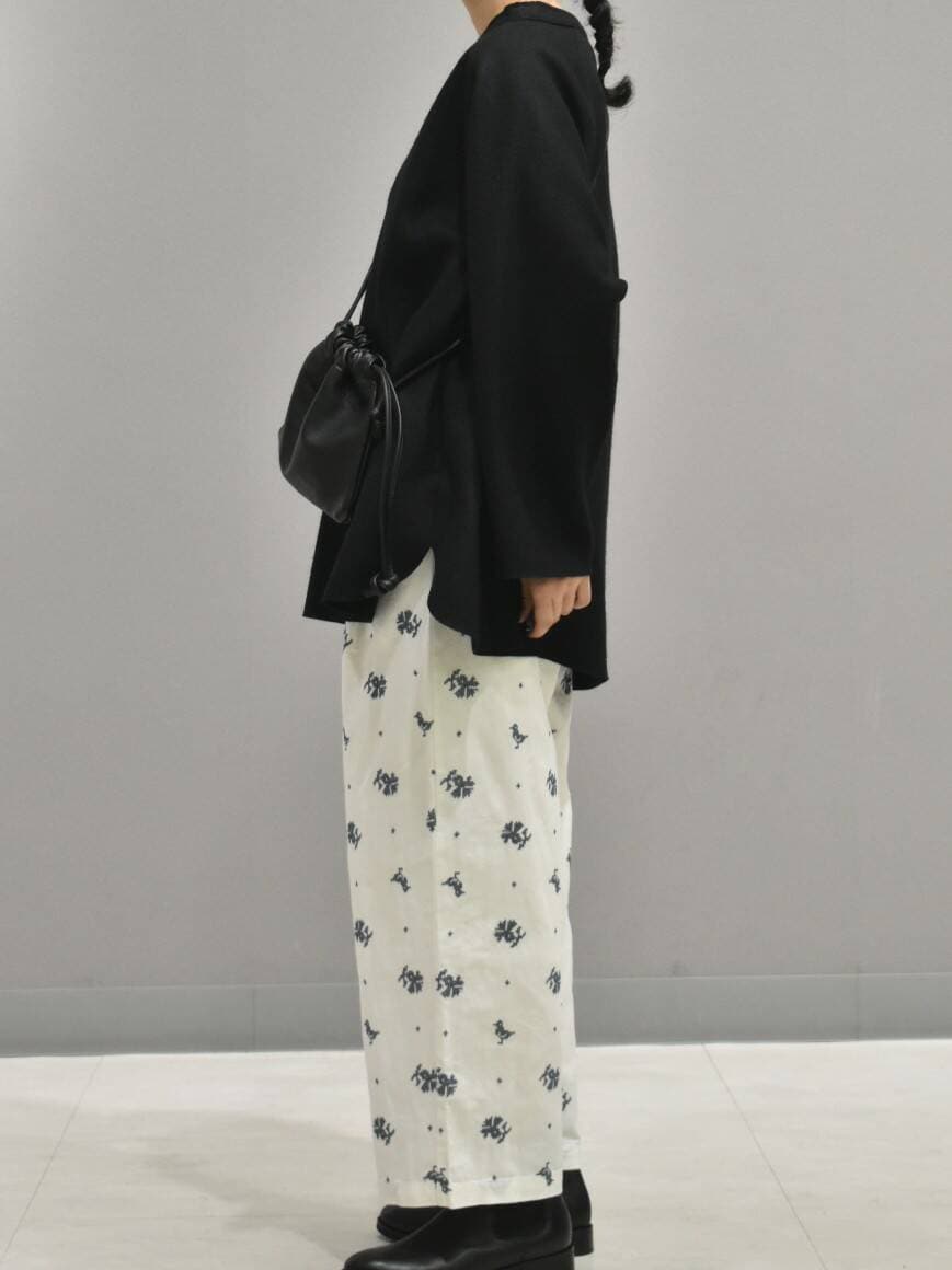 雰囲気のある刺繍が目を引くクロップド丈のパンツが新入荷。