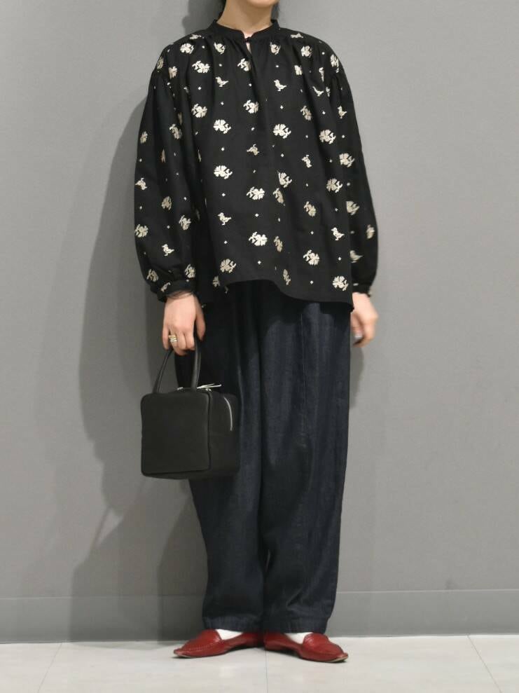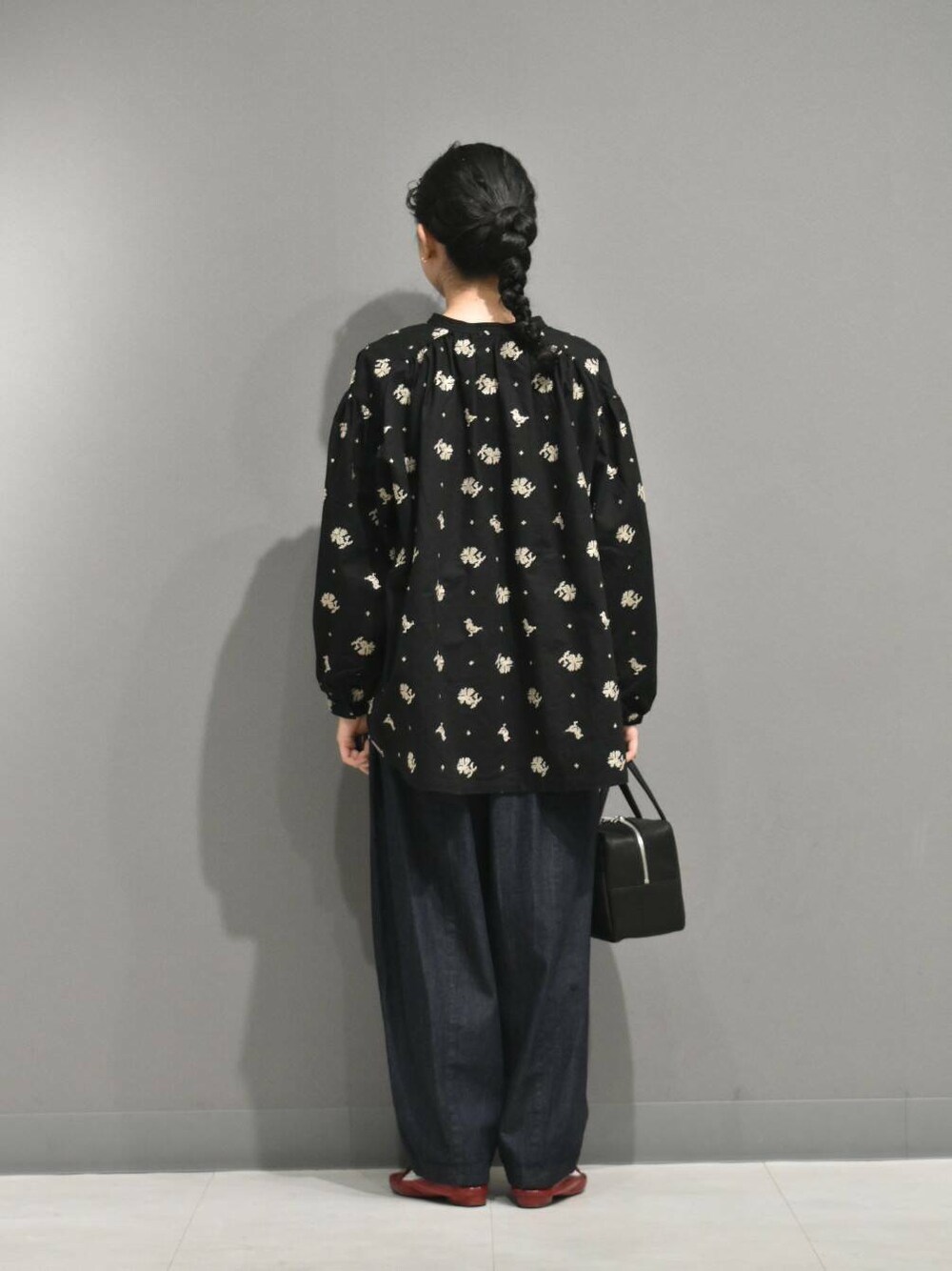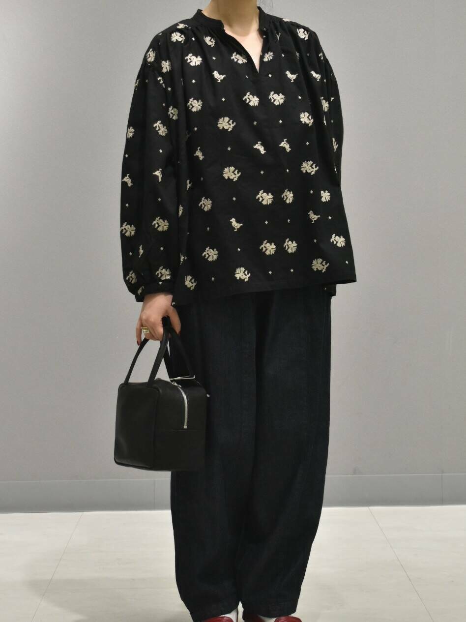鳥とお花のステッチが目を引く刺繍のブラウスが新入荷。