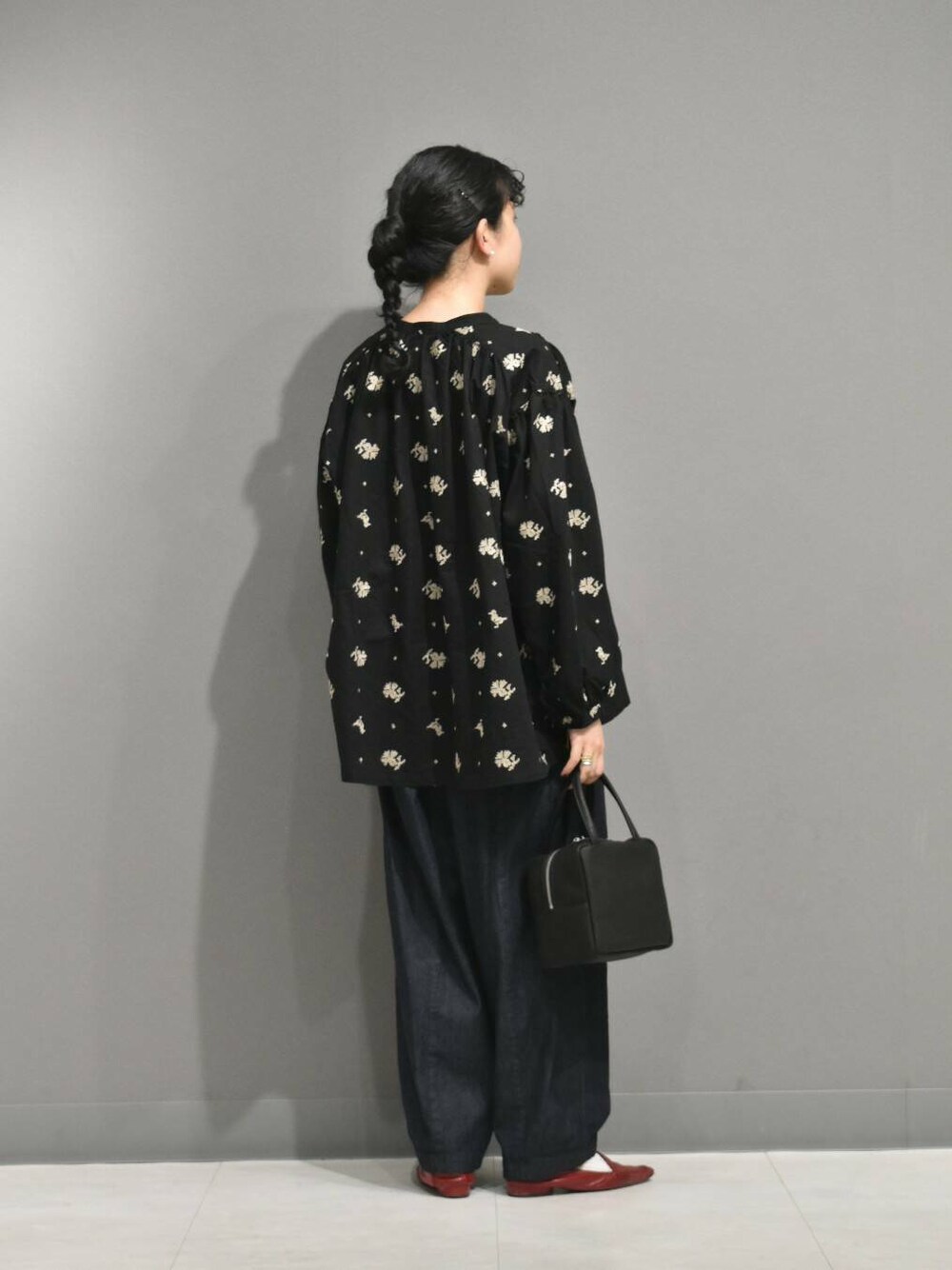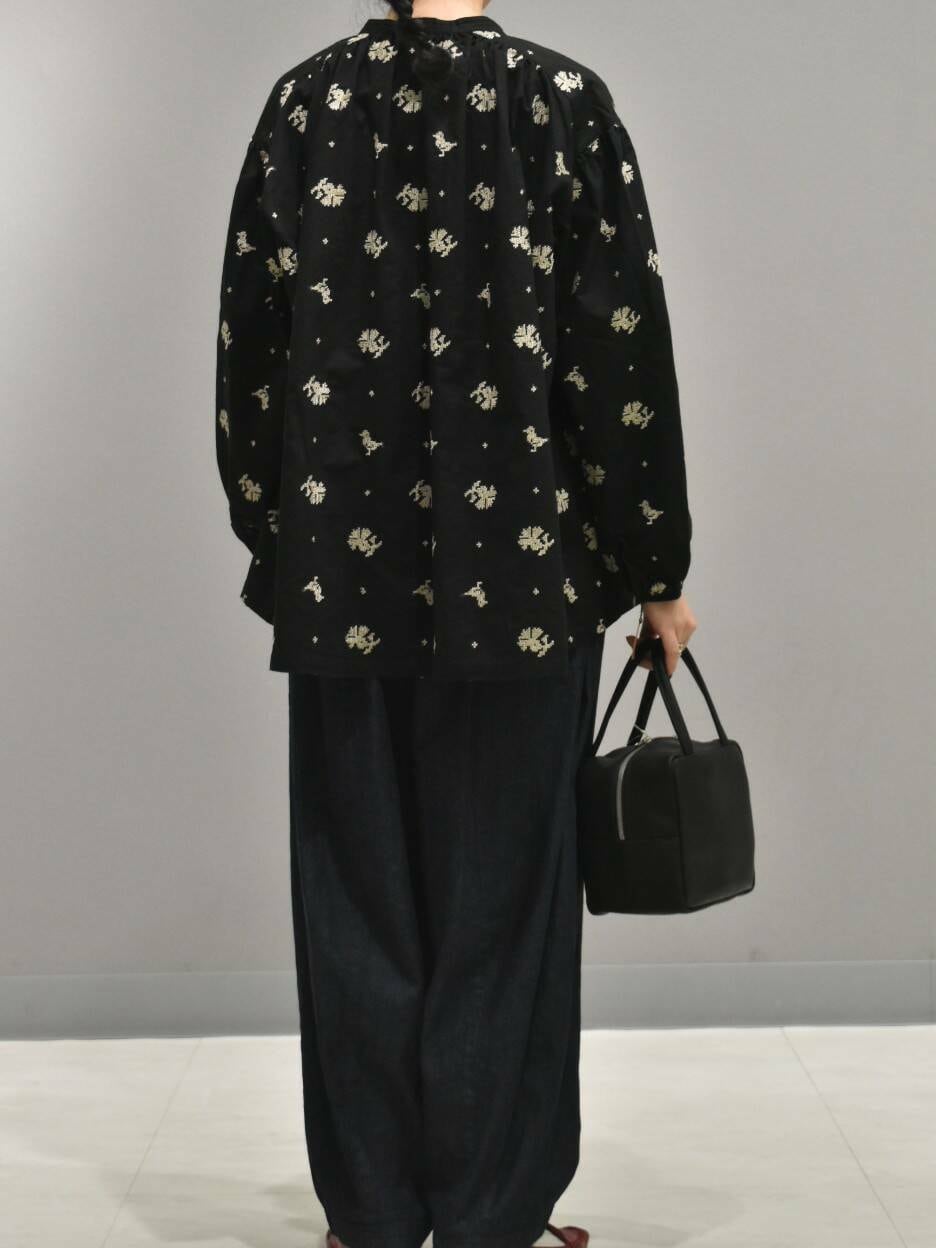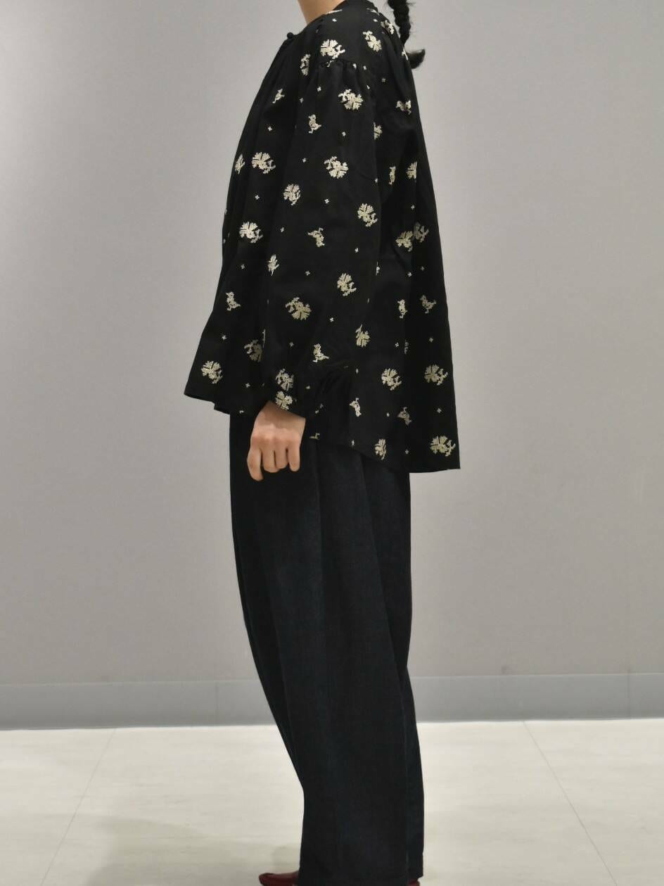 鳥とお花のステッチが目を引く刺繍のブラウスが新入荷。