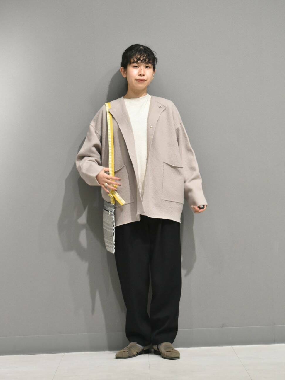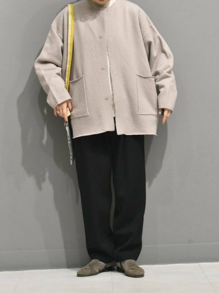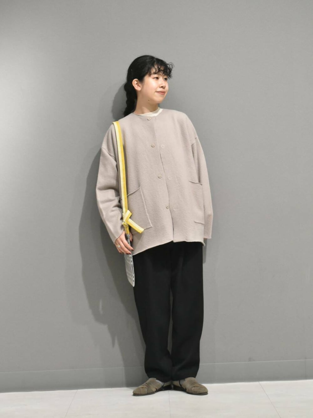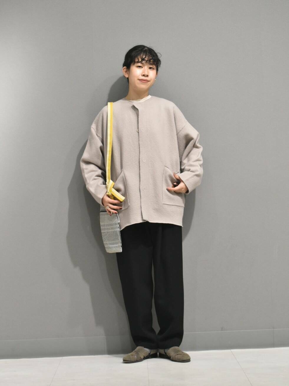 自然なカラーと切りっぱなしのデザインが大人っぽいアウター。