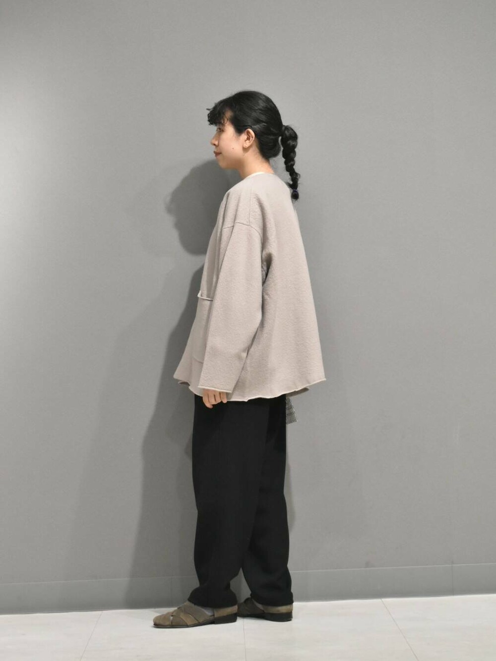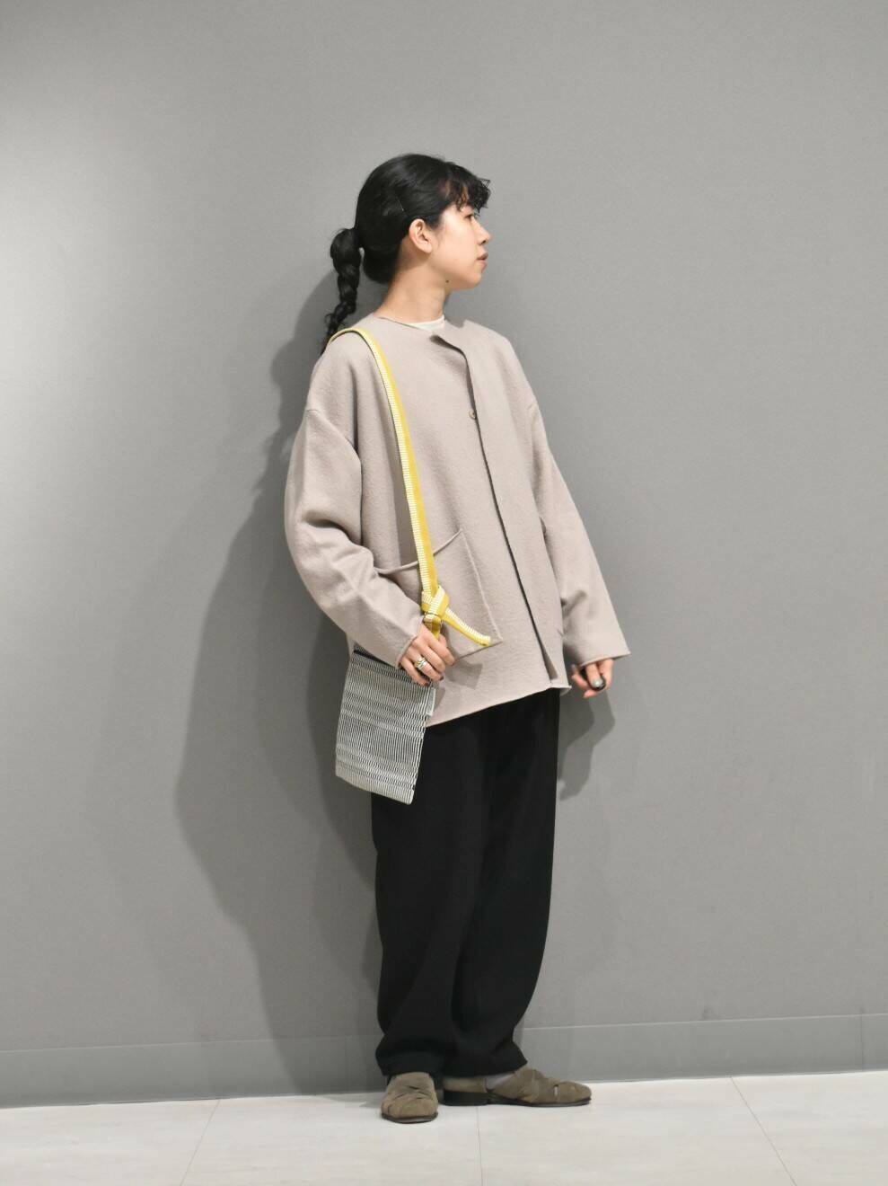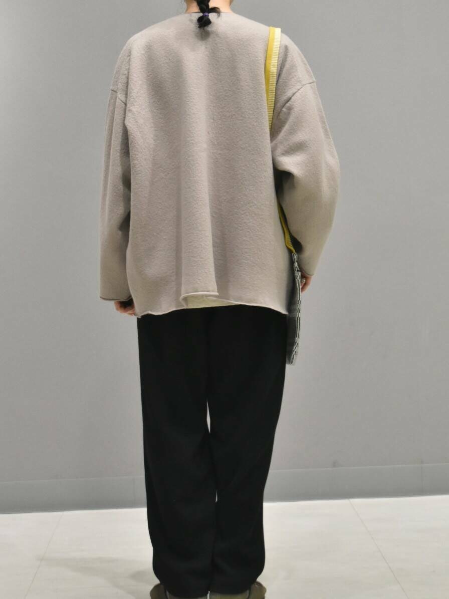 自然なカラーと切りっぱなしのデザインが大人っぽいアウター。