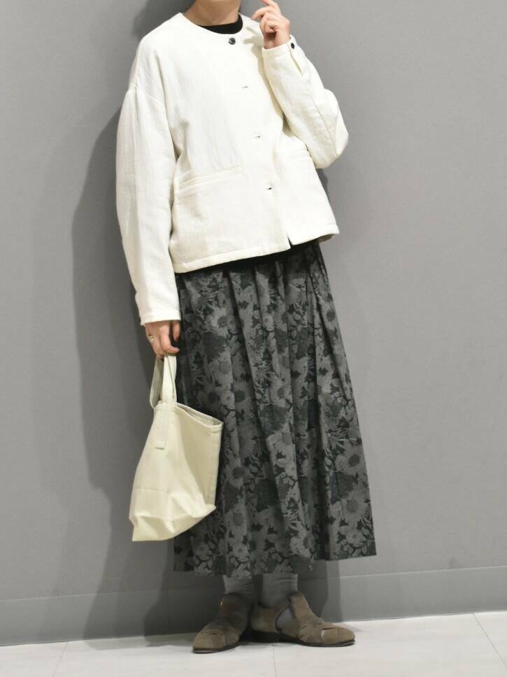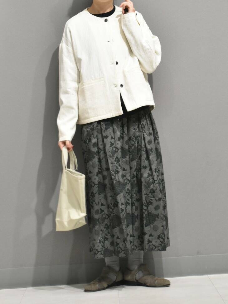 大柄ですがモノトーンなので合わせやすく、挑戦して頂きやすいスカートです(^^)