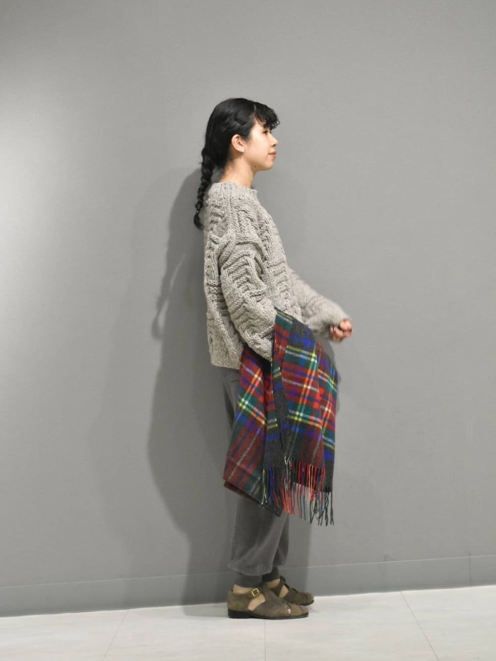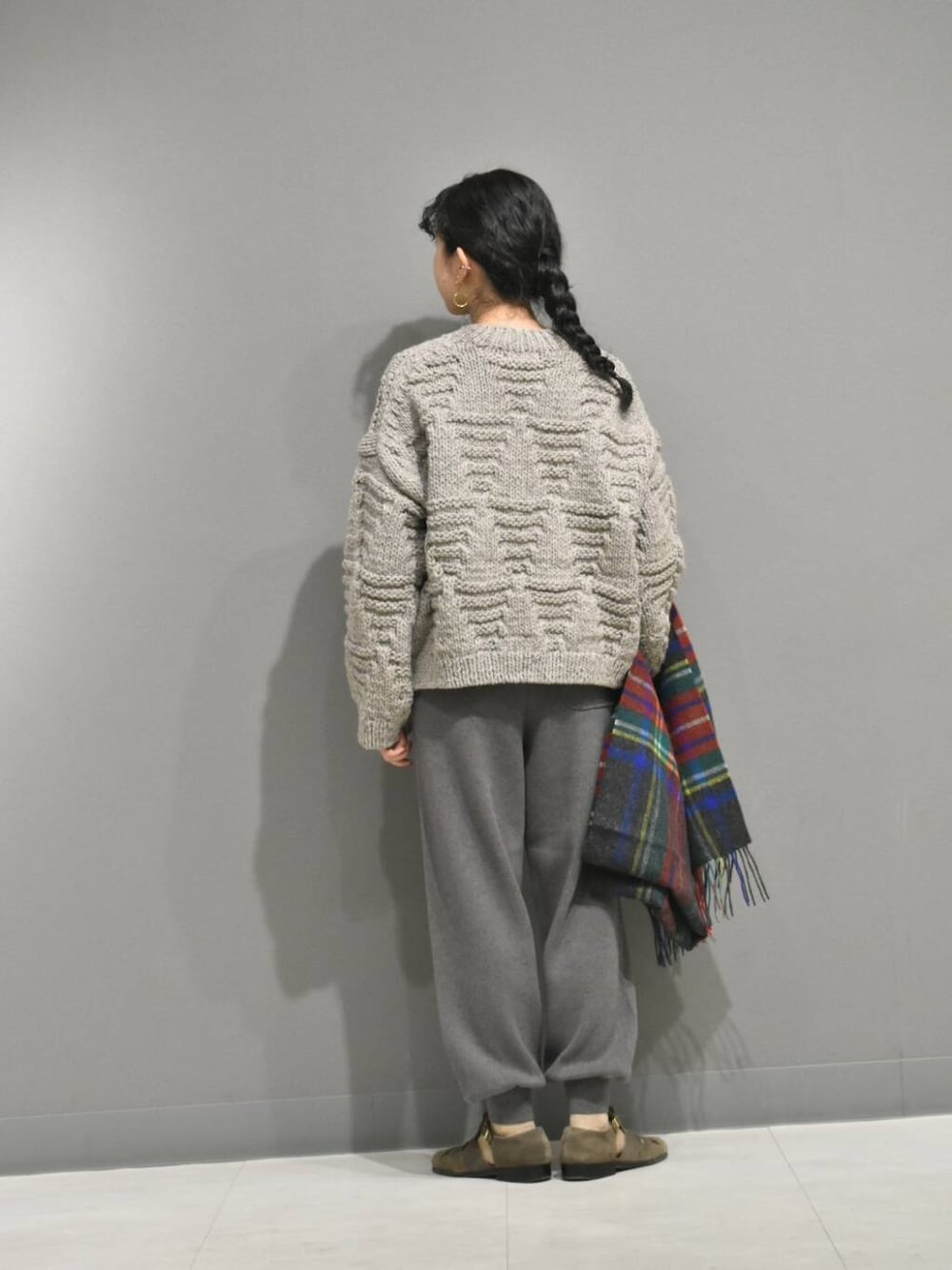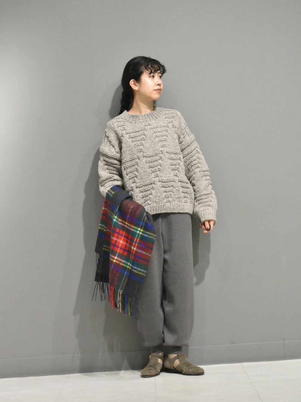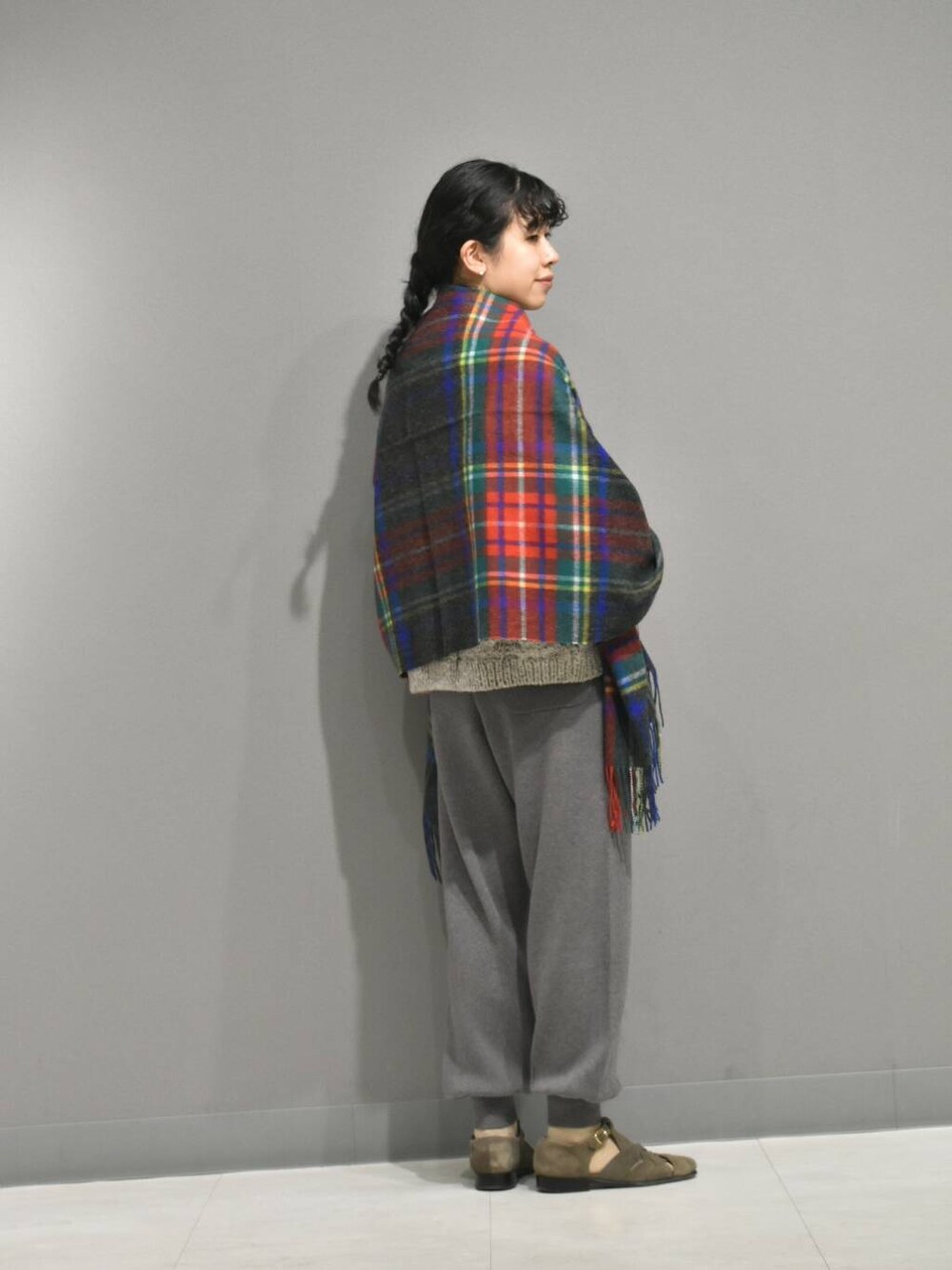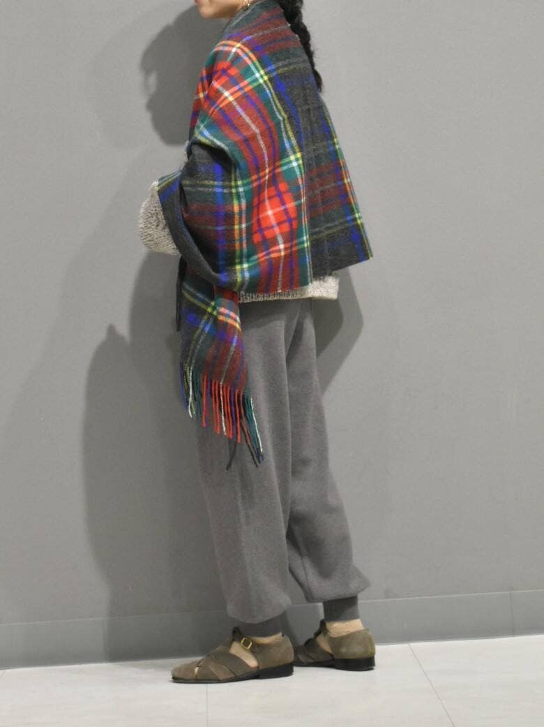 足先のリブがポイントのパンツはワントーンでスタイリングを組んでみました。