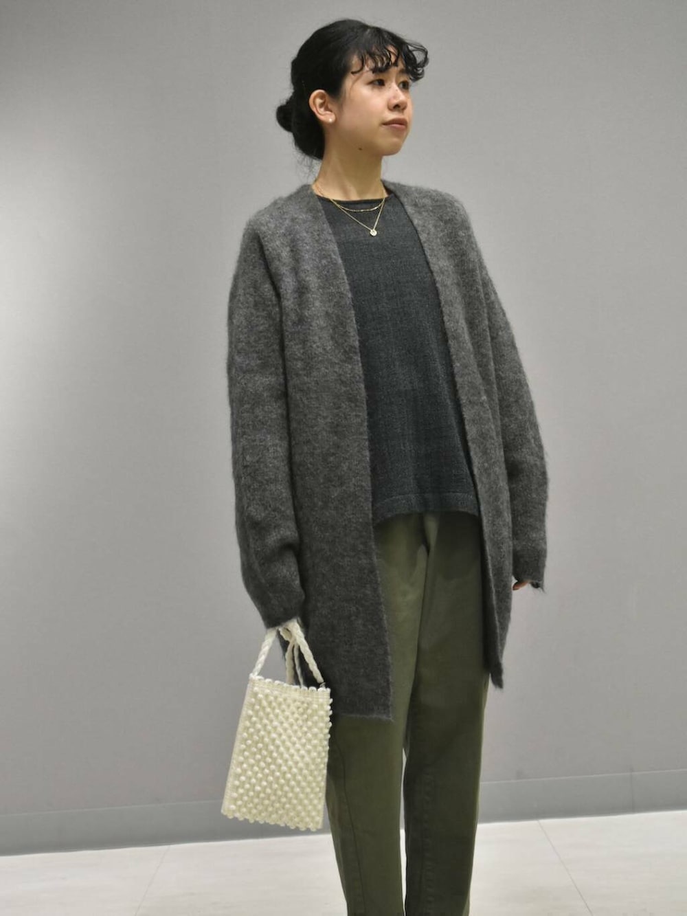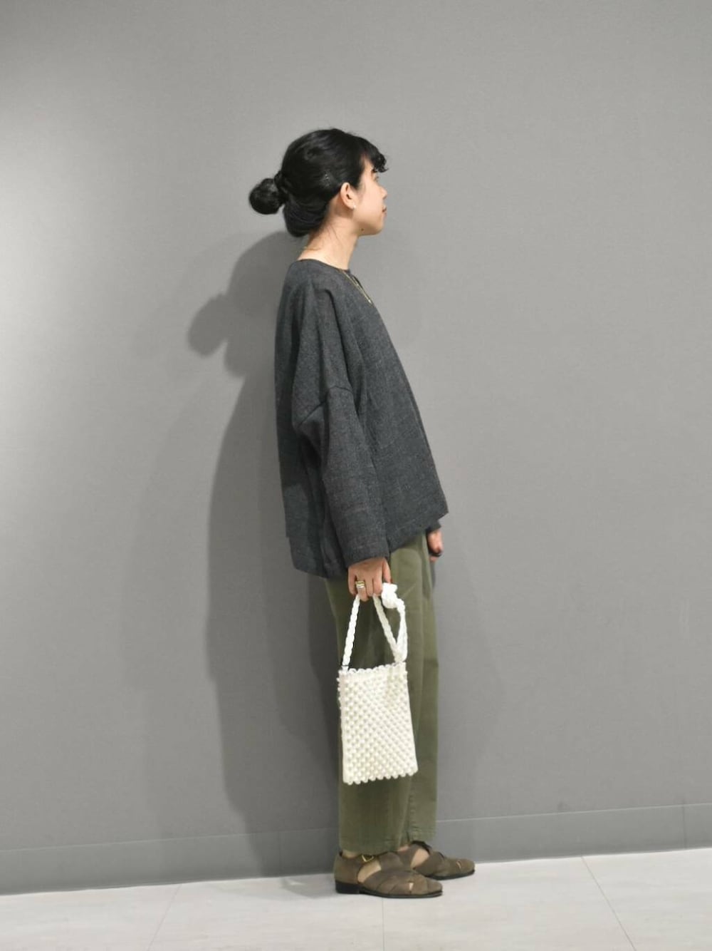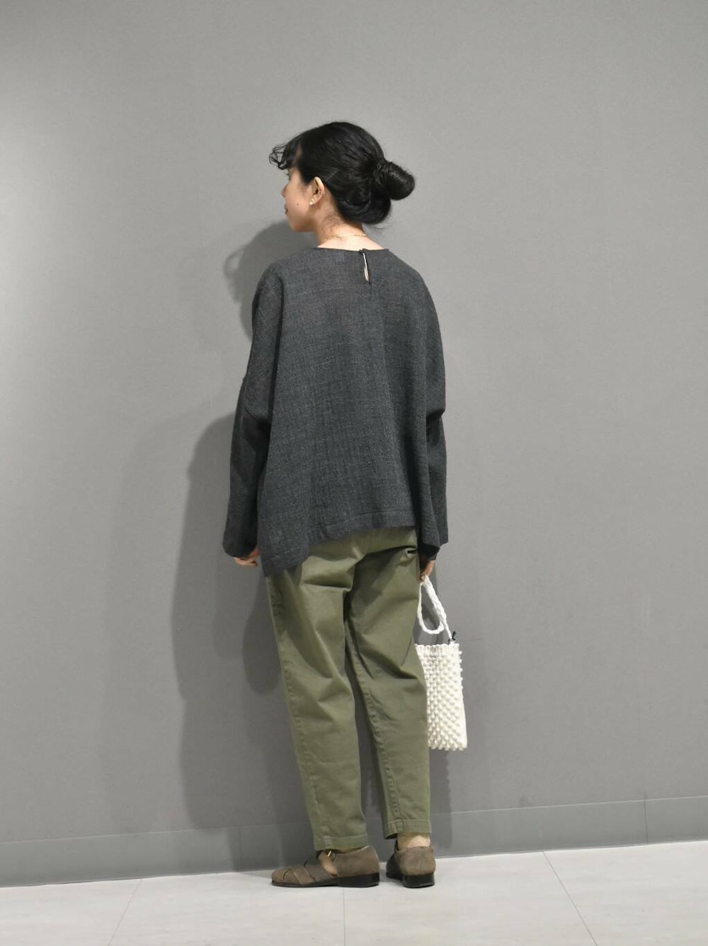 合わせたコットンストレッチイージーパンツはかぐれで定番のアイテムで、履き心地がとても良くてスタイリングに万能なパンツです。