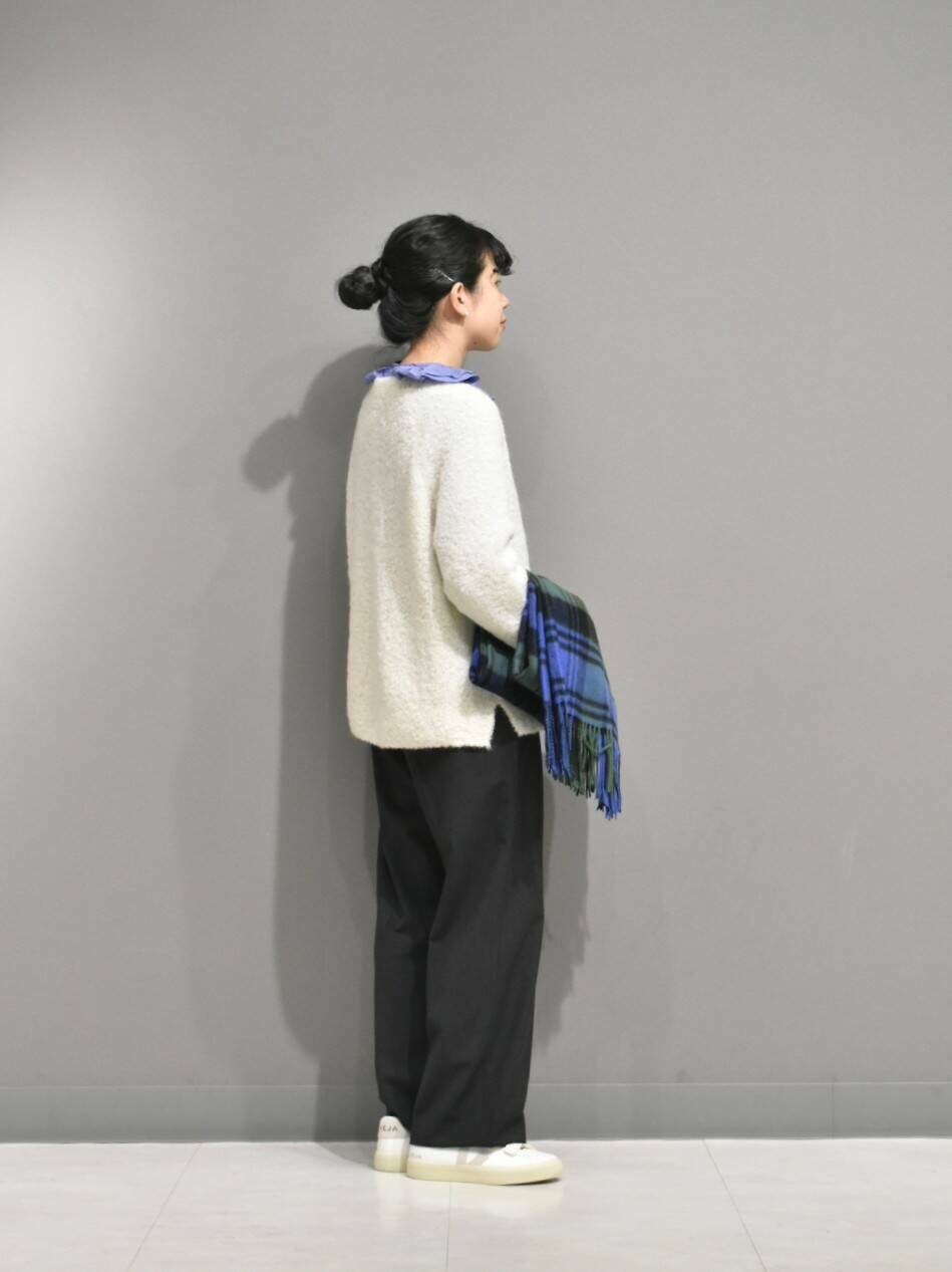 きれいめな印象の新入荷のウールストレッチトラウザーをカジュアルに合わせてみました。