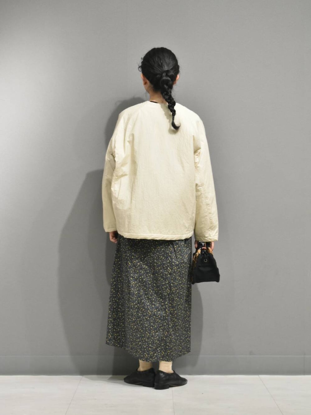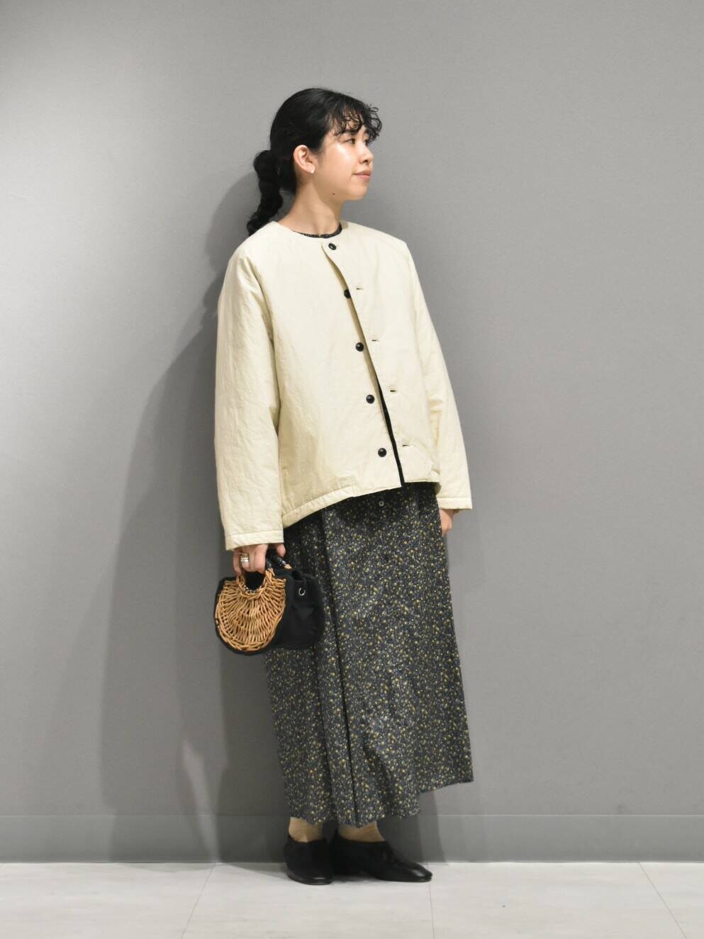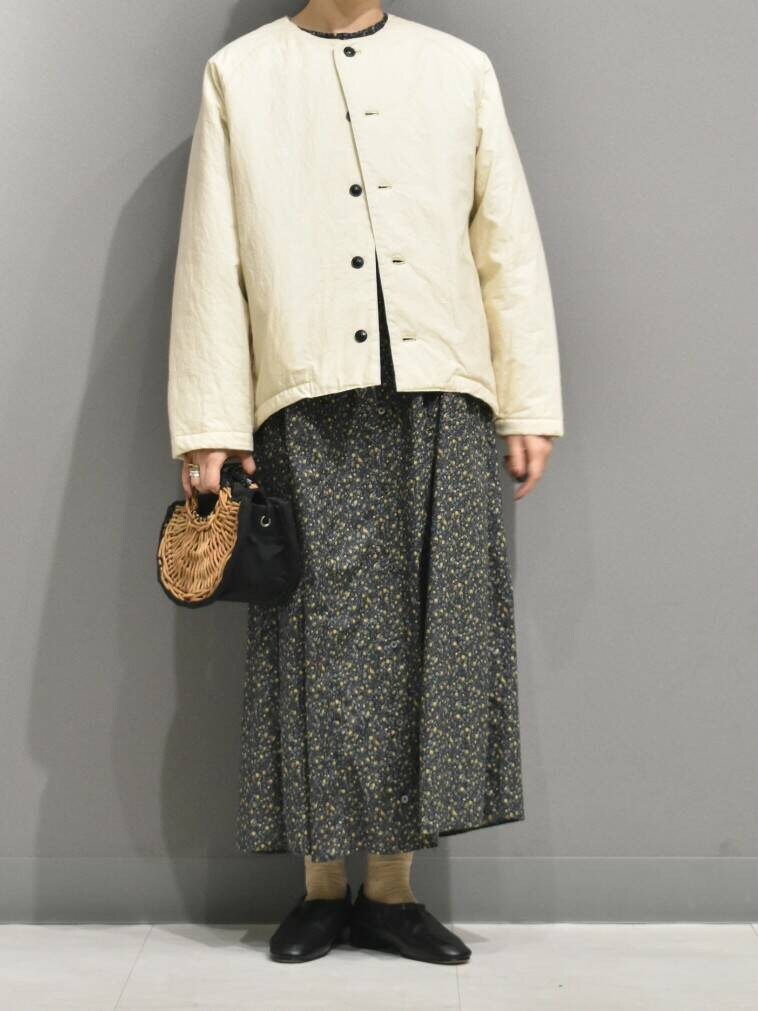 アウターは中綿なので秋から春先まで着られる万能なアイテム。