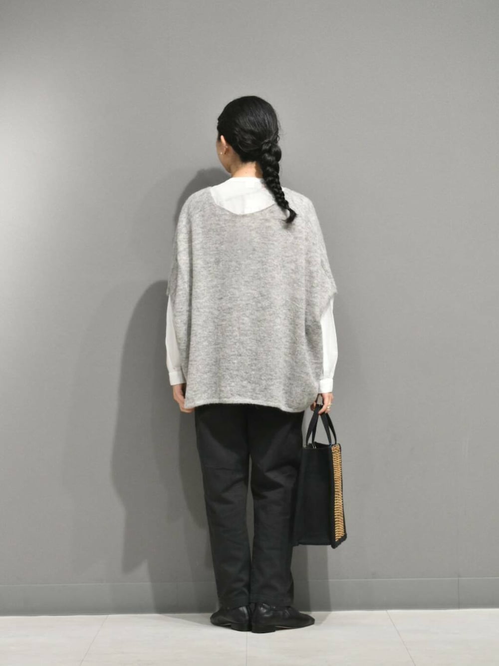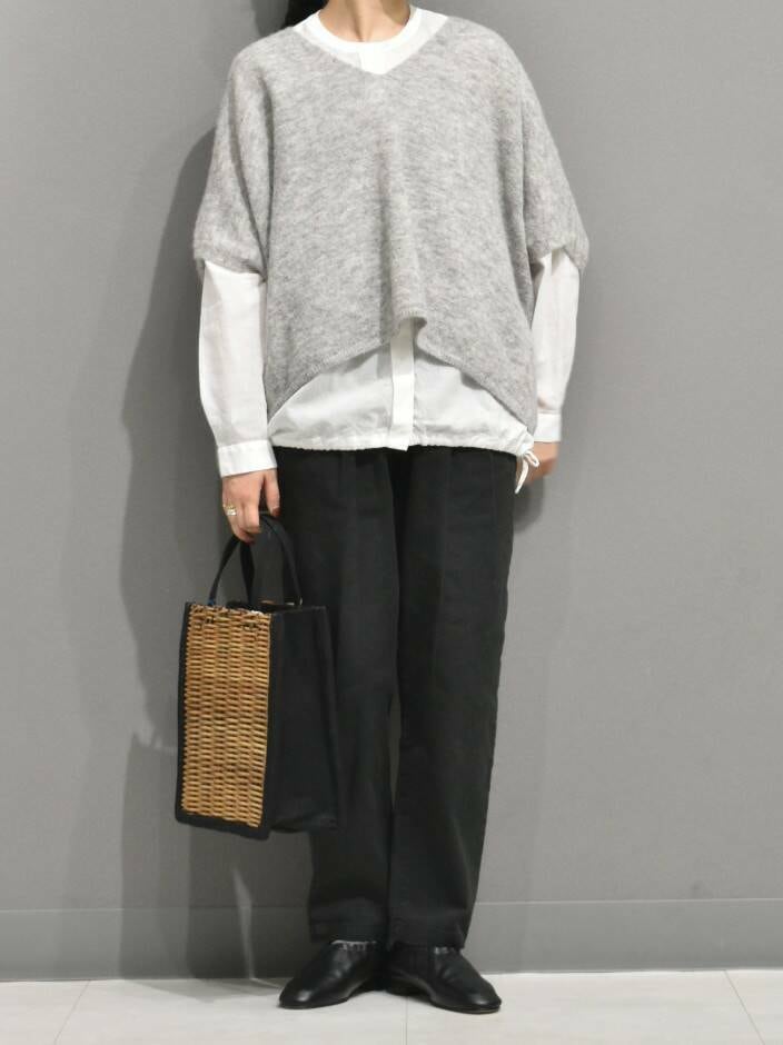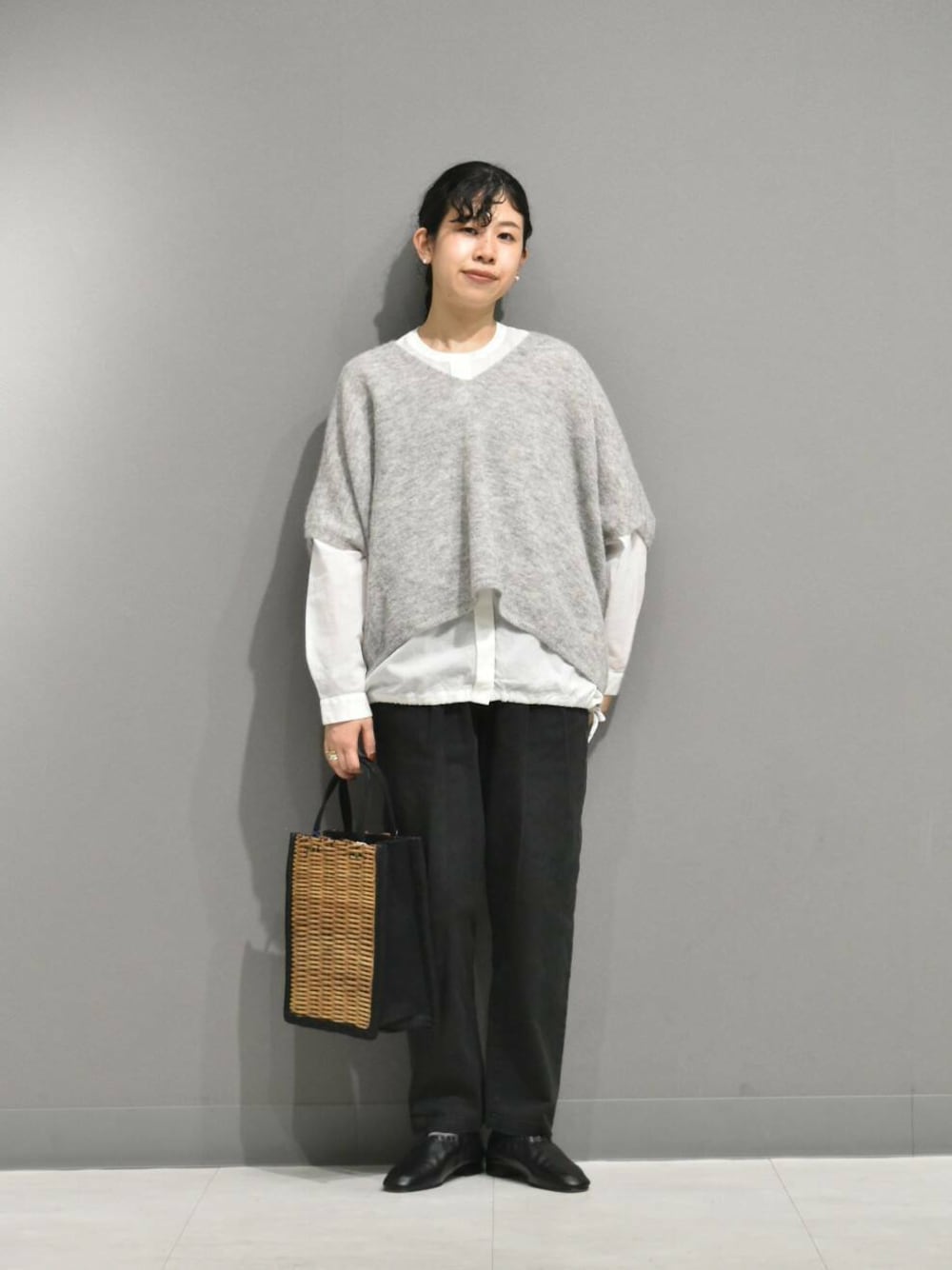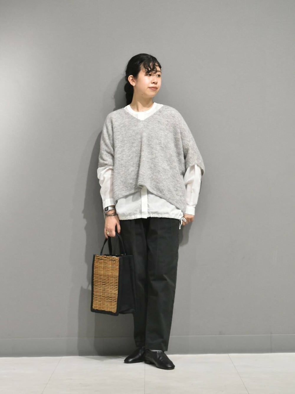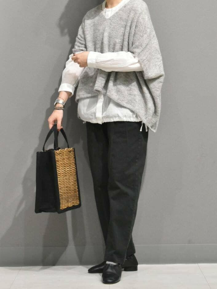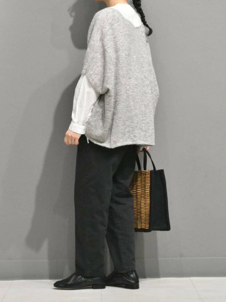 腕周りや身頃をカバーできるゆるっとしたシルエットが素敵で、短めな着丈とVネックで華奢見えも◎なアイテム。