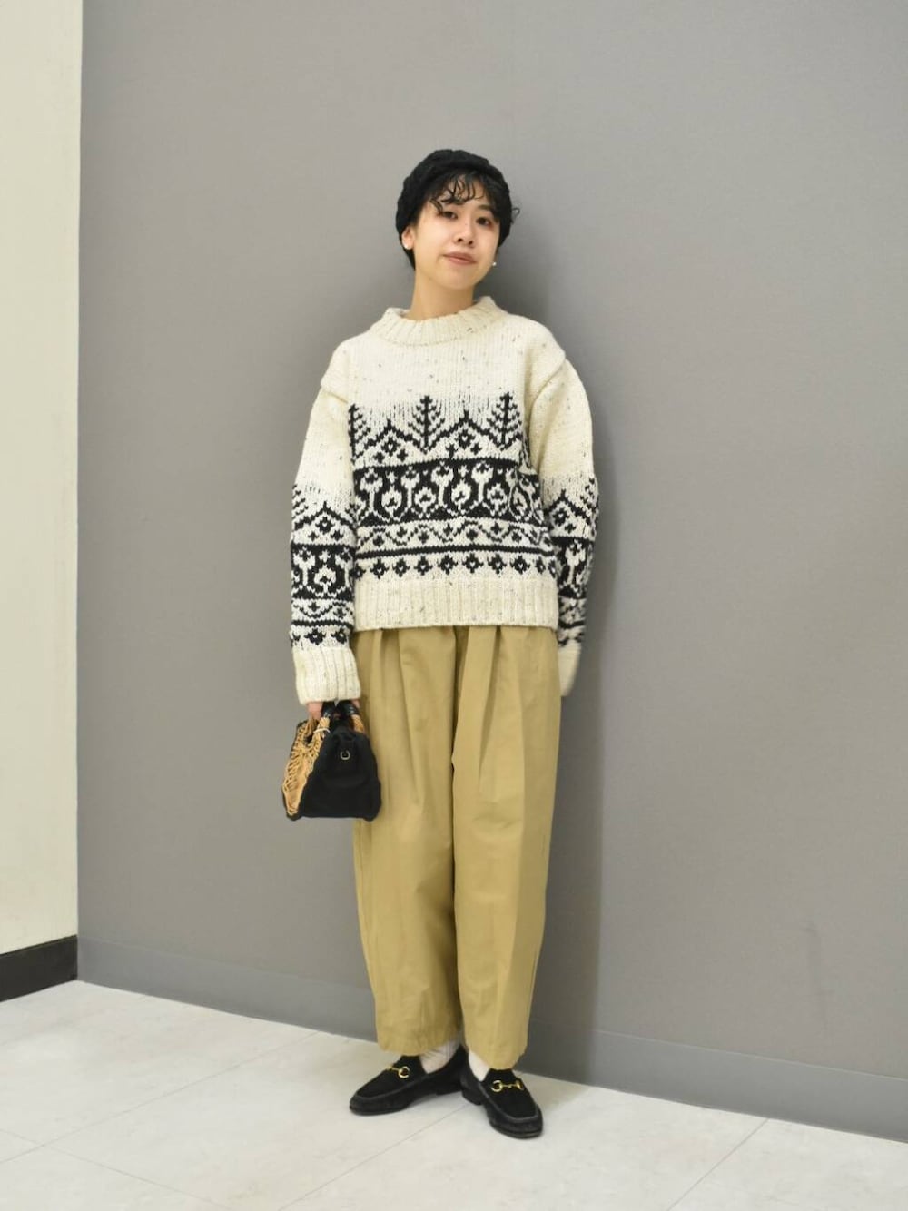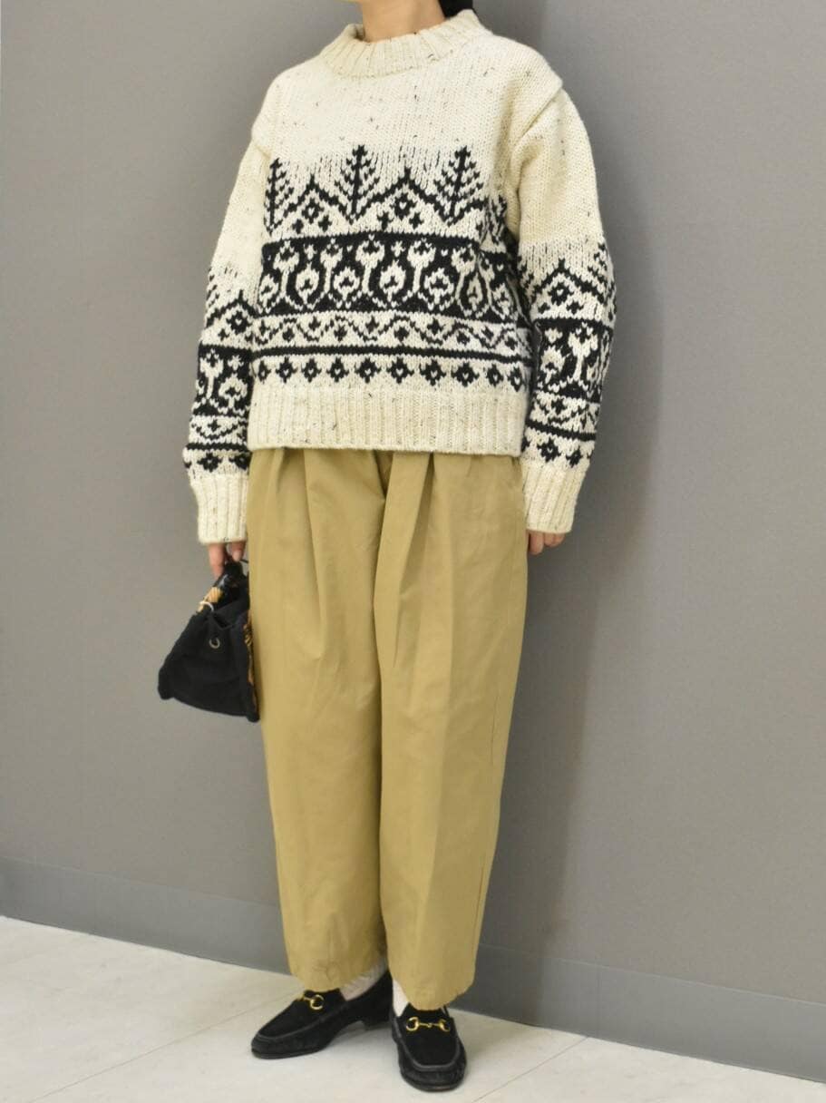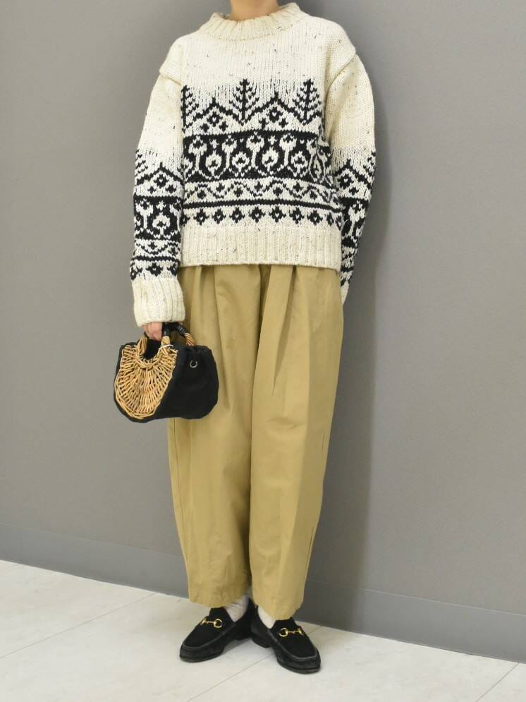 新入荷のペルーニットからマニッシュなスタイリングを組んでみました。