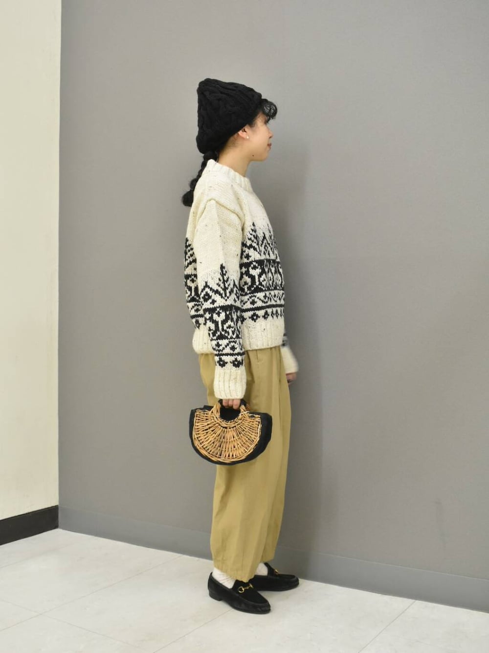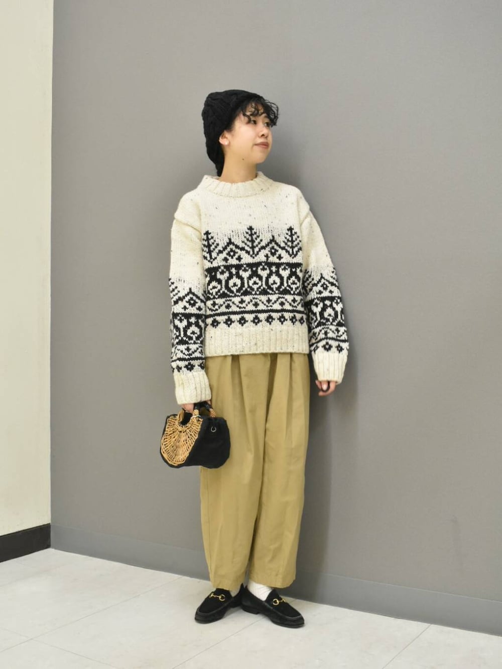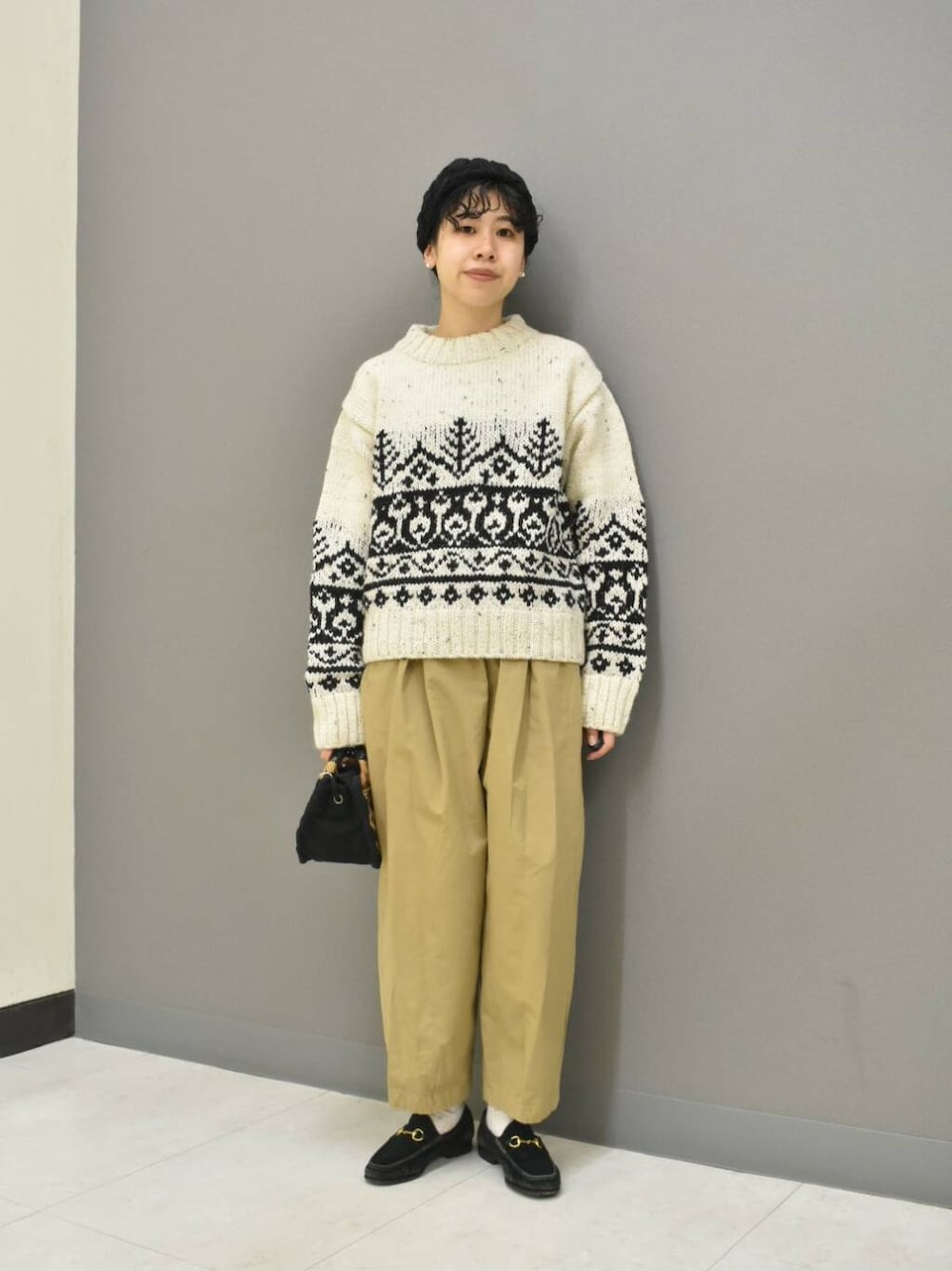 新入荷のペルーニットからマニッシュなスタイリングを組んでみました。
