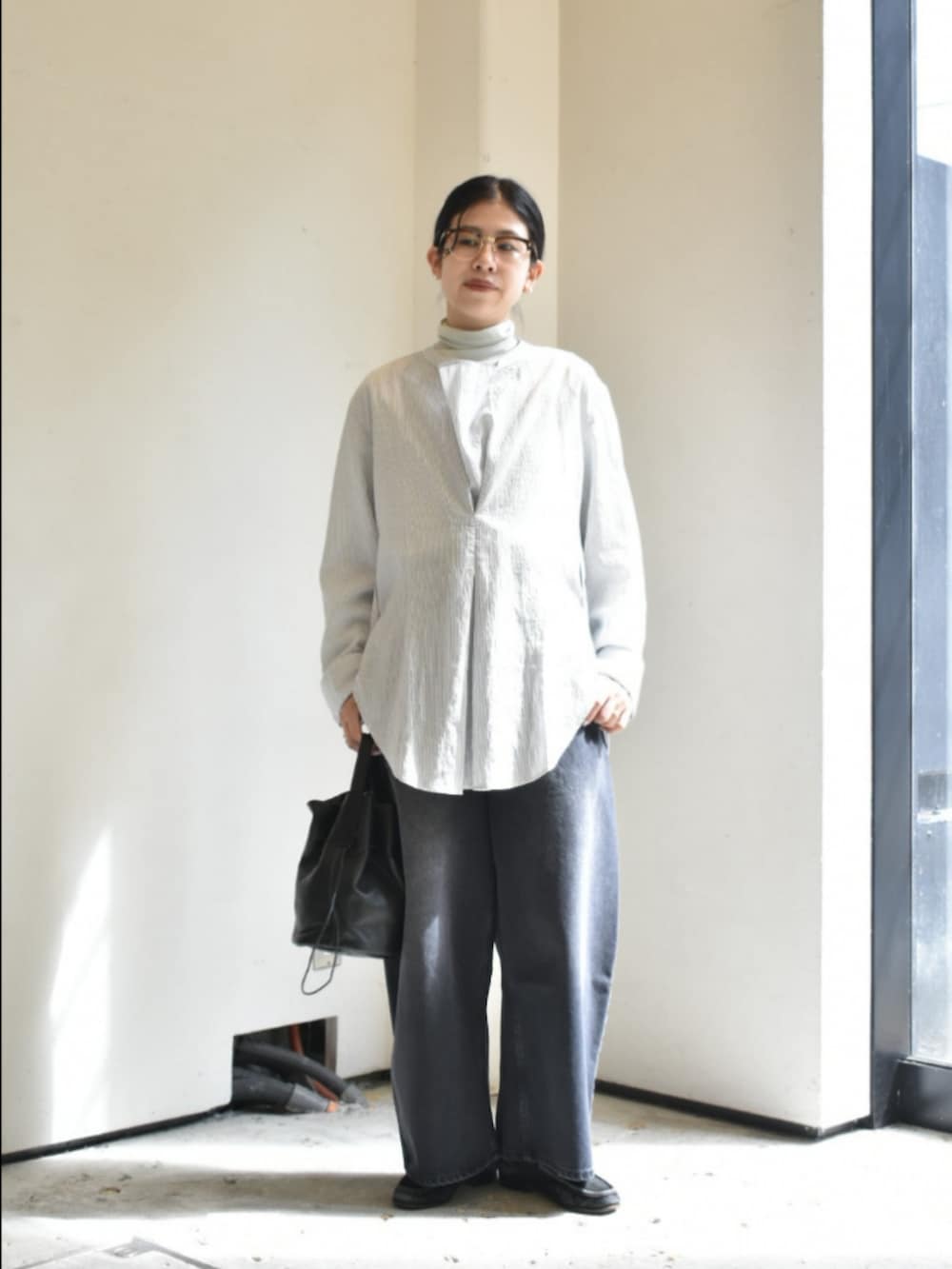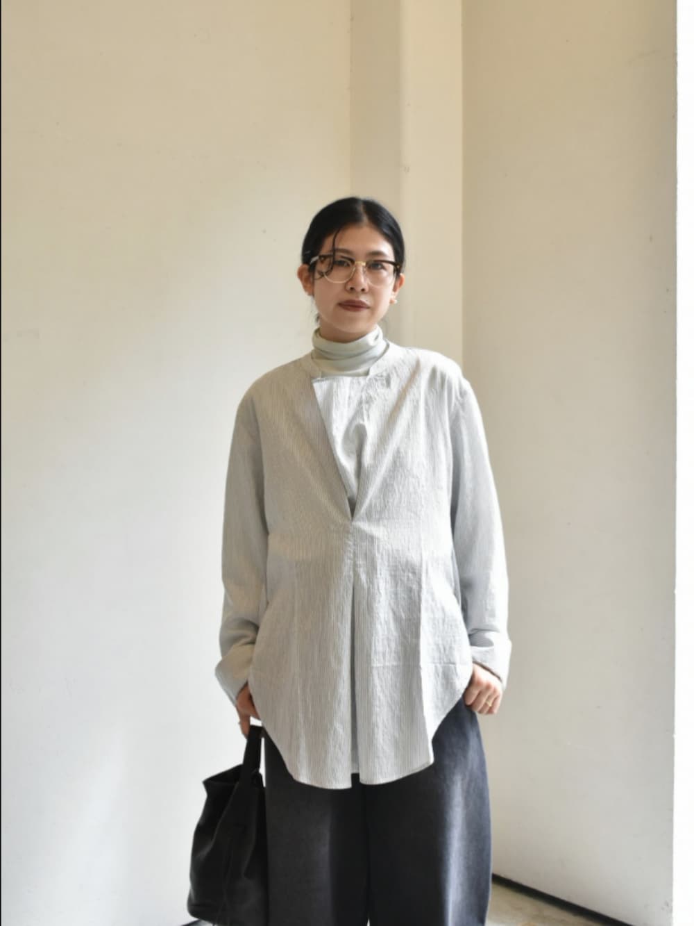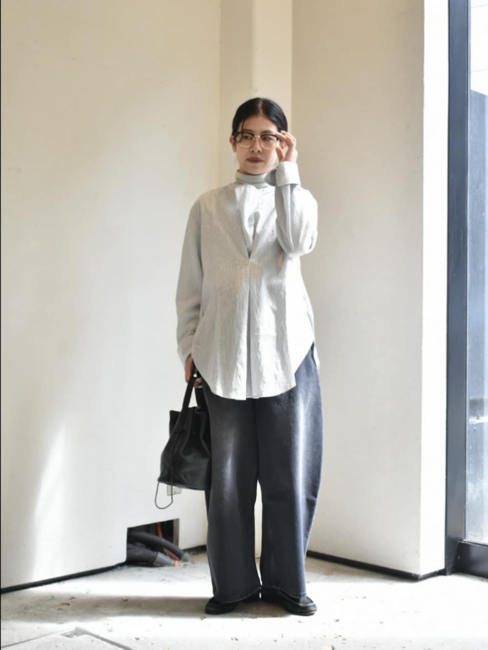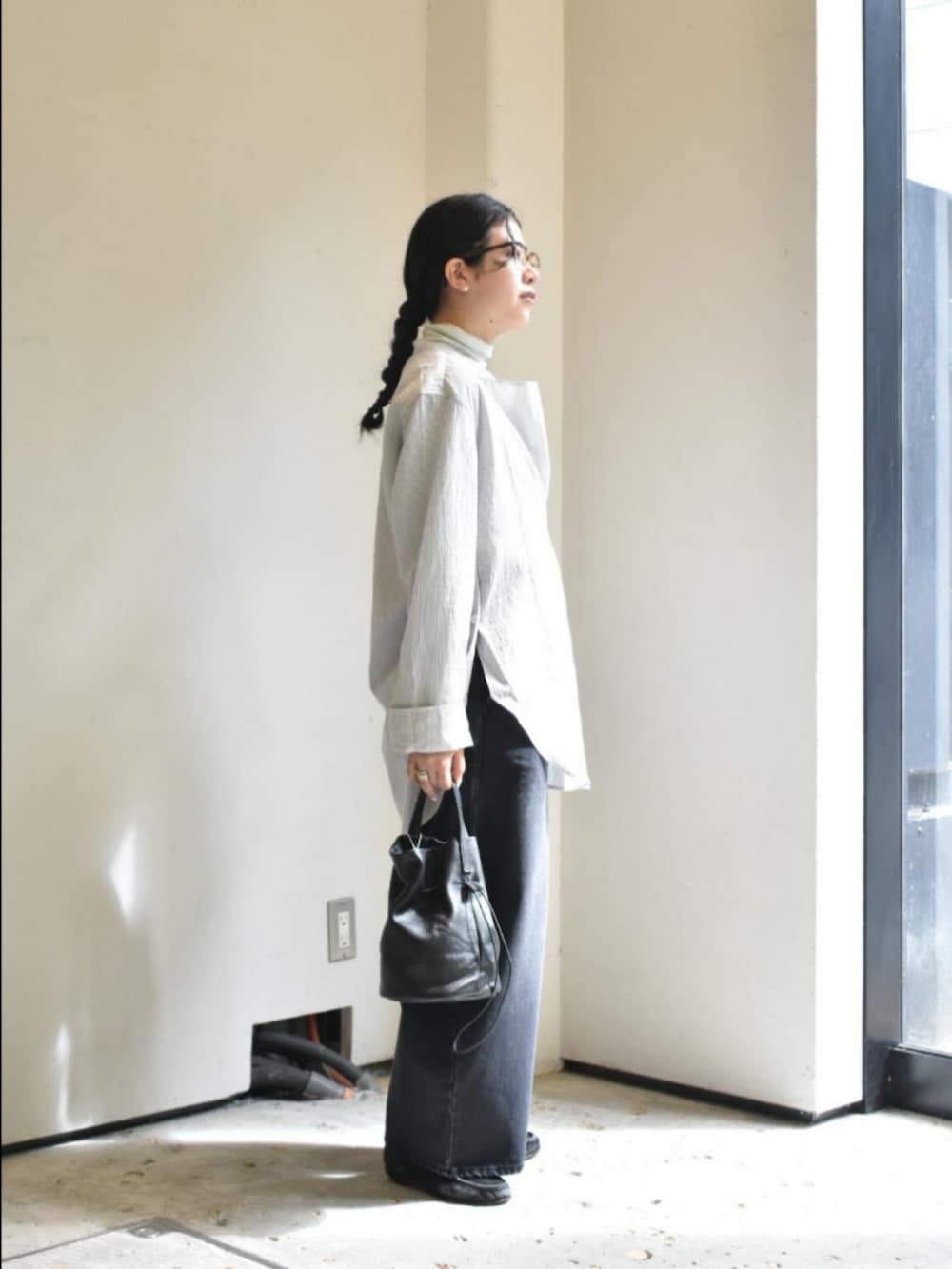 studio nicholsonのシャツが入荷したので、リラックス感とモード感が両立するスタイルにしてみました。