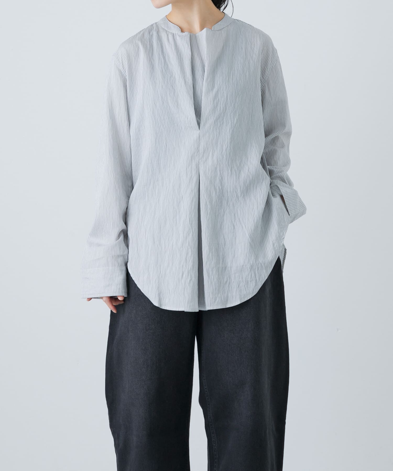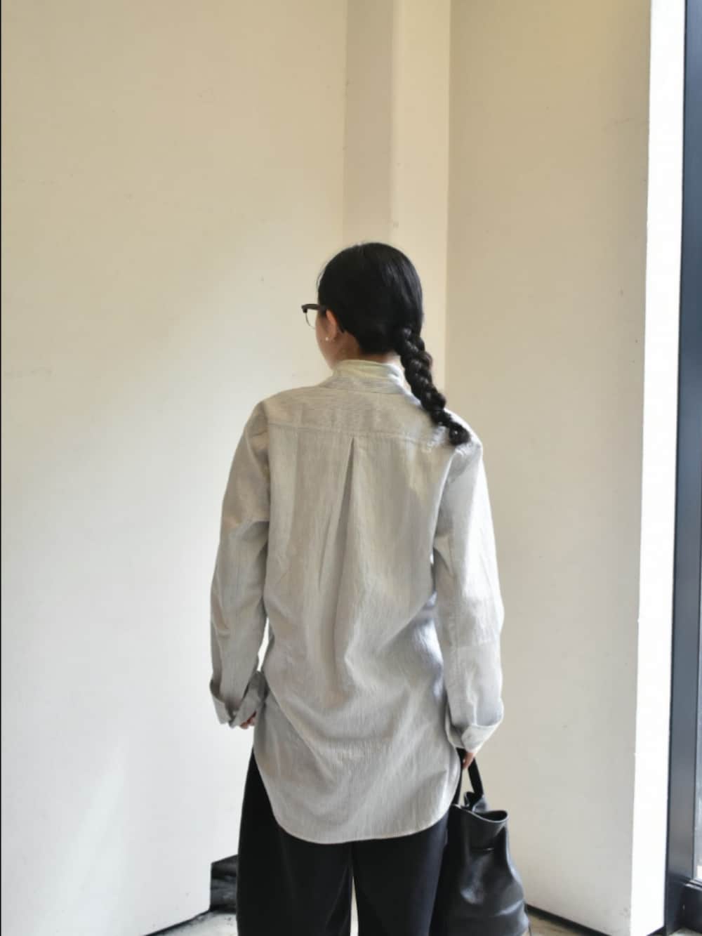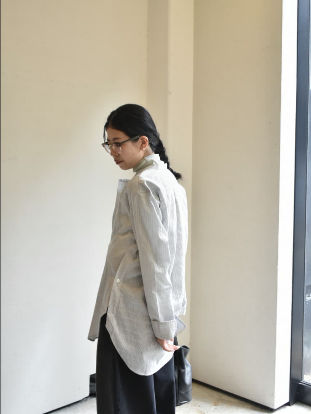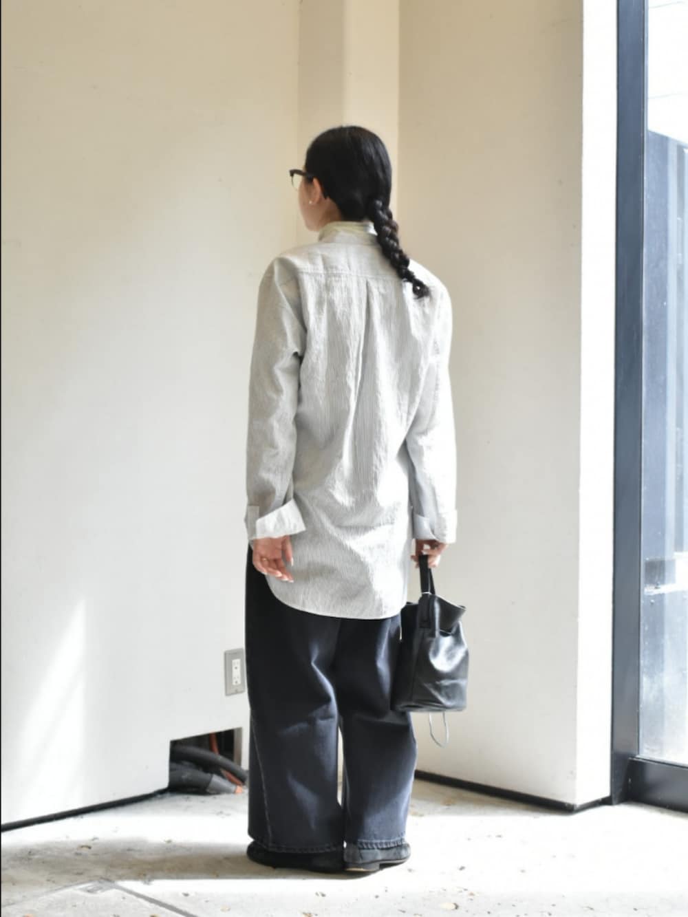 studio nicholsonのシャツが入荷したので、リラックス感とモード感が両立するスタイルにしてみました。