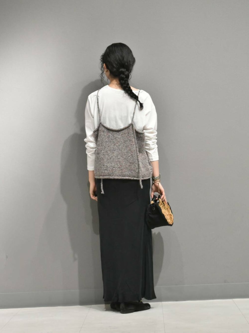 肩紐の長さを調節して、インナーやボトムスの合わせも問わずにお使いして頂けます。