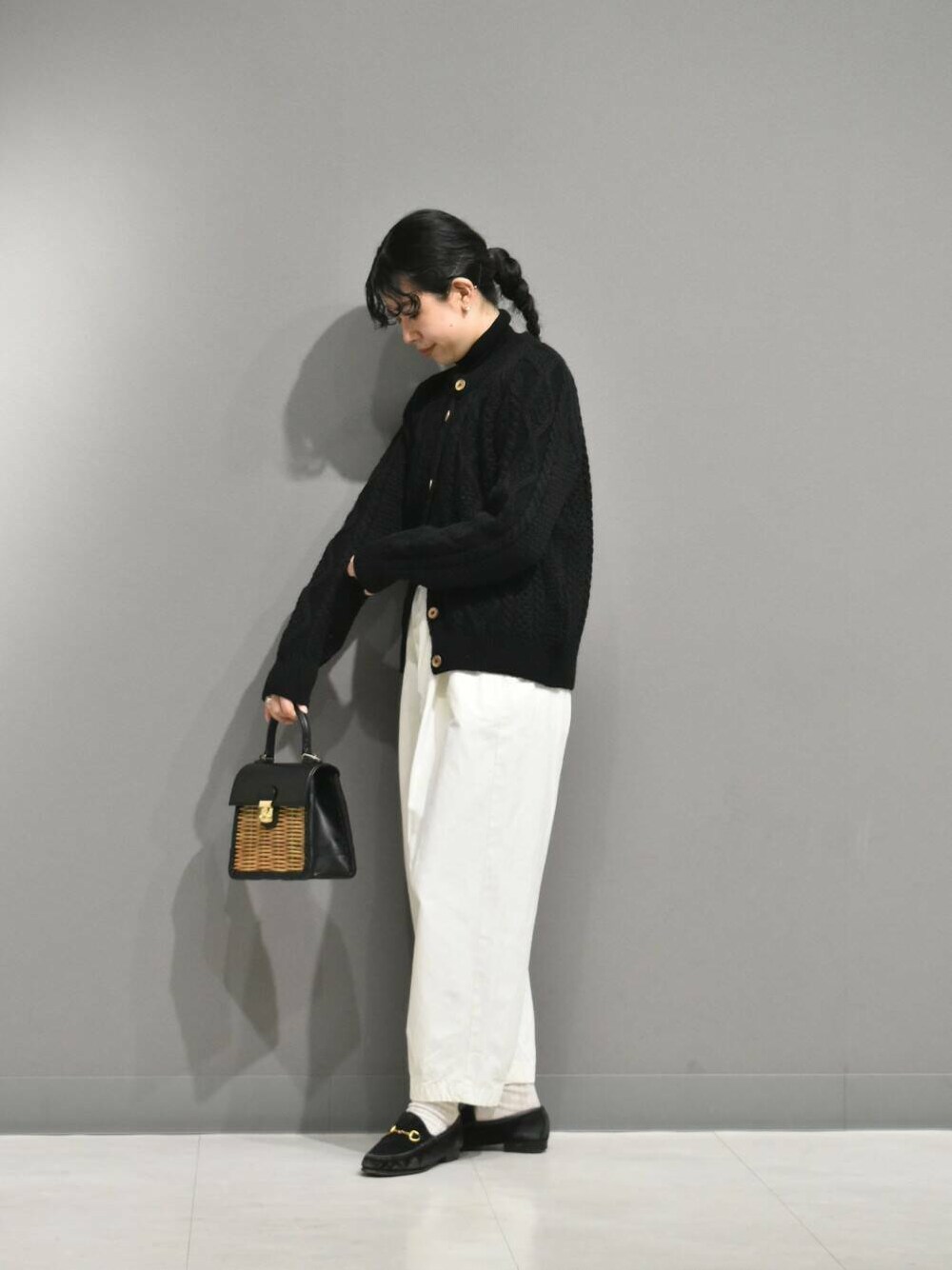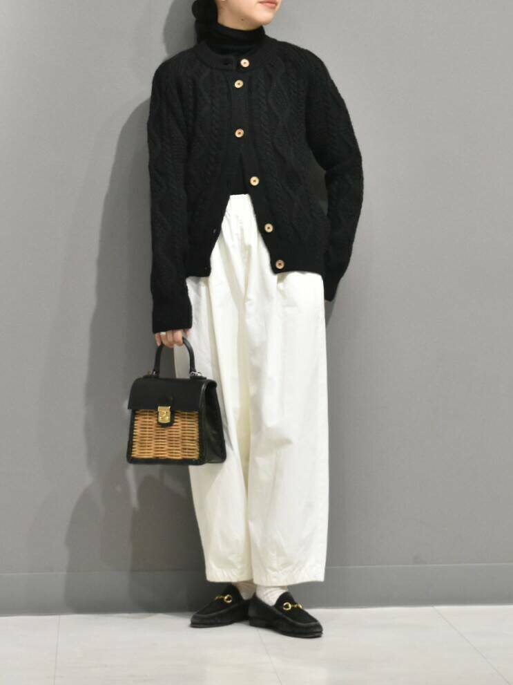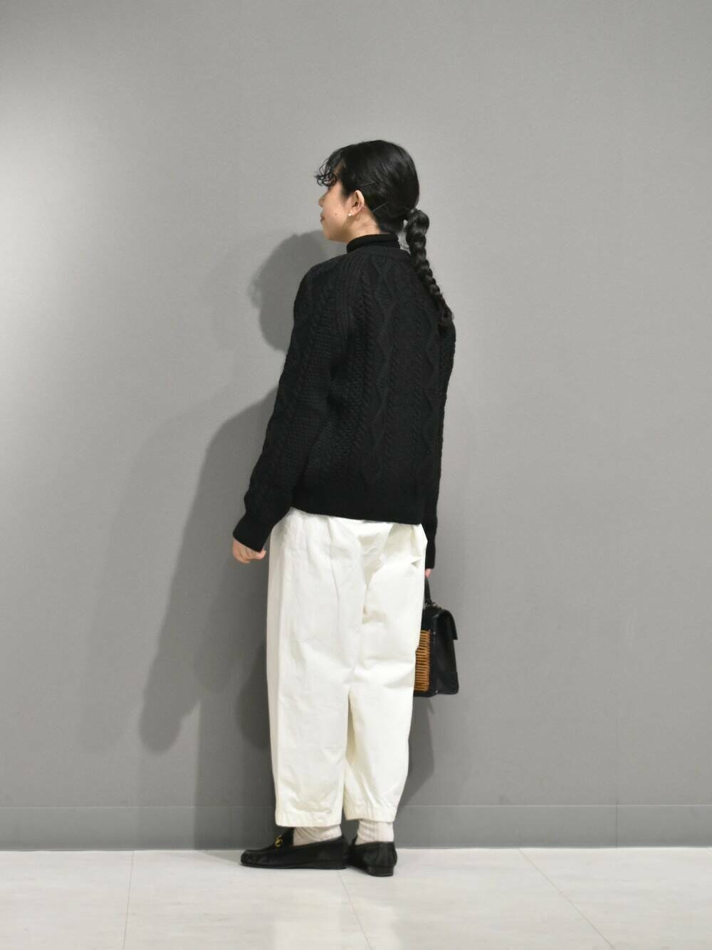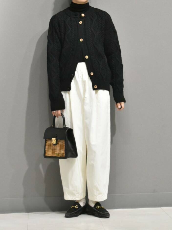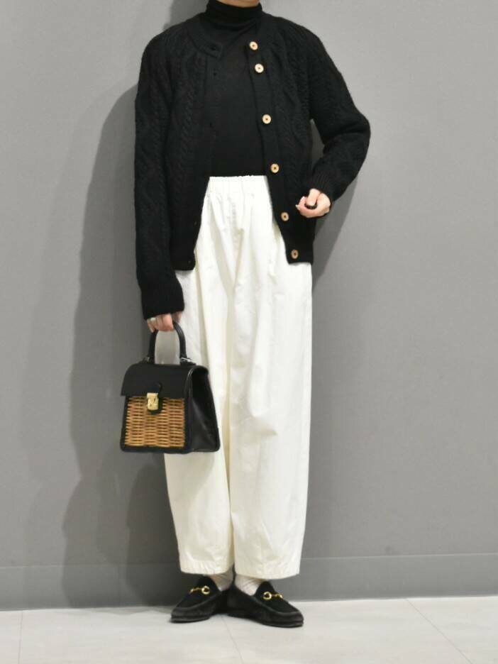 合わせた再入荷のクロップドパンツは、かぐれでも定番のアイテムでハリ感のある綿素材とシルエットが下半身を綺麗に見せてくれます。