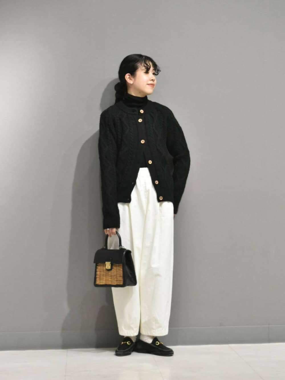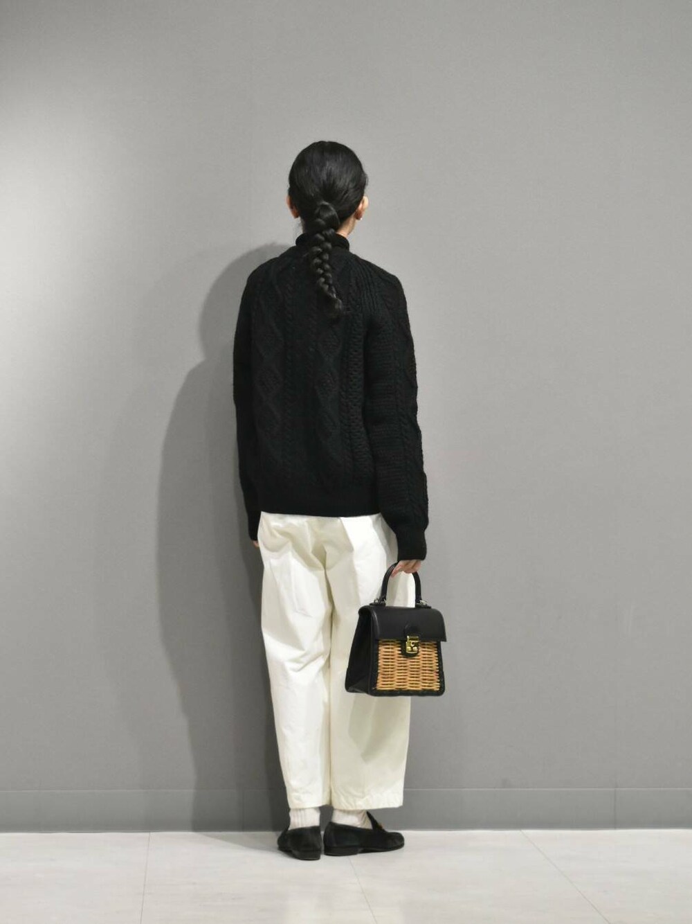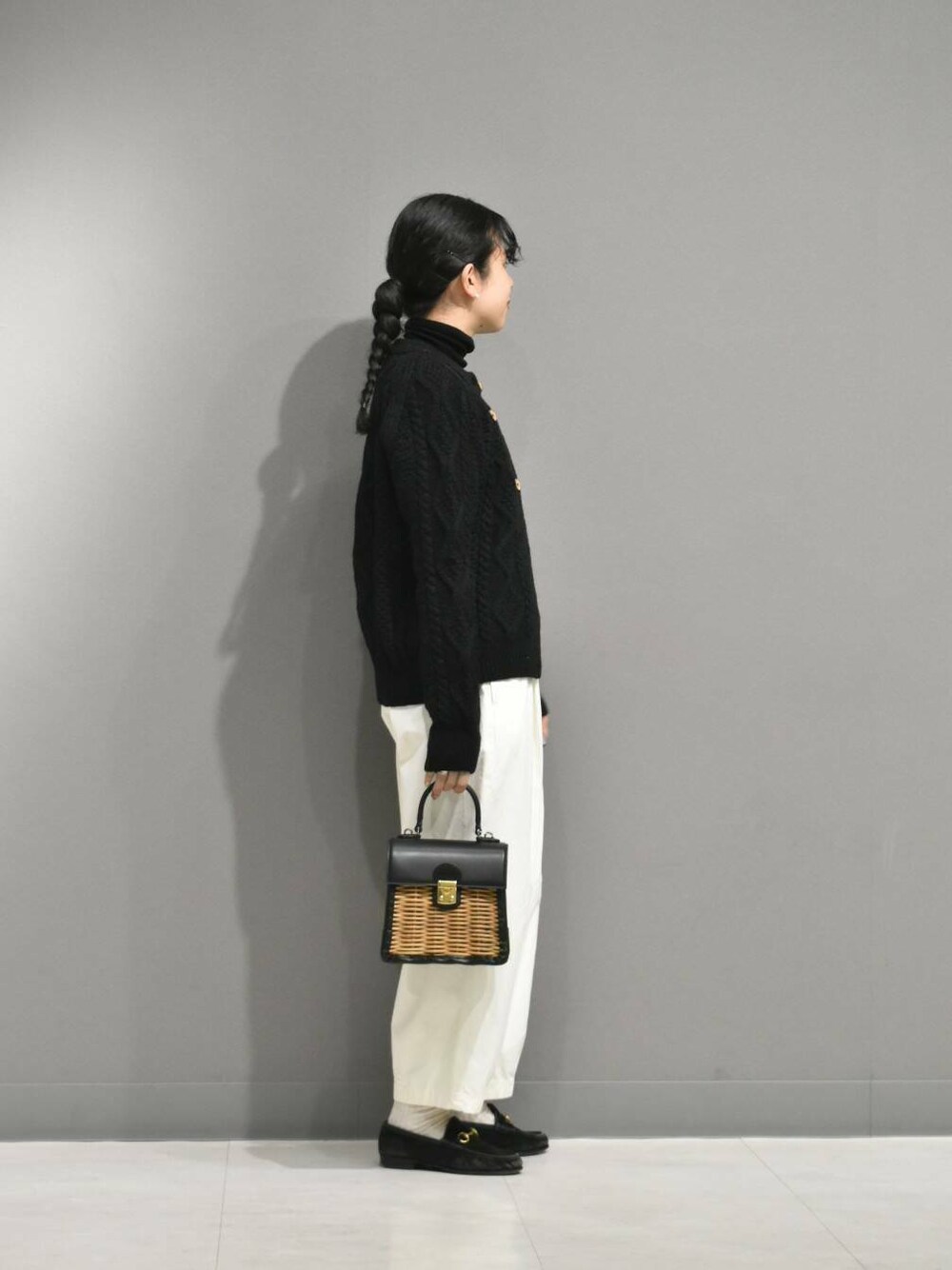 合わせた再入荷のクロップドパンツは、かぐれでも定番のアイテムでハリ感のある綿素材とシルエットが下半身を綺麗に見せてくれます。
