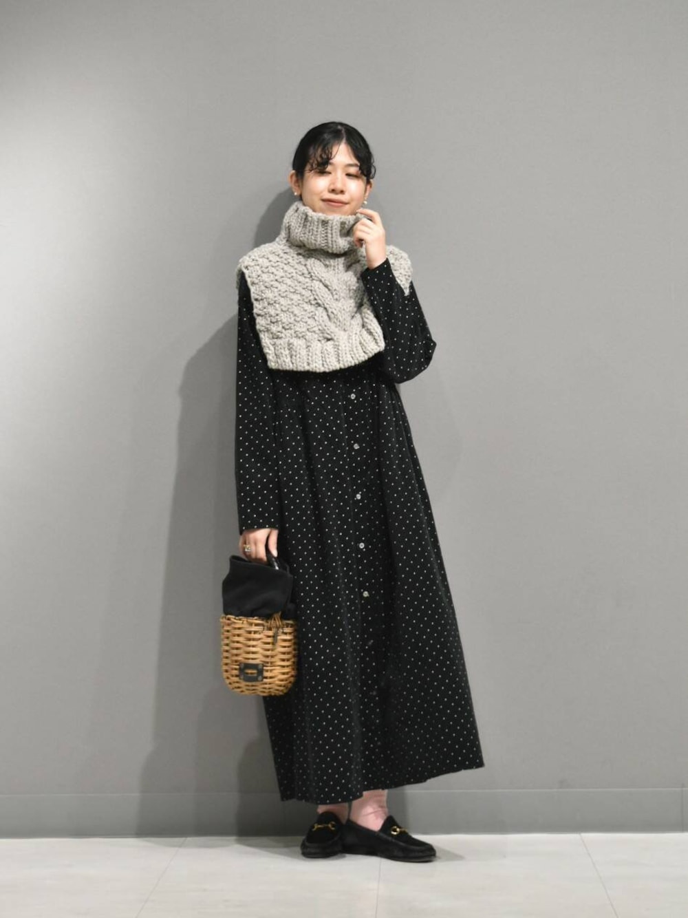 大人顔のドットワンピースが新入荷したのでスタイリングを組んでみました。