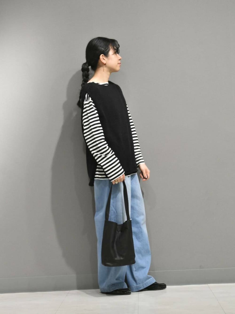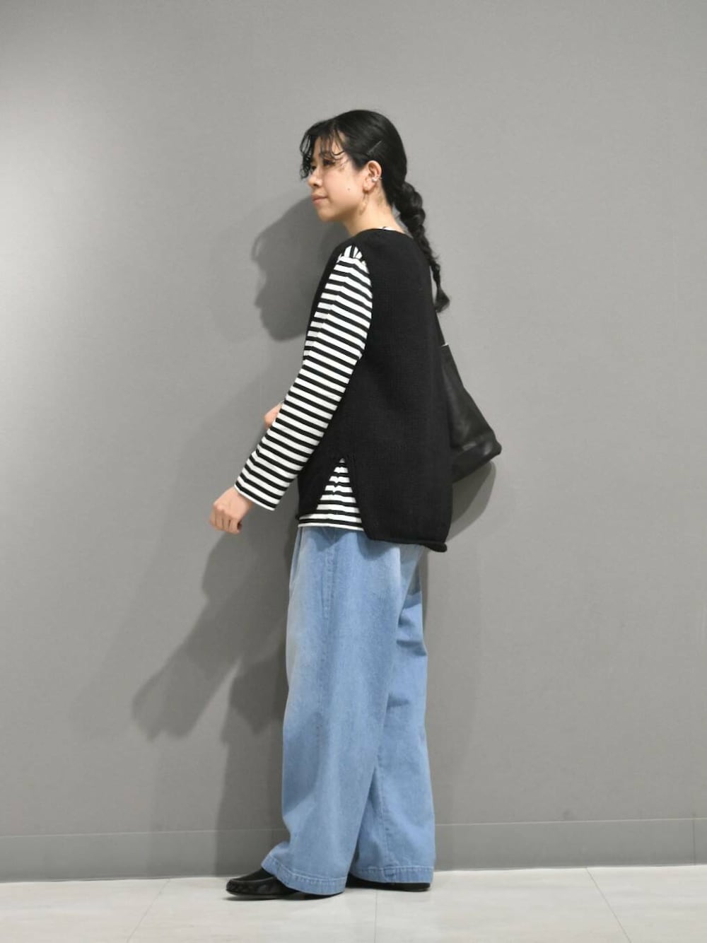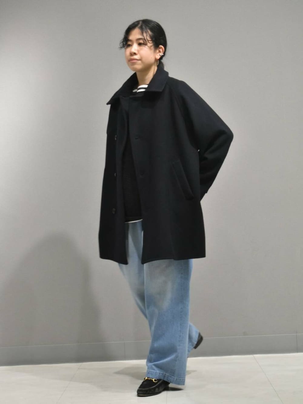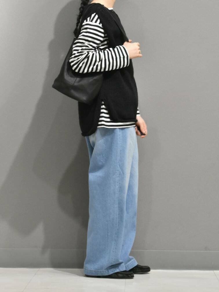 フェードデニムが再入荷したので、普段よりカジュアルなスタイリングを組んでみました。