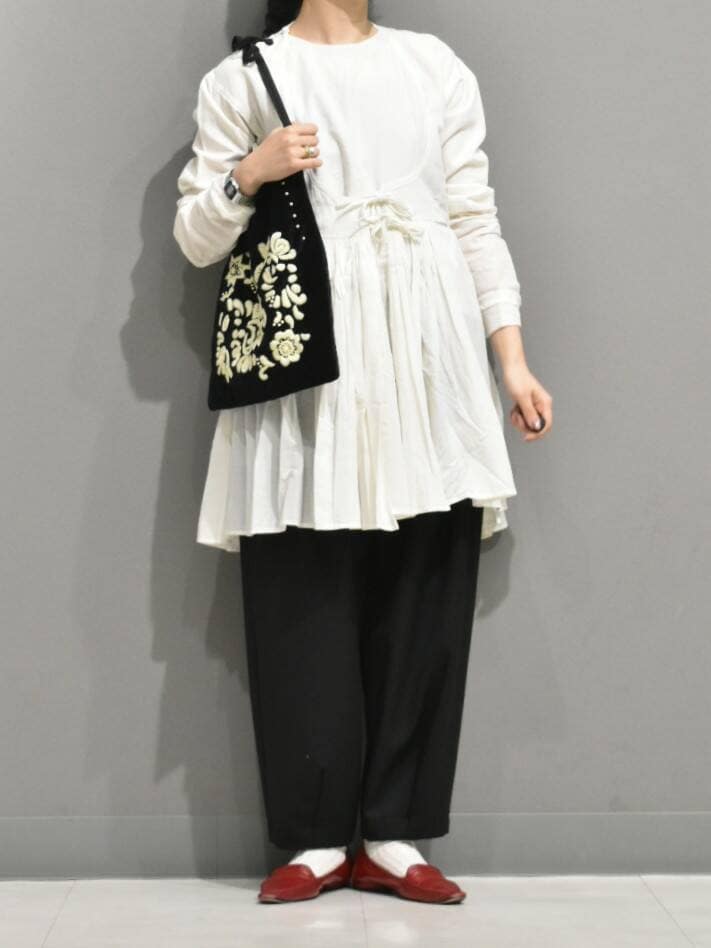 1枚で様になるブラウスはシンプルなモノトーン合わせがお勧めです◎