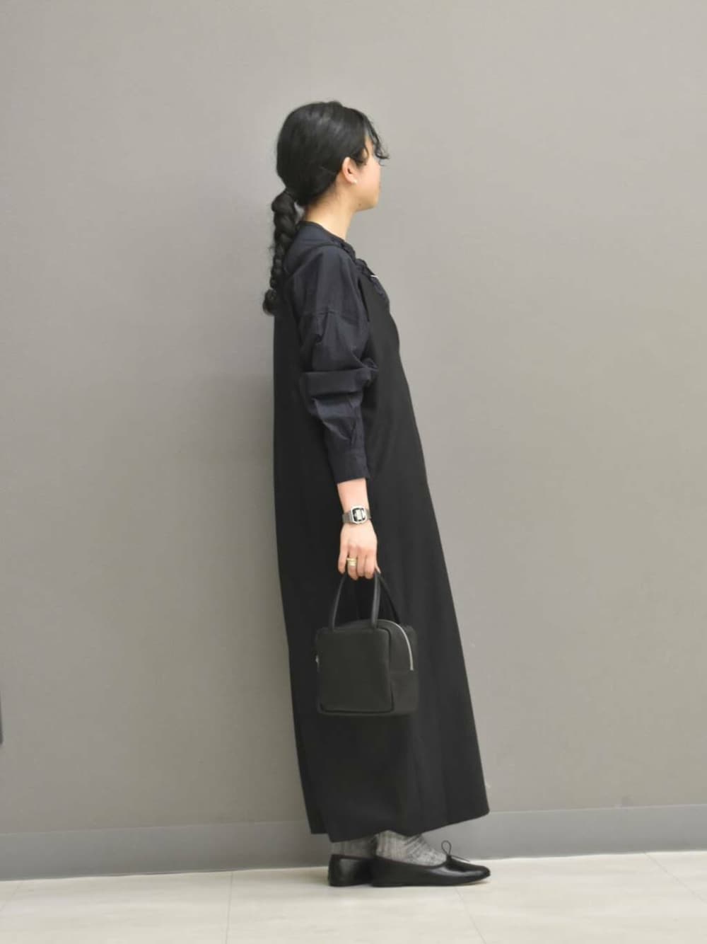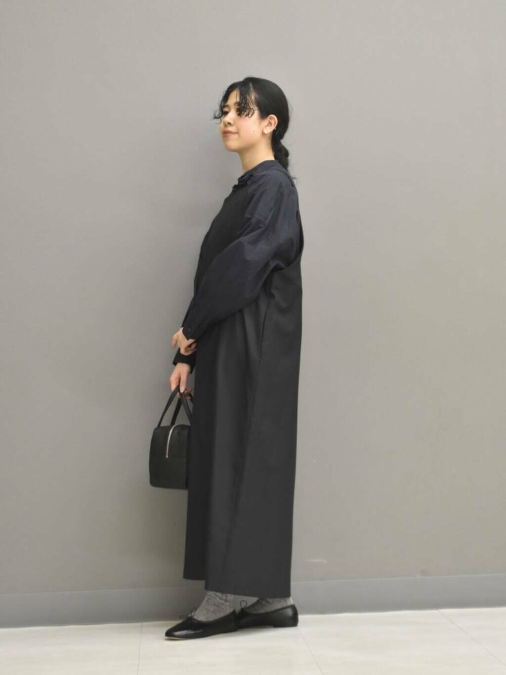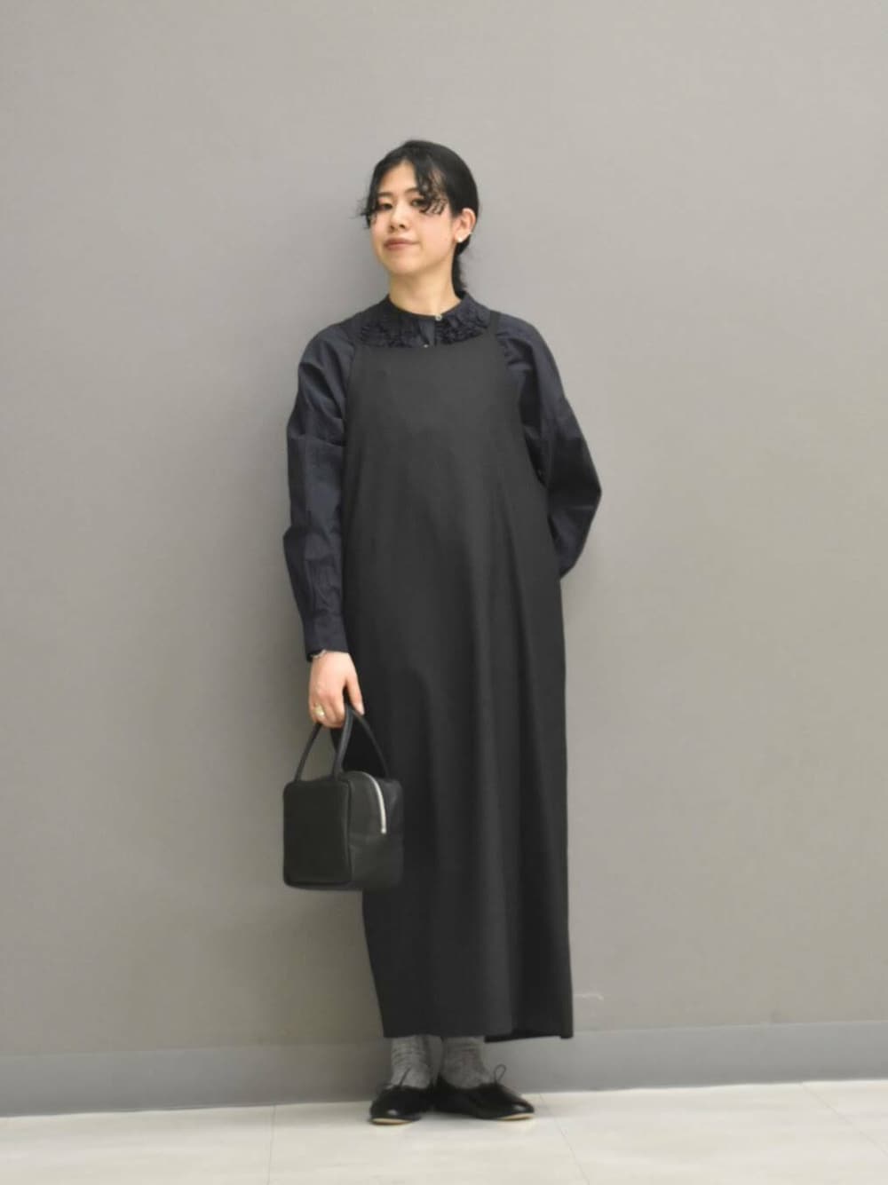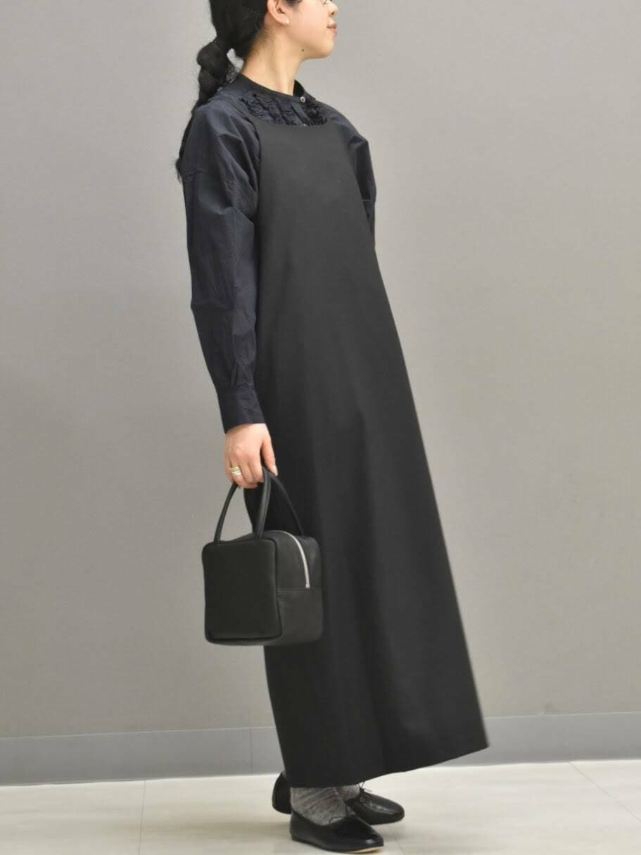 ワンピースは落ち感がある素材感が落ち着いた印象です。