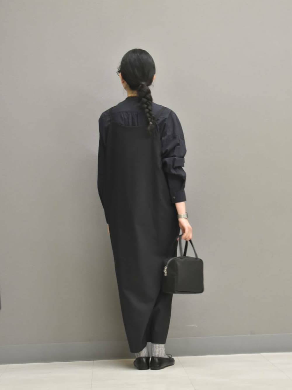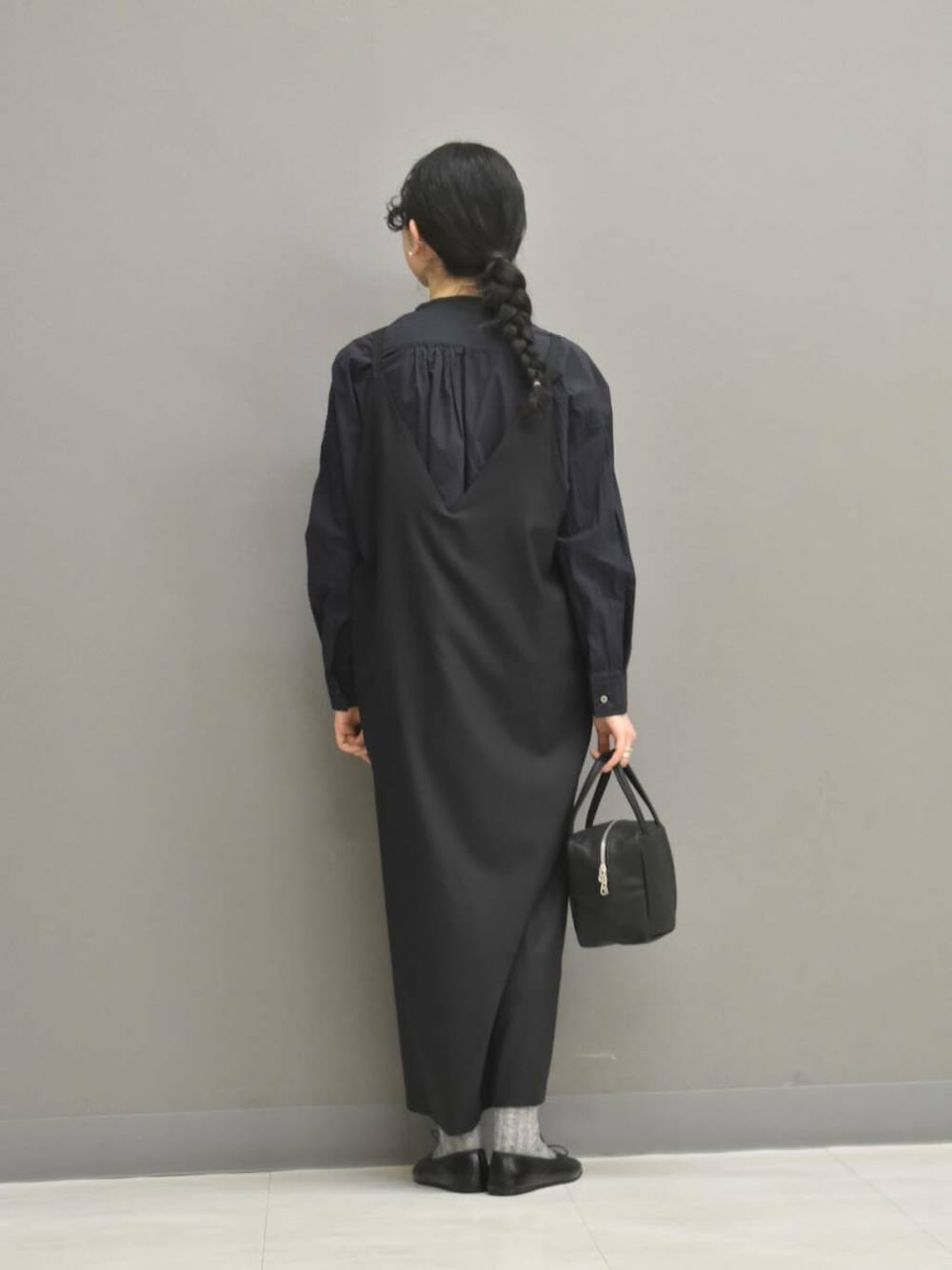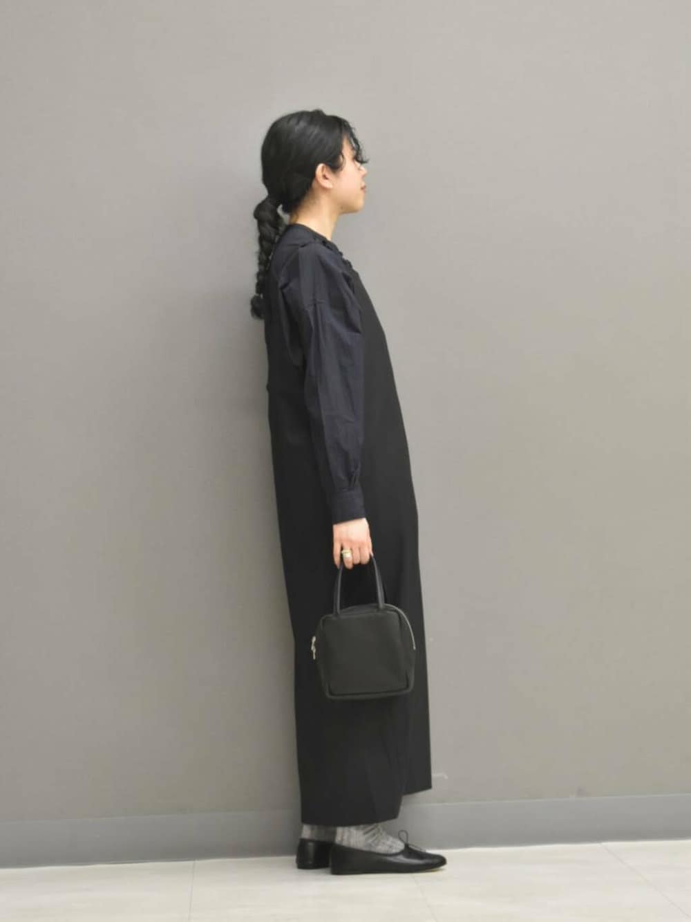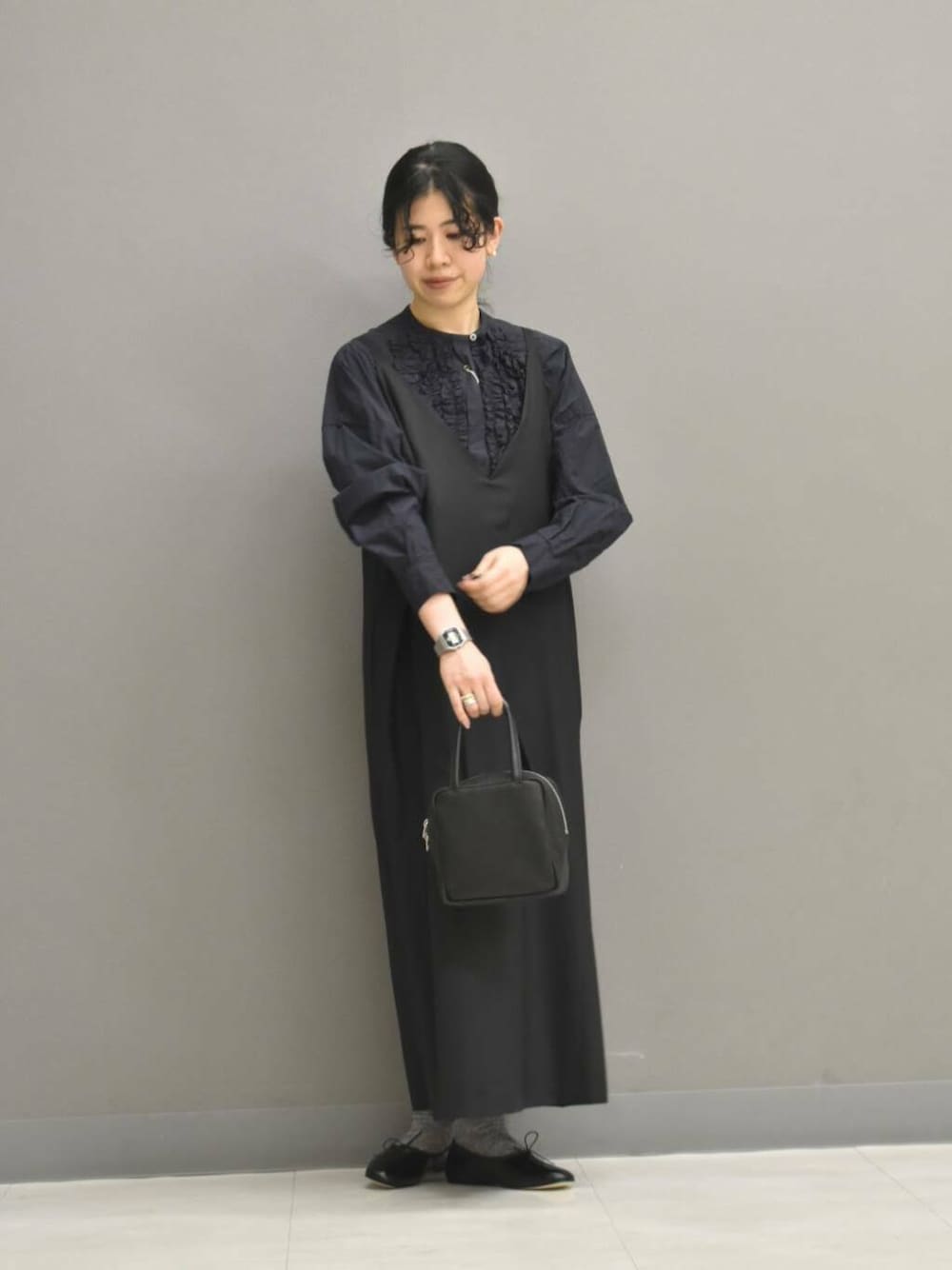ワンピースは落ち感がある素材感が落ち着いた印象です。