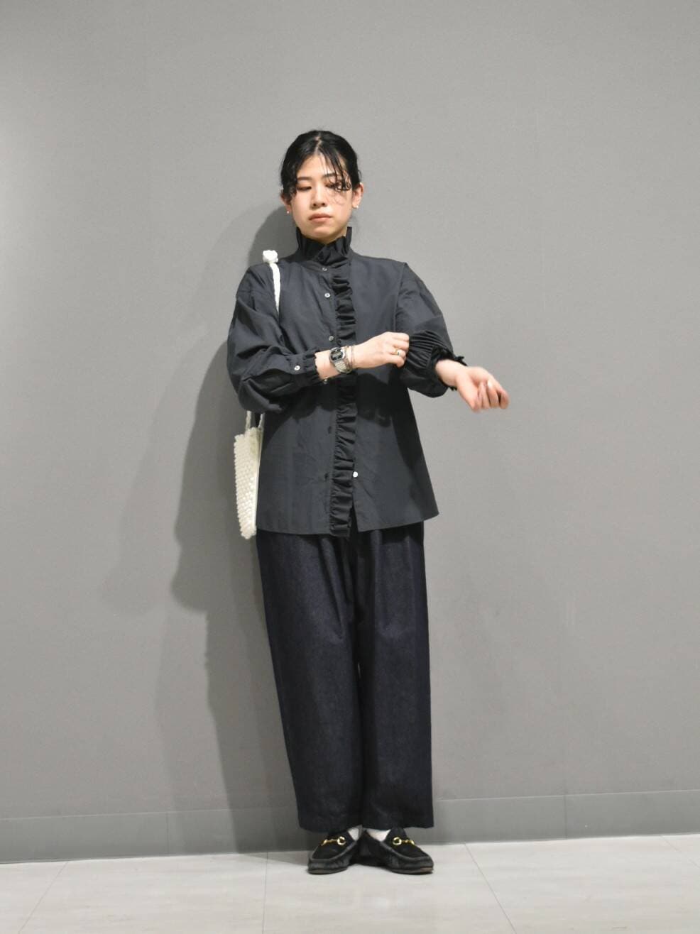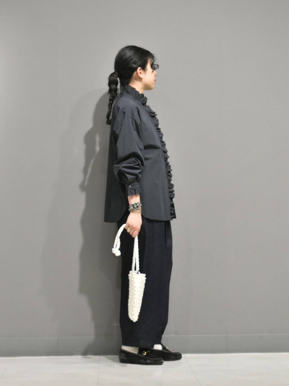 ということで今回は入荷日に耐えきれず購入したフリルブラウスのスタイリングをご紹介いたします。
