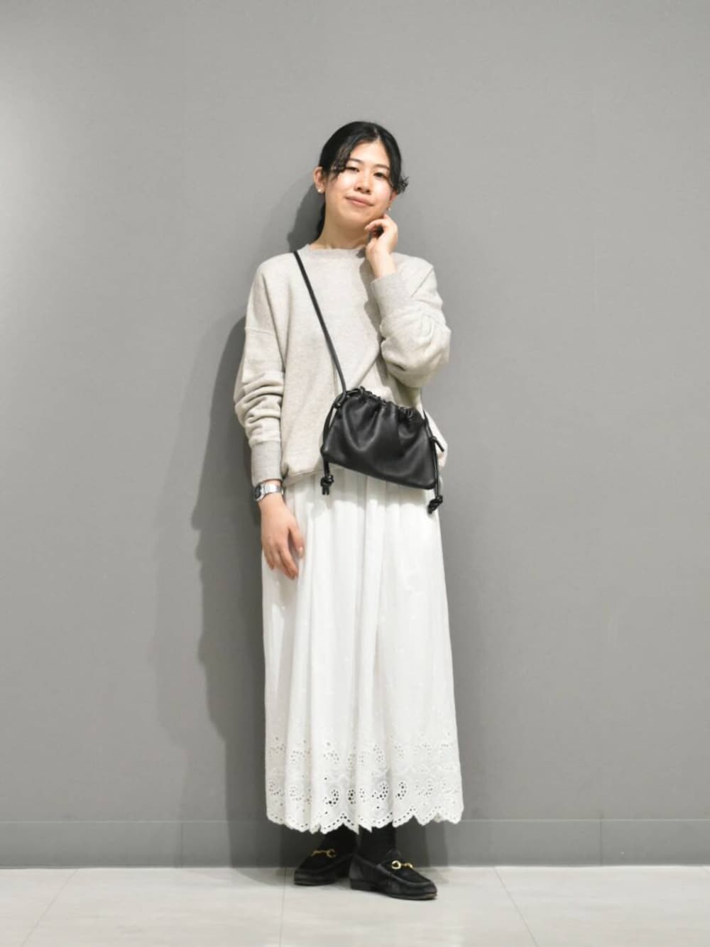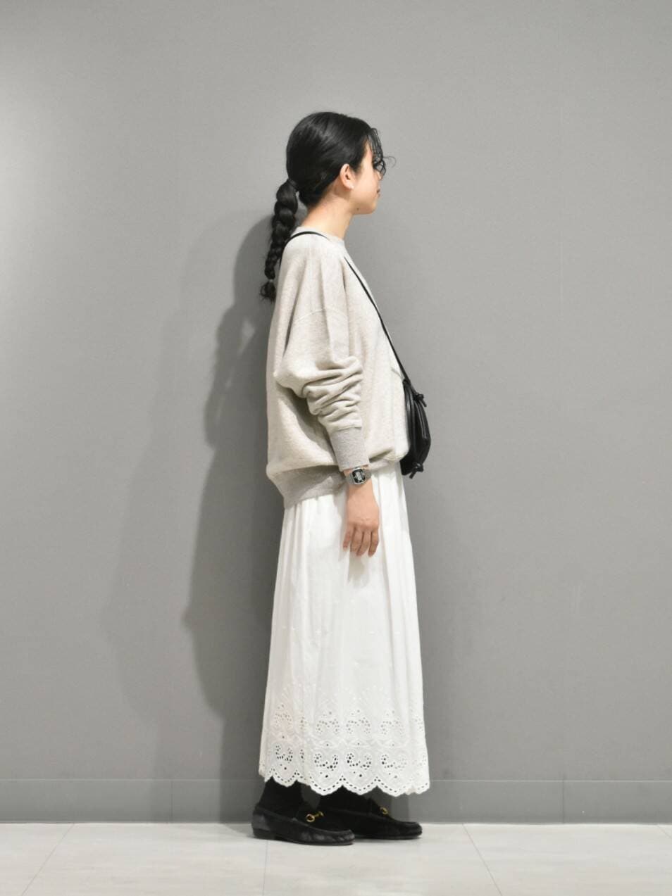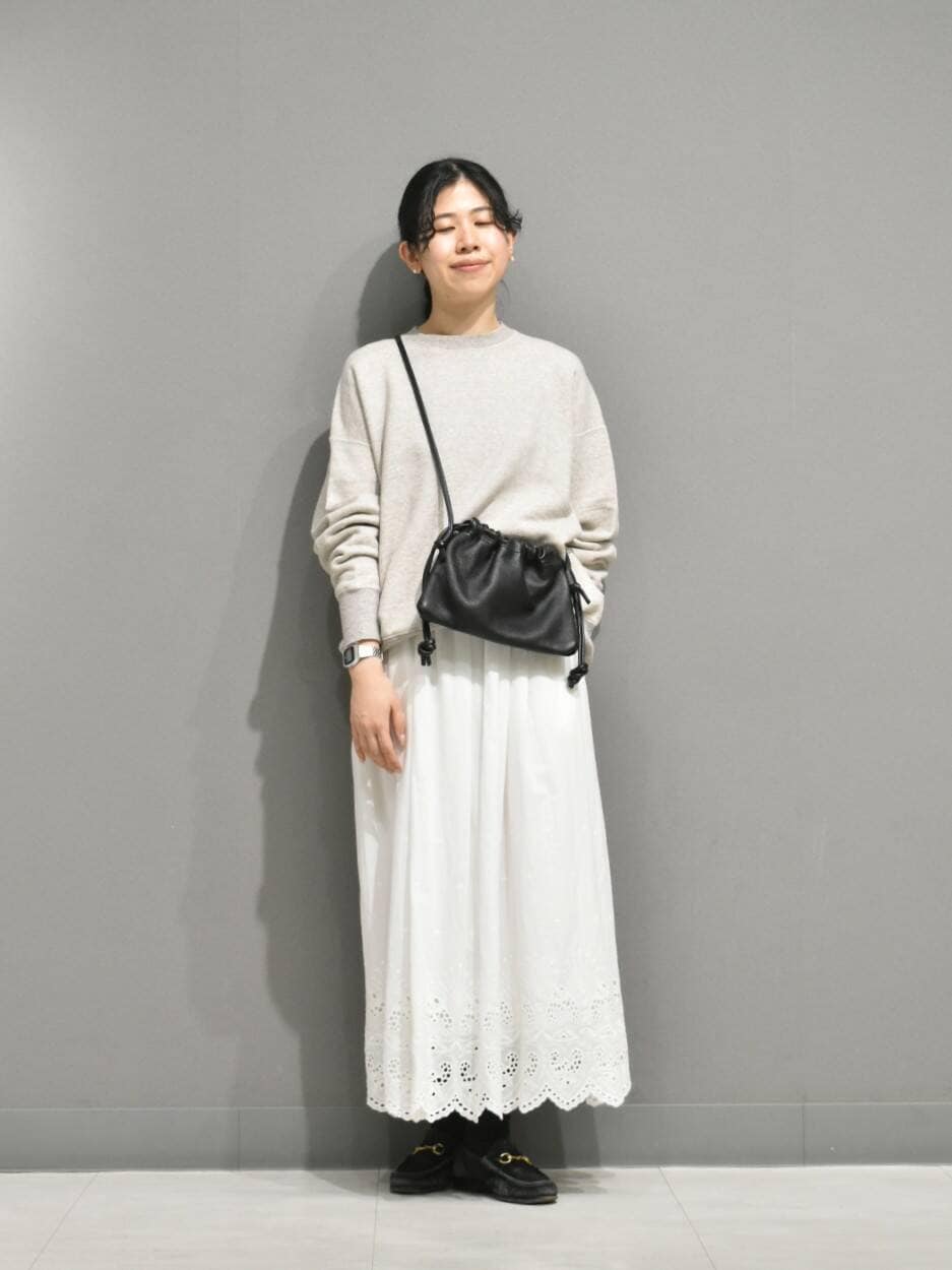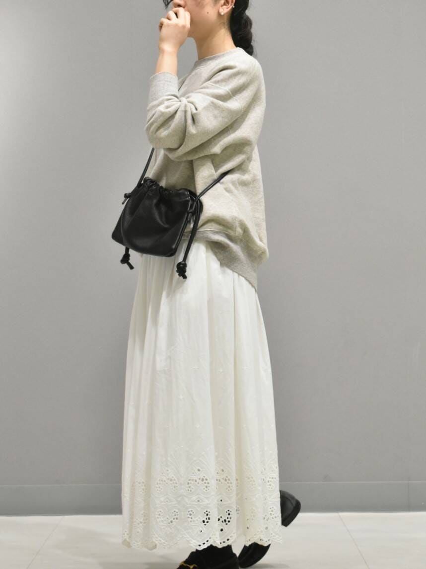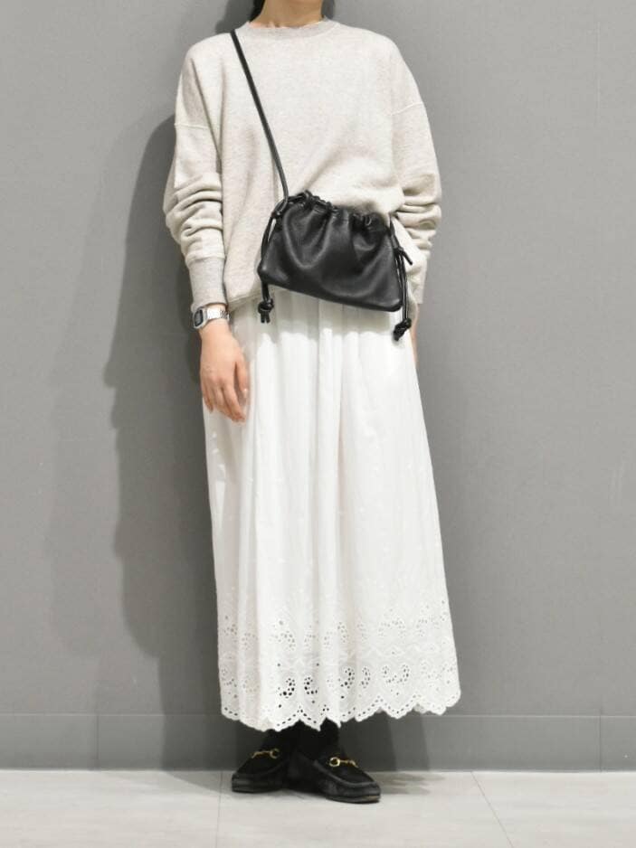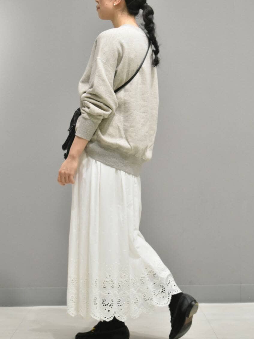 柔らかくてゆとりのある大人顔スウェットと、女性らしいレーススカートは毎年合わせたい鉄板スタイル。