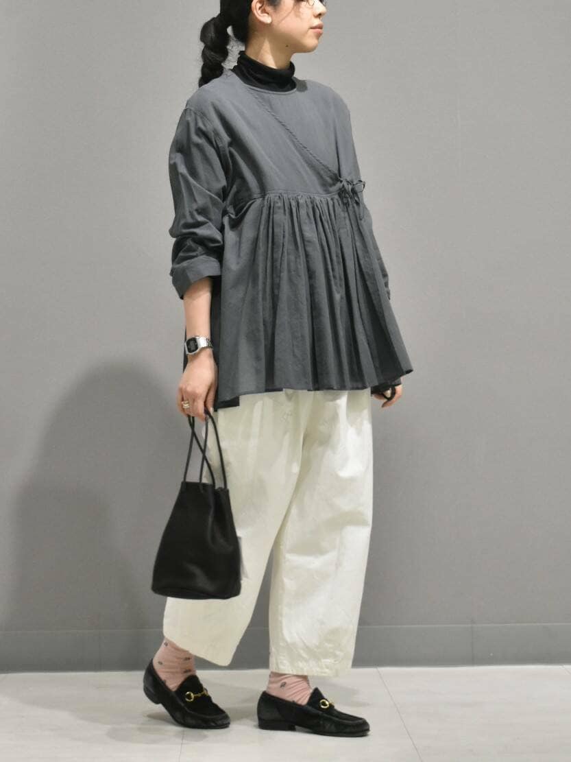 ボイル素材のトップスはとても軽やかでふわりと広がるシルエットが目を引きます。