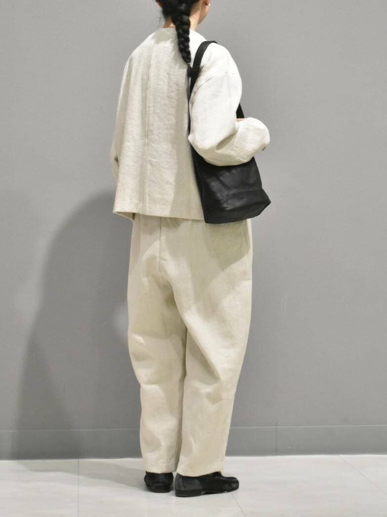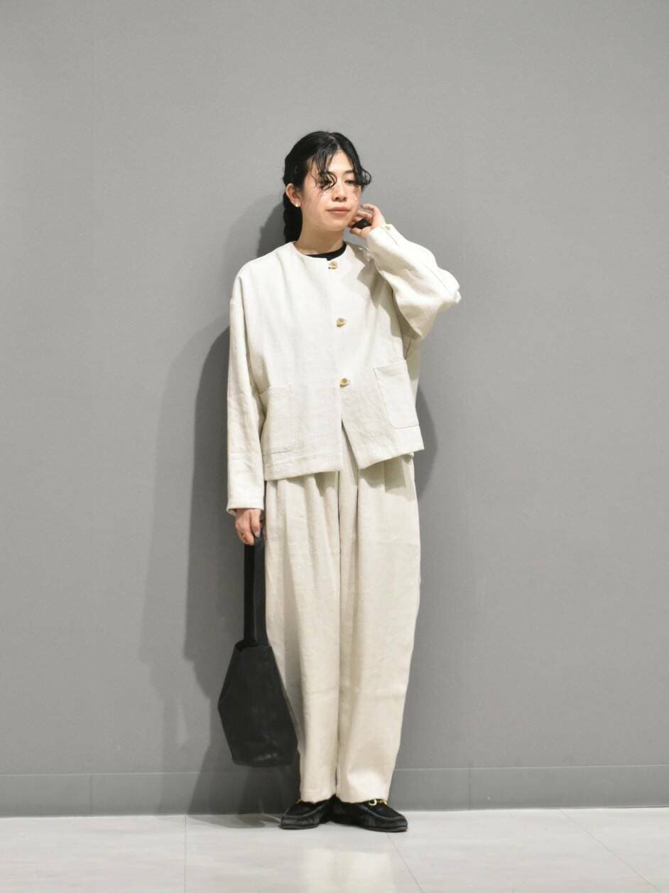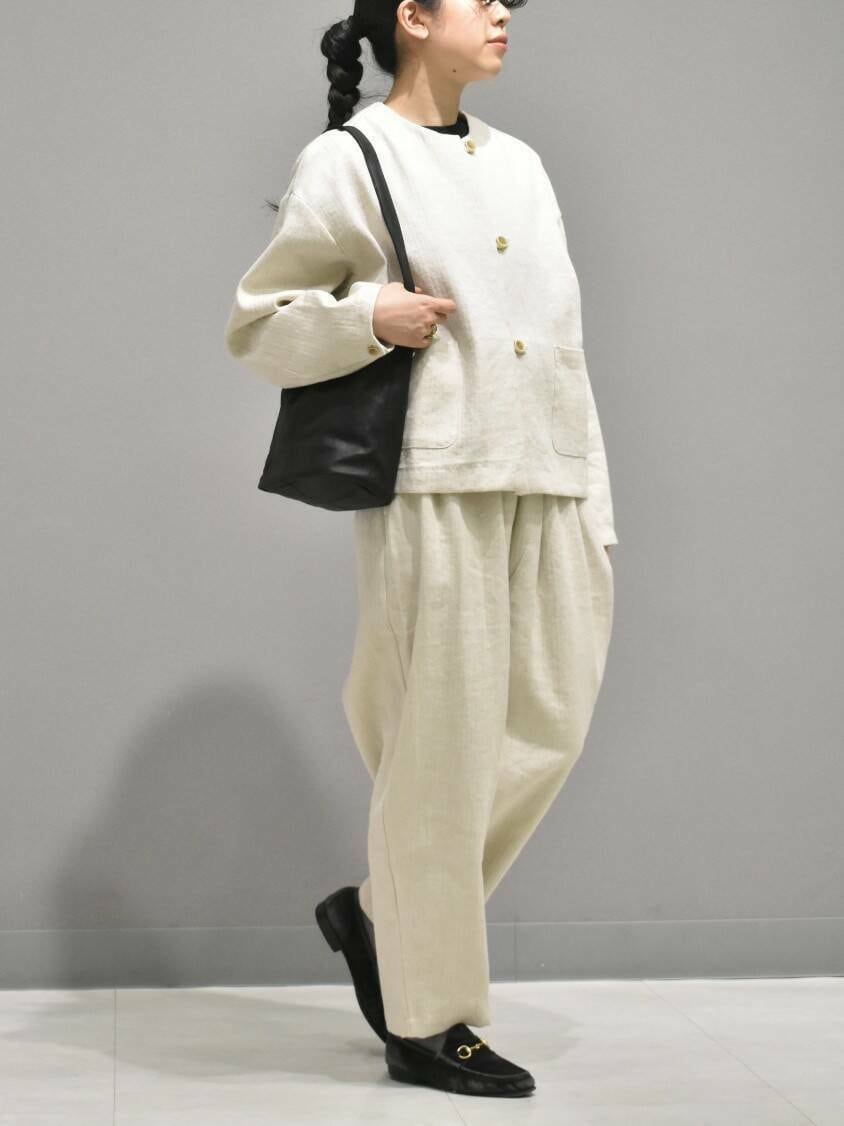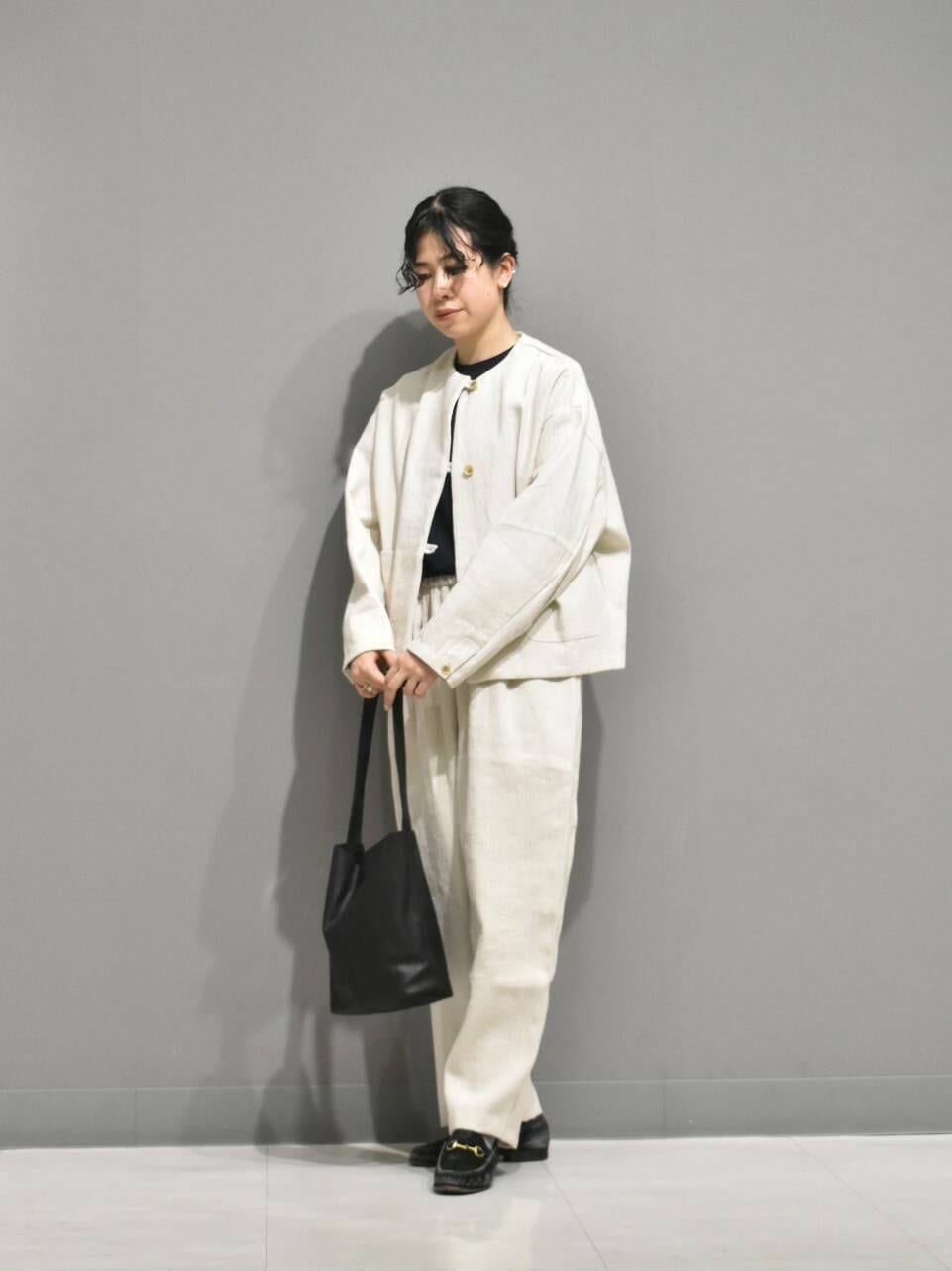 雰囲気抜群なリネンコットンのセットアップが新入荷したので、早速スタイリングを組んでみました。