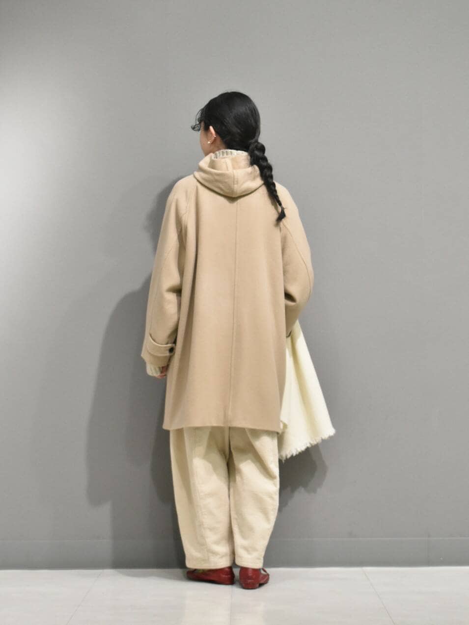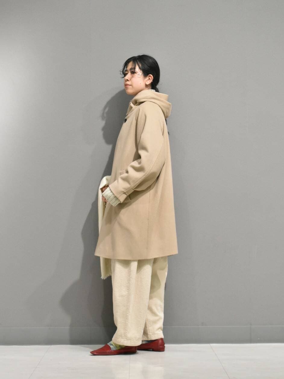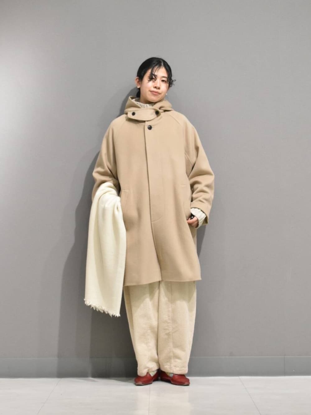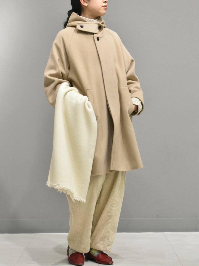 色味が目を引くフードコートから、ナチュラルなワントーンのスタイリングを組んでみました。