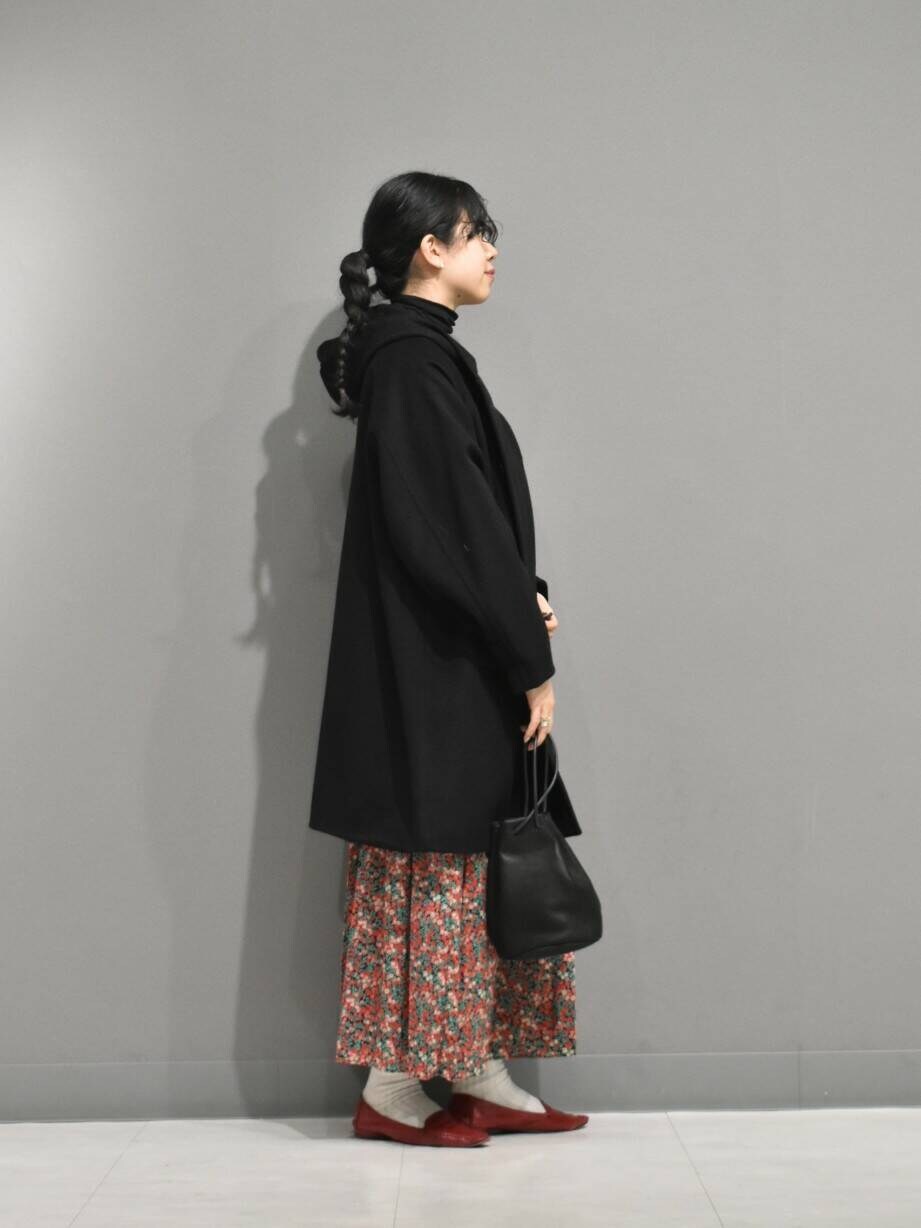 スカートはお店でも人気な定番のシルエットで、ウエストにタックが入っているので広がりすぎずすっきりした印象に◎
