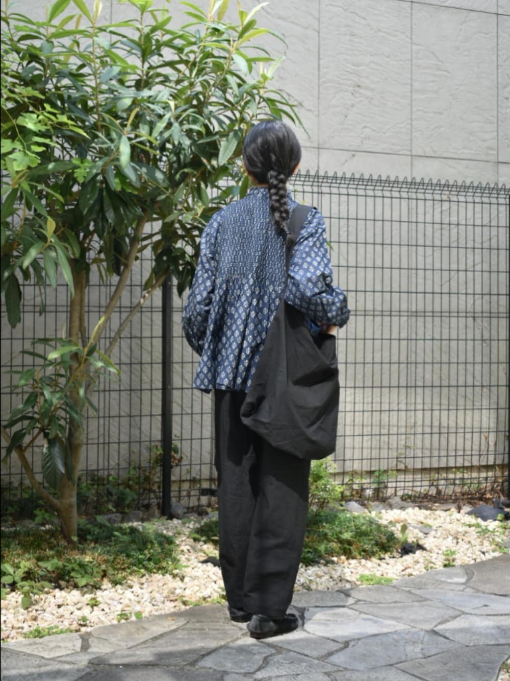 かぐれでも定番の遠州染めのアイテム。ゆとりのあるテーパードデザインが格好良く、合わせるだけで熟れた印象に。色のムラ感や凹凸感がある表面感なので見た目ももちろん、お家でのケアも楽ちんです。