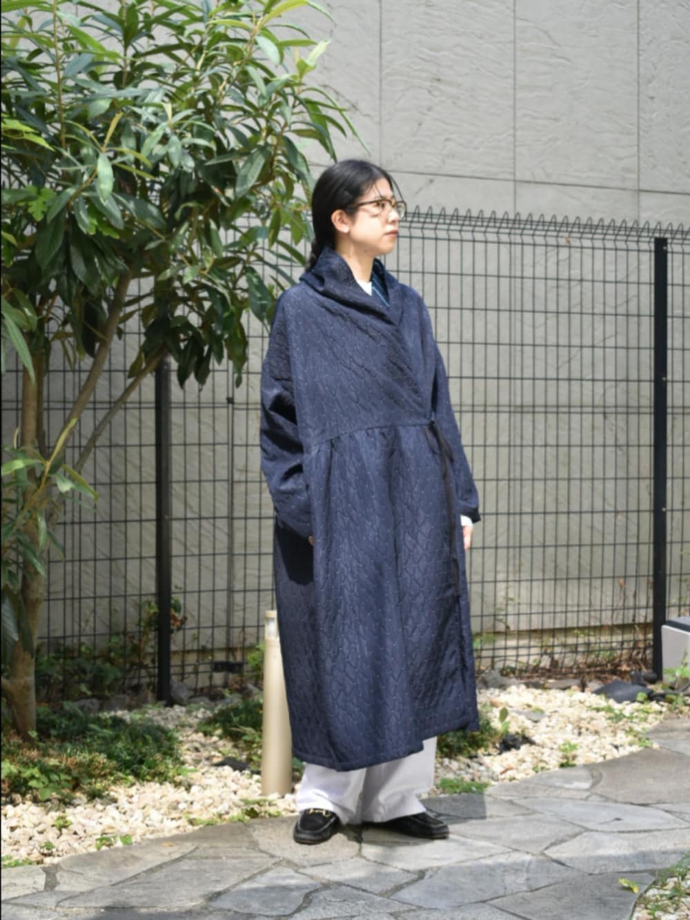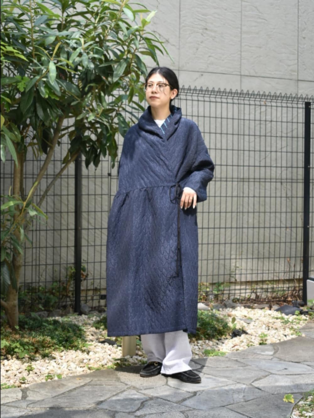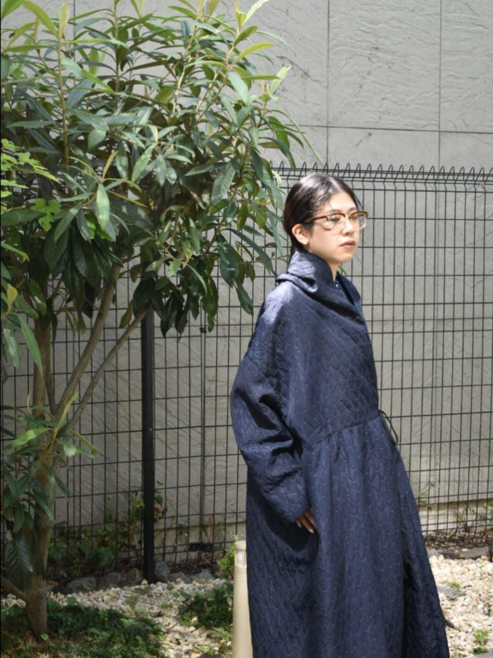 honneteの新作のアウターが入荷いたしました。さすがは元々生地メーカーなだけあり、とってもアイコニックな素材感が特長です。ぎゅっとウエストを留めてワンピースのように合わせるのがおすすめです◎