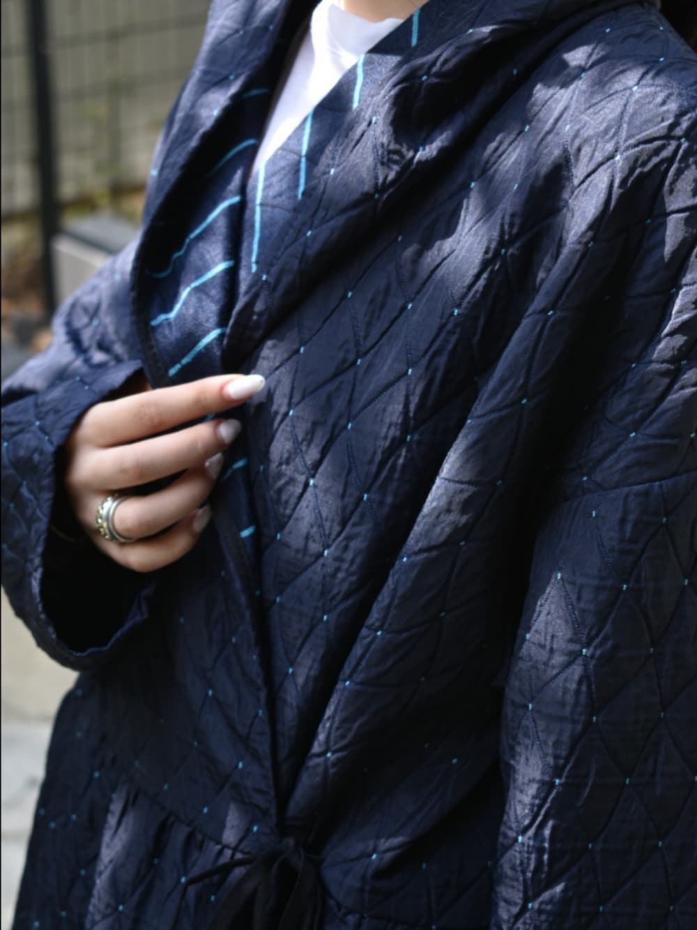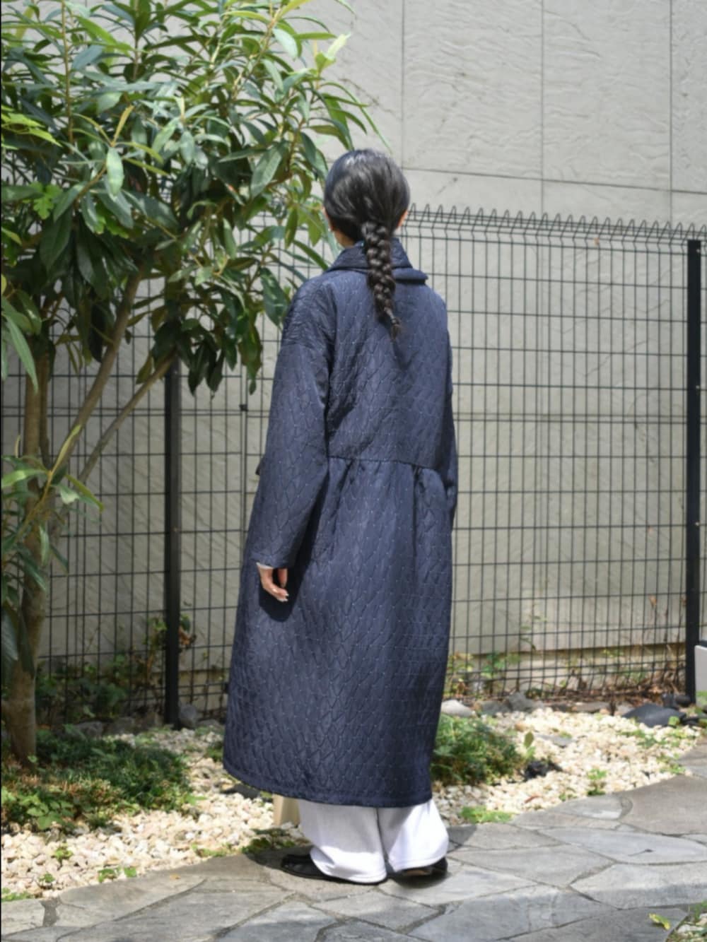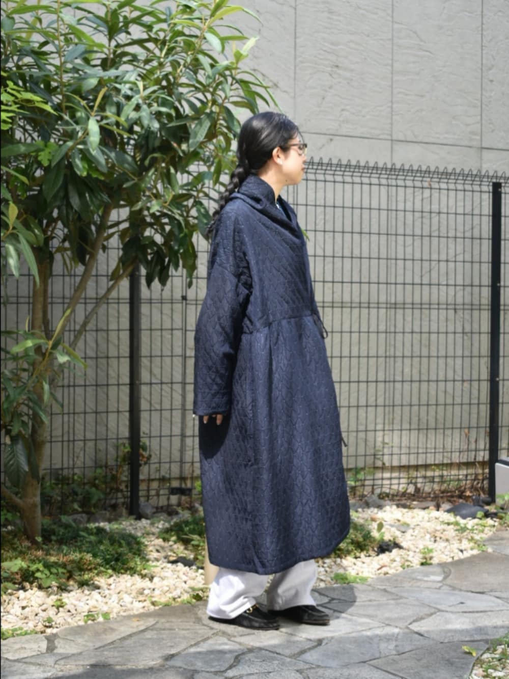 honneteの新作のアウターが入荷いたしました。さすがは元々生地メーカーなだけあり、とってもアイコニックな素材感が特長です。ぎゅっとウエストを留めてワンピースのように合わせるのがおすすめです◎