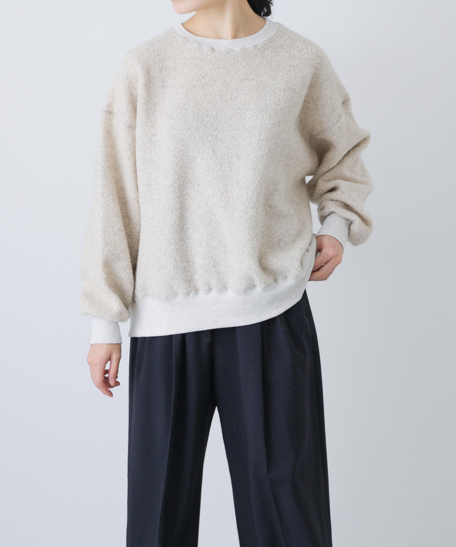 昨年も人気だったボア素材のプルオーバーはスタイリングもしやすい適度なオーバーサイズのお作りです◯