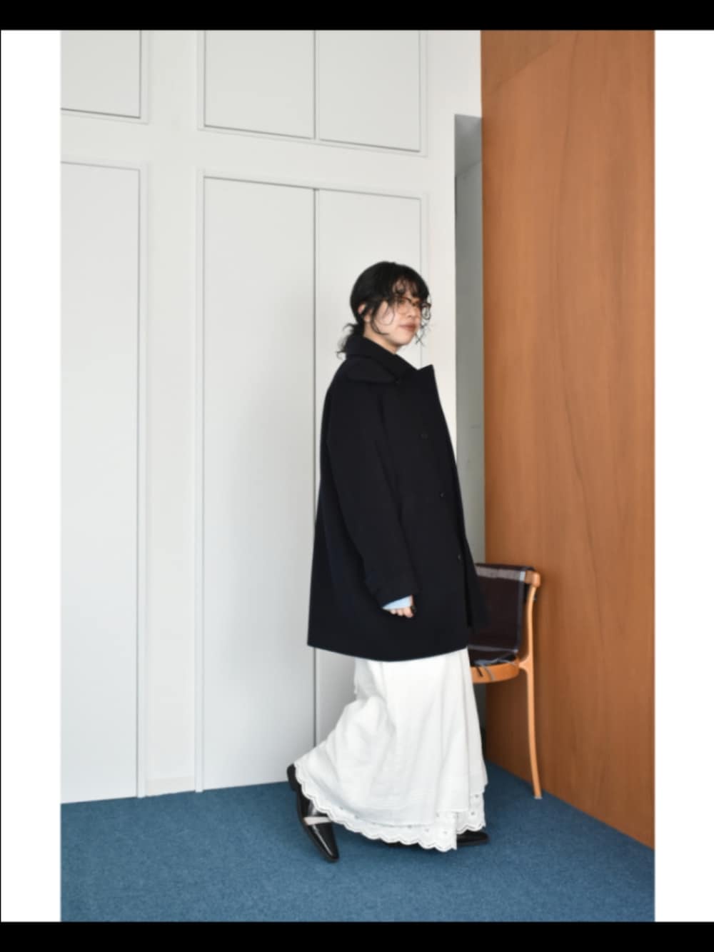 シングルボタンで抜け感のあるPコートのデザインで、どんなアイテムにも合わせられる万能ミディコート。