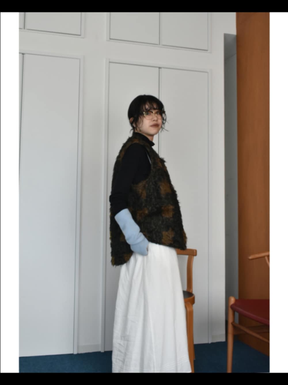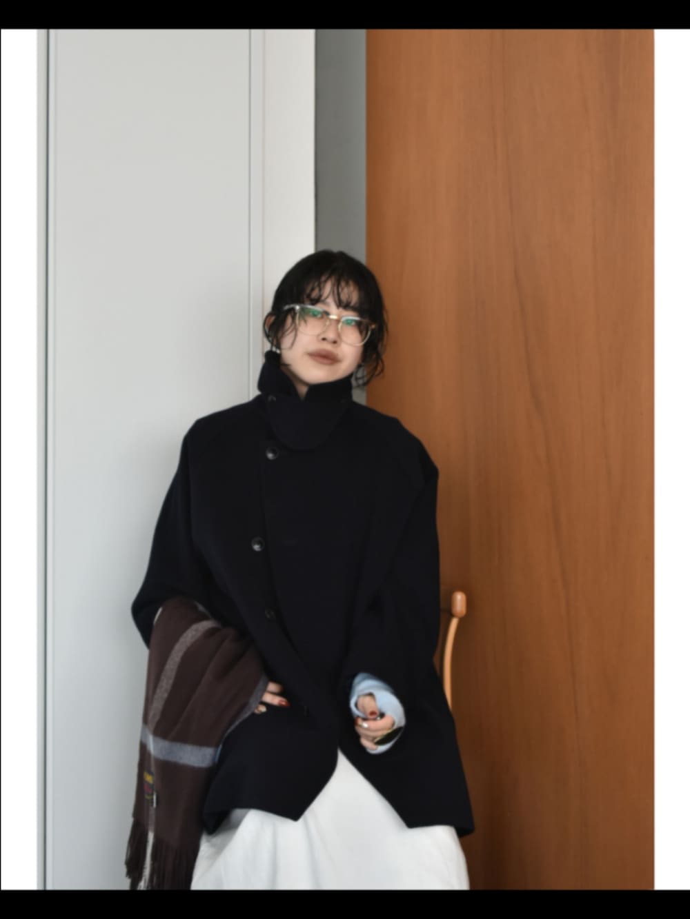 襟元を立ててすっきりと合わせるのが、今の気分です◎