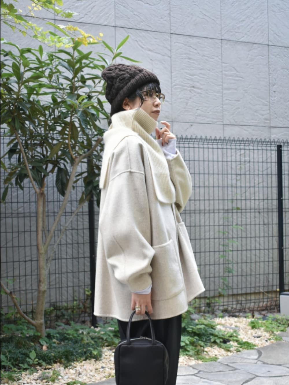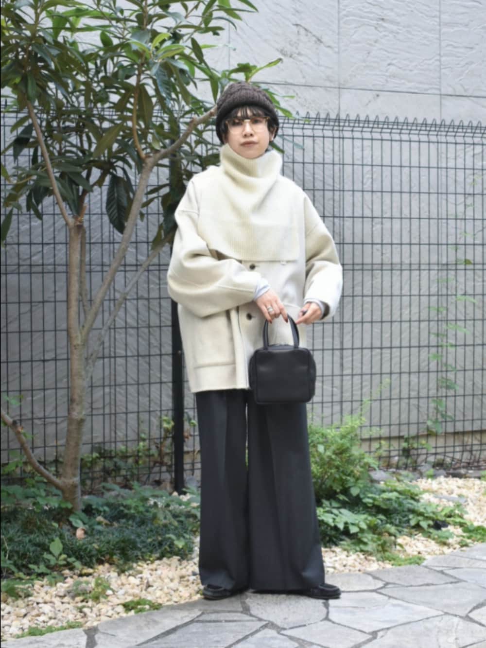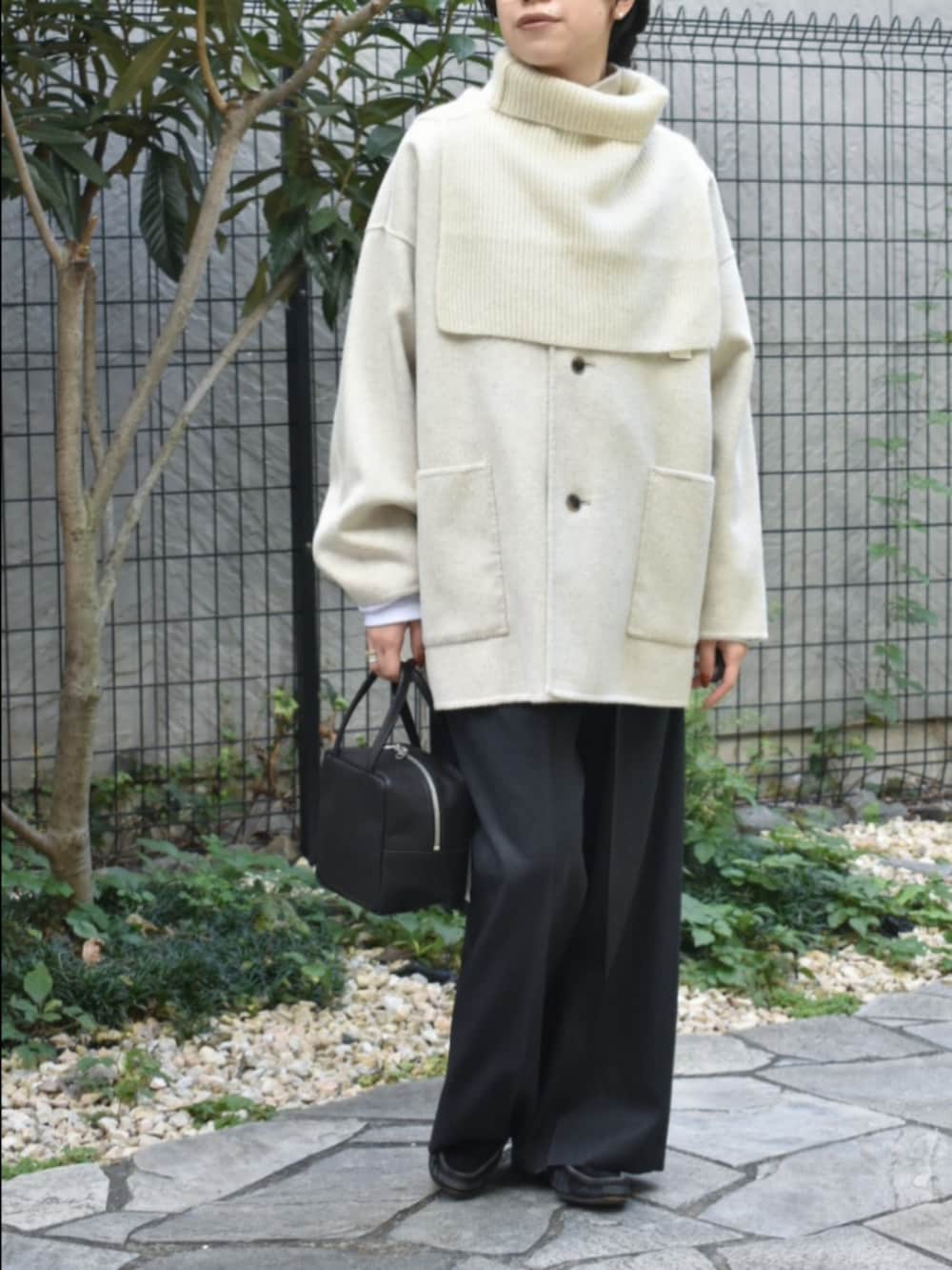 秋冬におすすめな着心地良いアイテムで、モノトーンスタイリングを組んでみました。