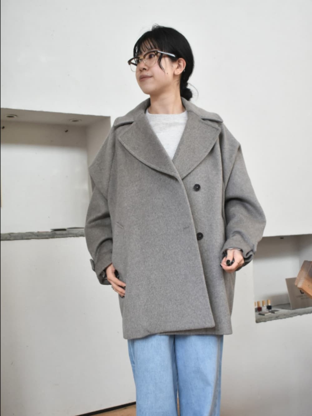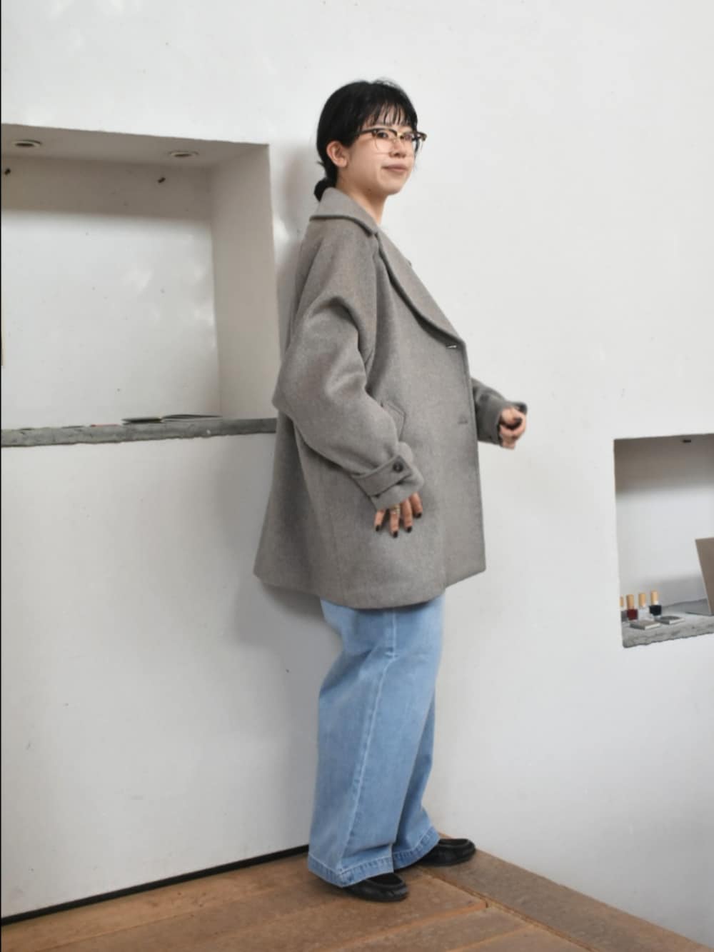 インスタライブでもご紹介いたしました、ウールPコートで大人カジュアルなスタイリングを組んでみました。