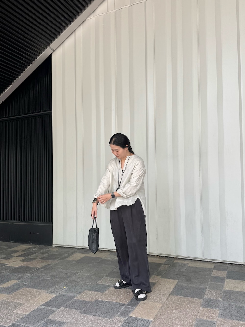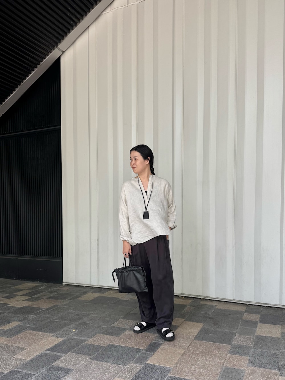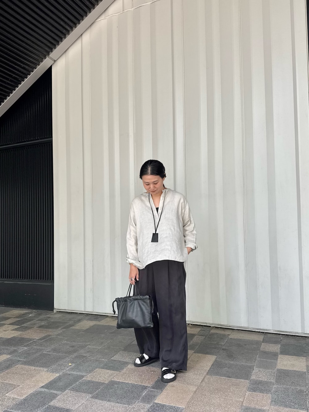 リネンブラウスを合わせたヘルシーコーデ