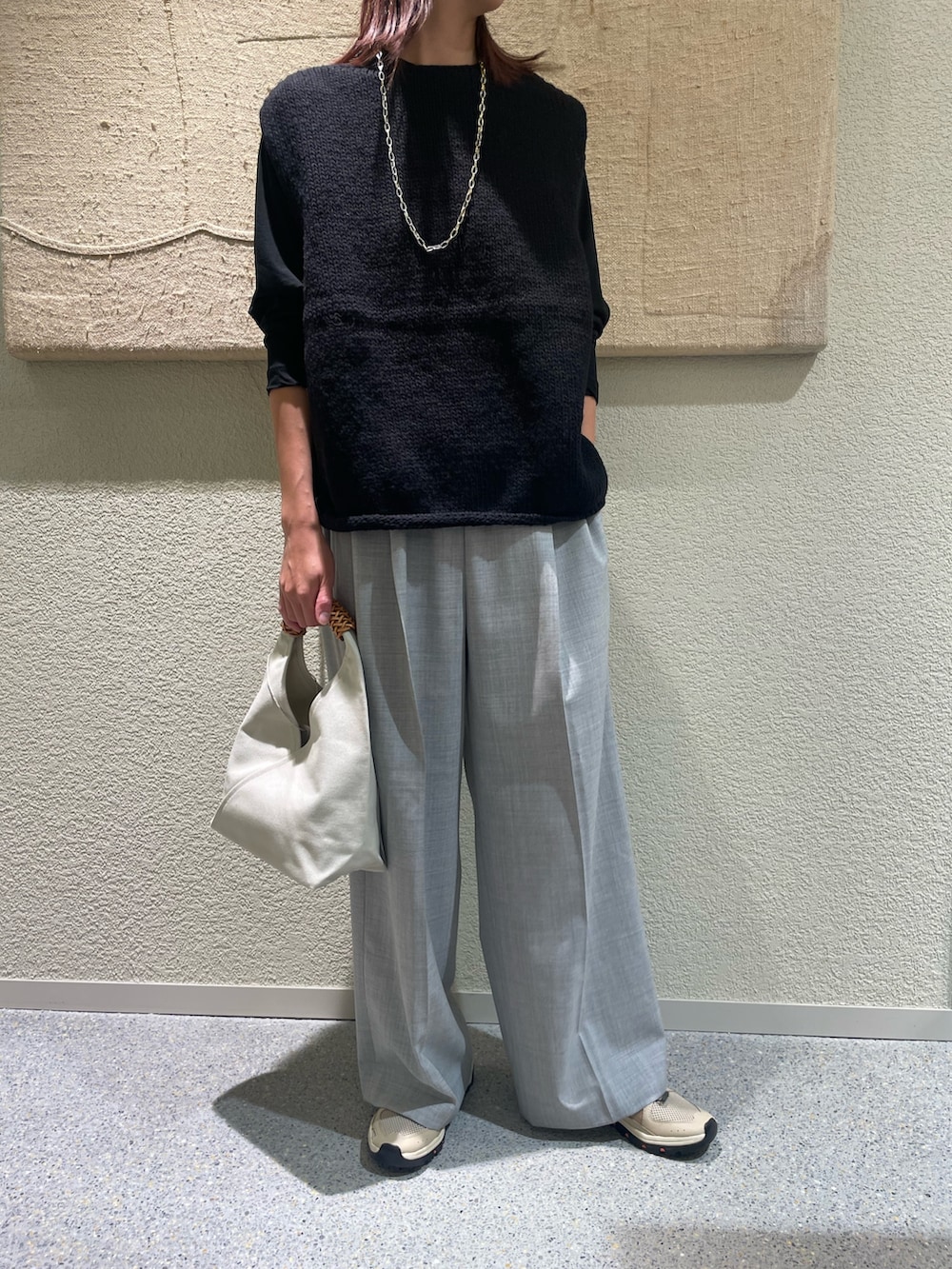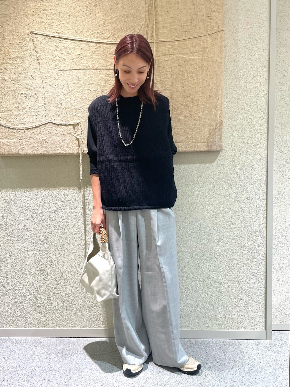 店頭で大人気のペルーニットベストを着用しました(^^)